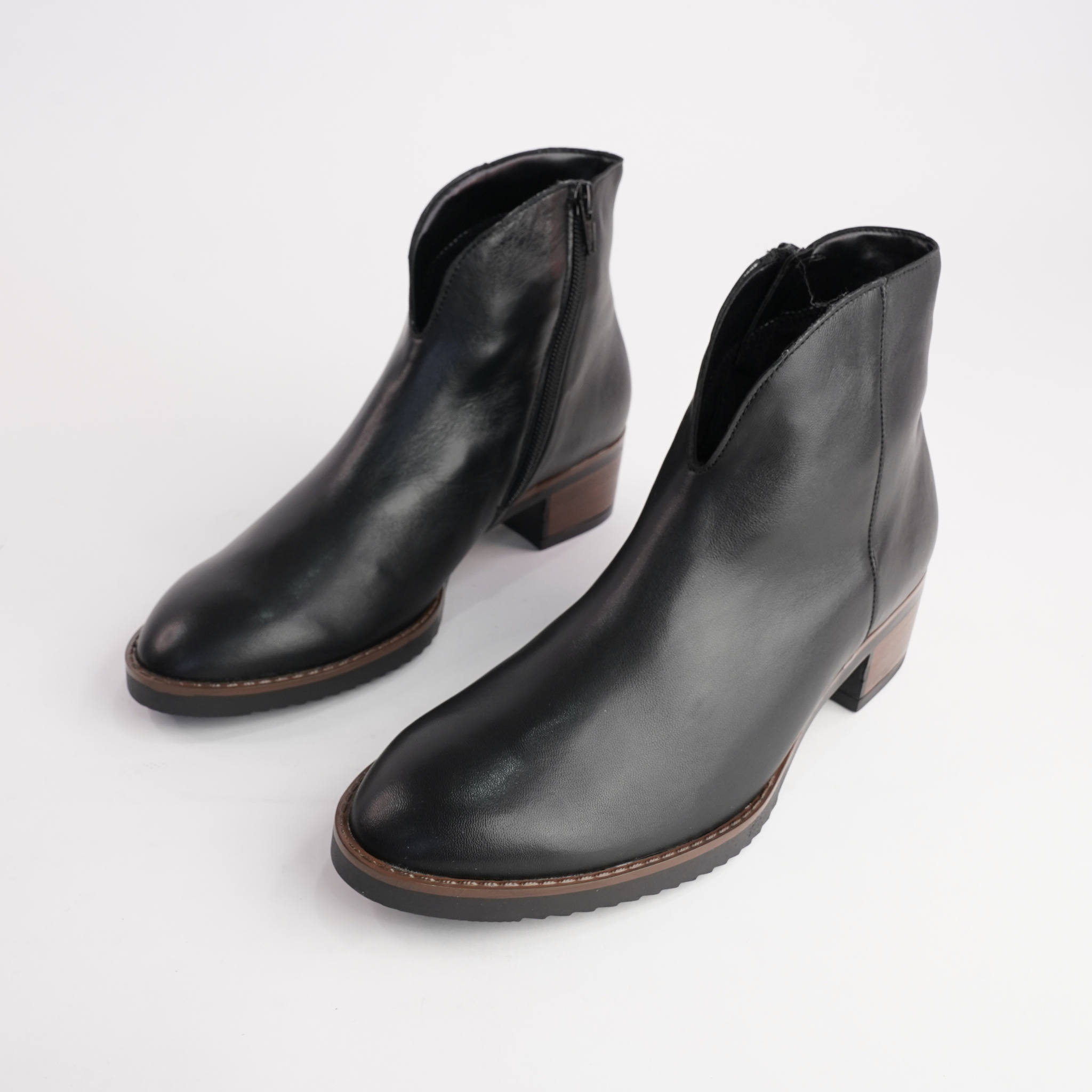Jacky Black Leather Ankle Boots