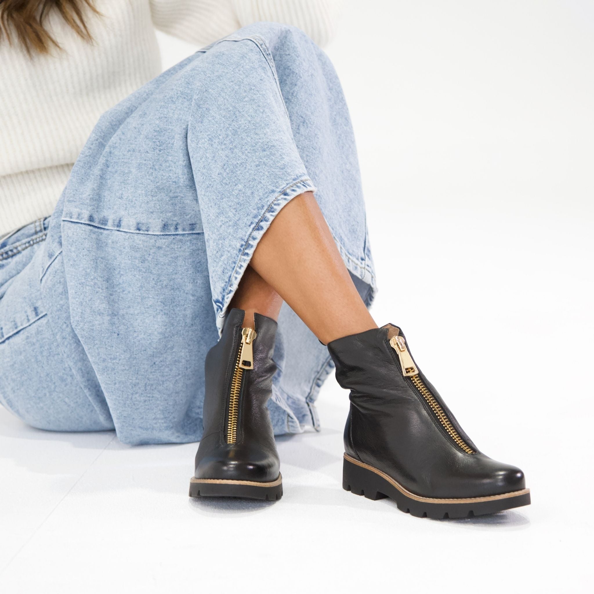 Mieyette Black Leather Ankle Boots