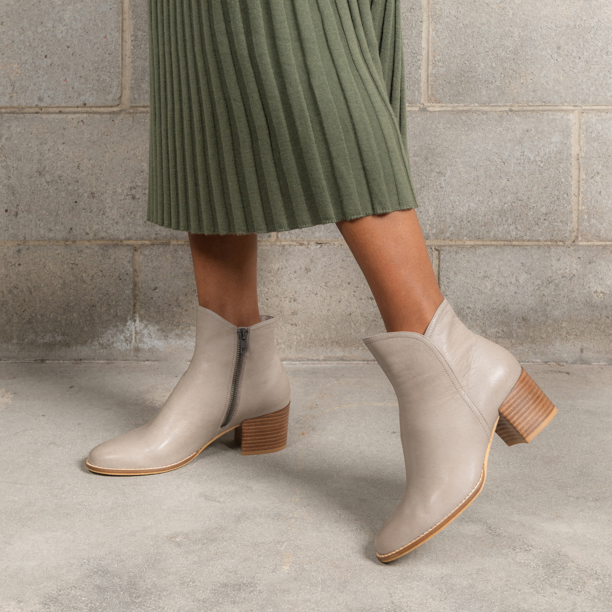 Mockas Taupe Leather Ankle Boots