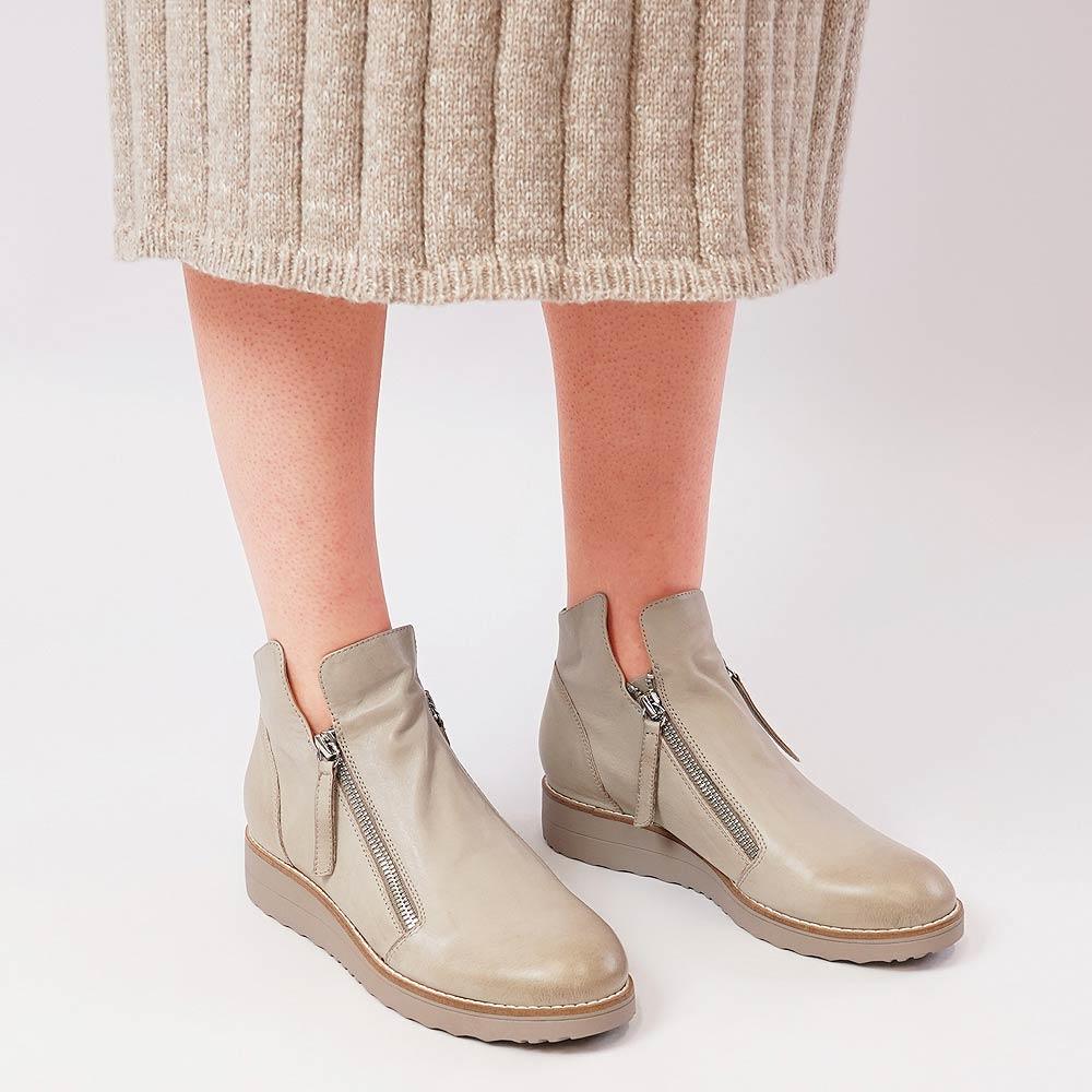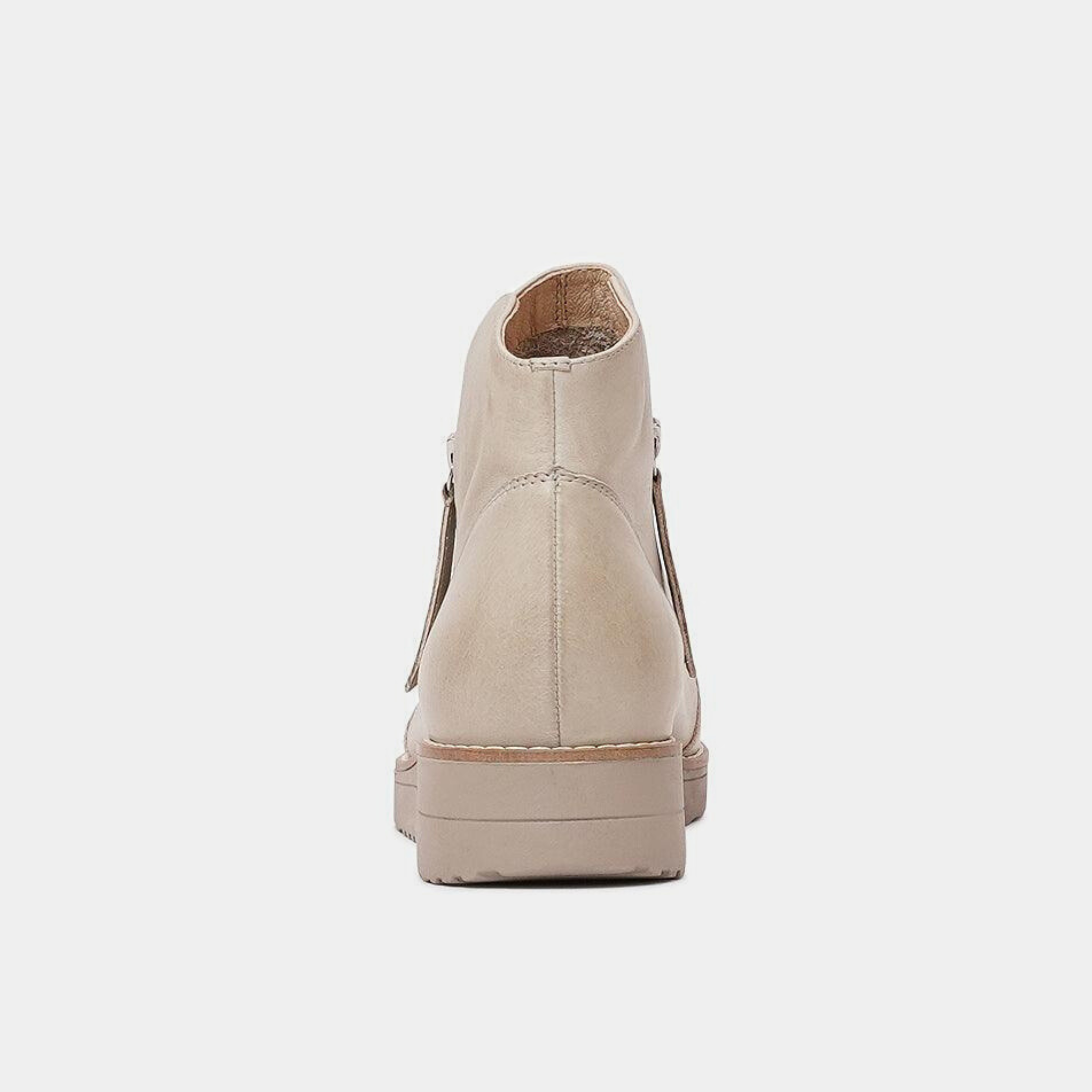 The Ohmy Smoke ankle boots by Top End feature a beautiful leather upper in a soft neutral tone. They also boast a slight 4.5cm wedge heel for added comfort and support. These nude ankle boots are perfect for slipping on with all your favourite casual outfits.