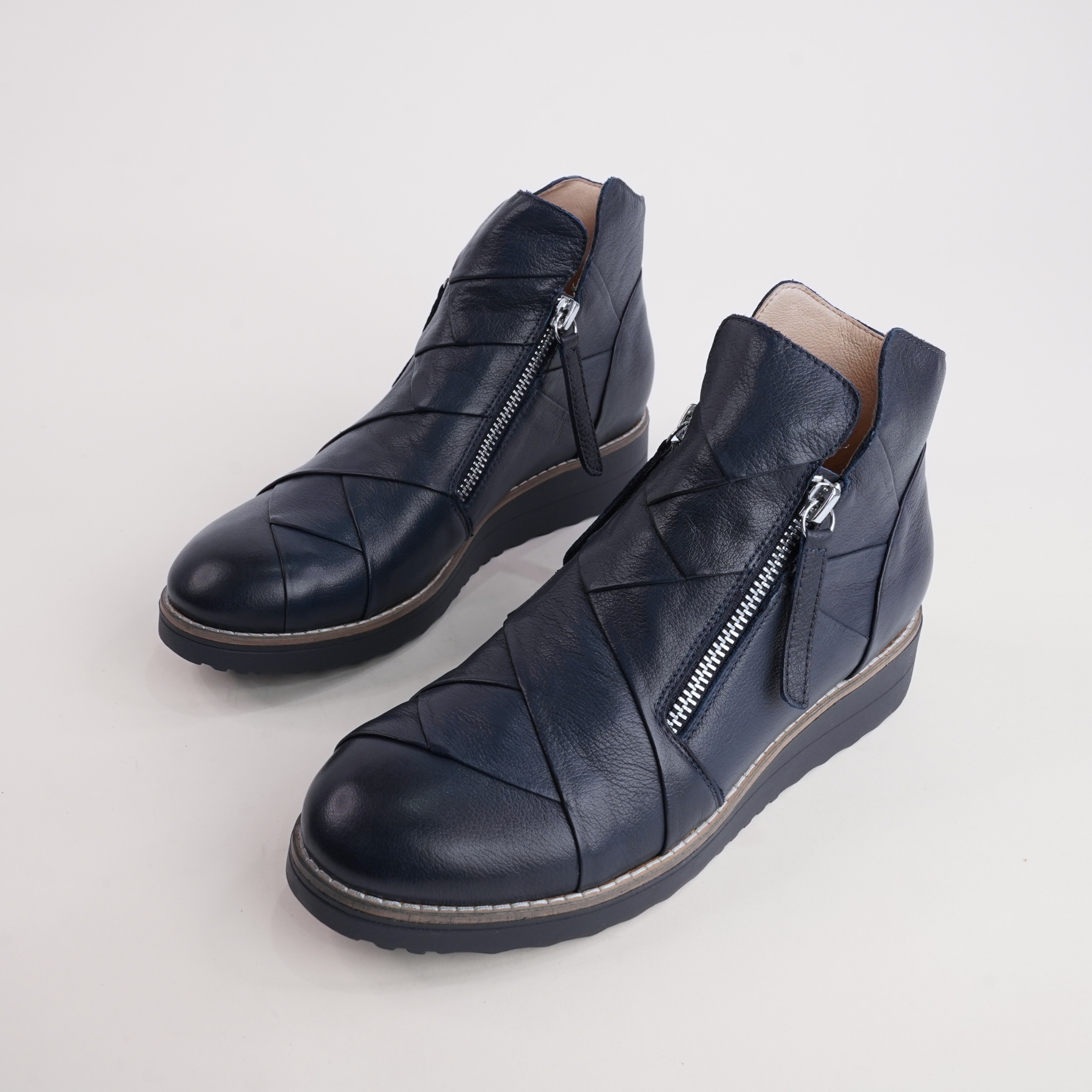 Add a bold edge to your everyday look with Omeah by Top End. Wrapped in buttery leather panels and finished with a statement side zip, this ankle boot fuses comfort with standout design, perfect for all-day wear with an artistic twist.