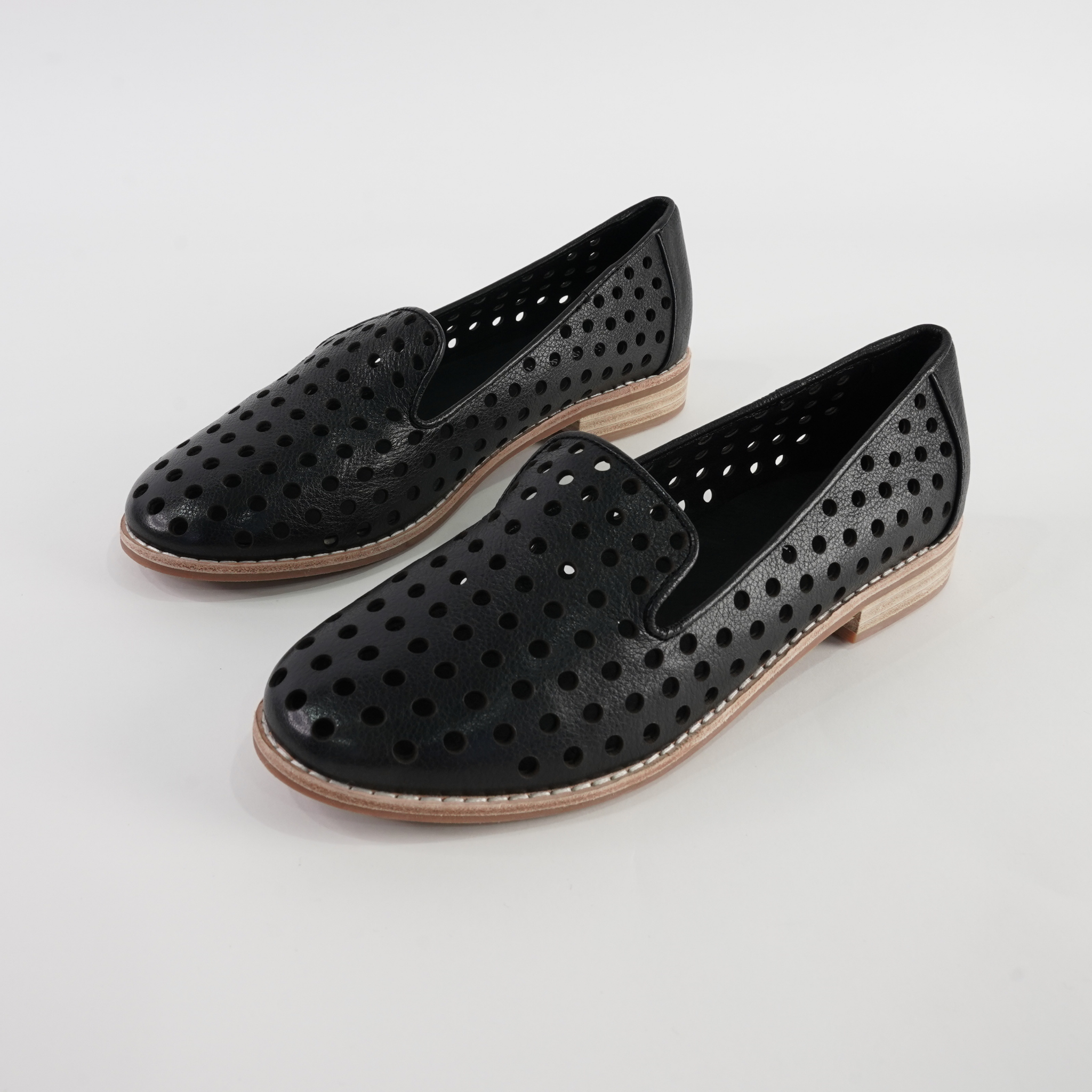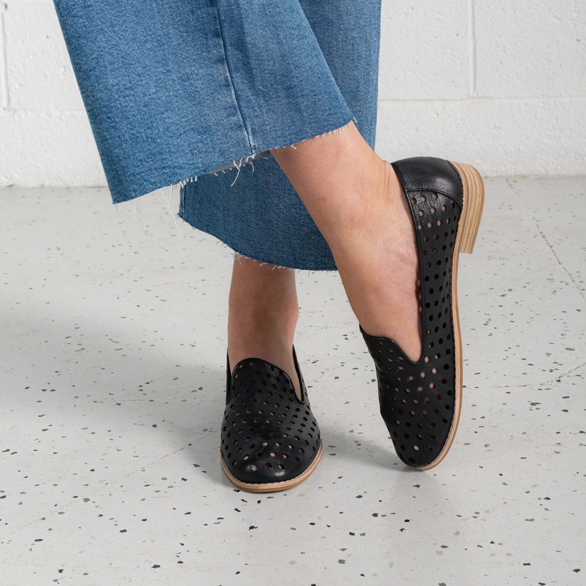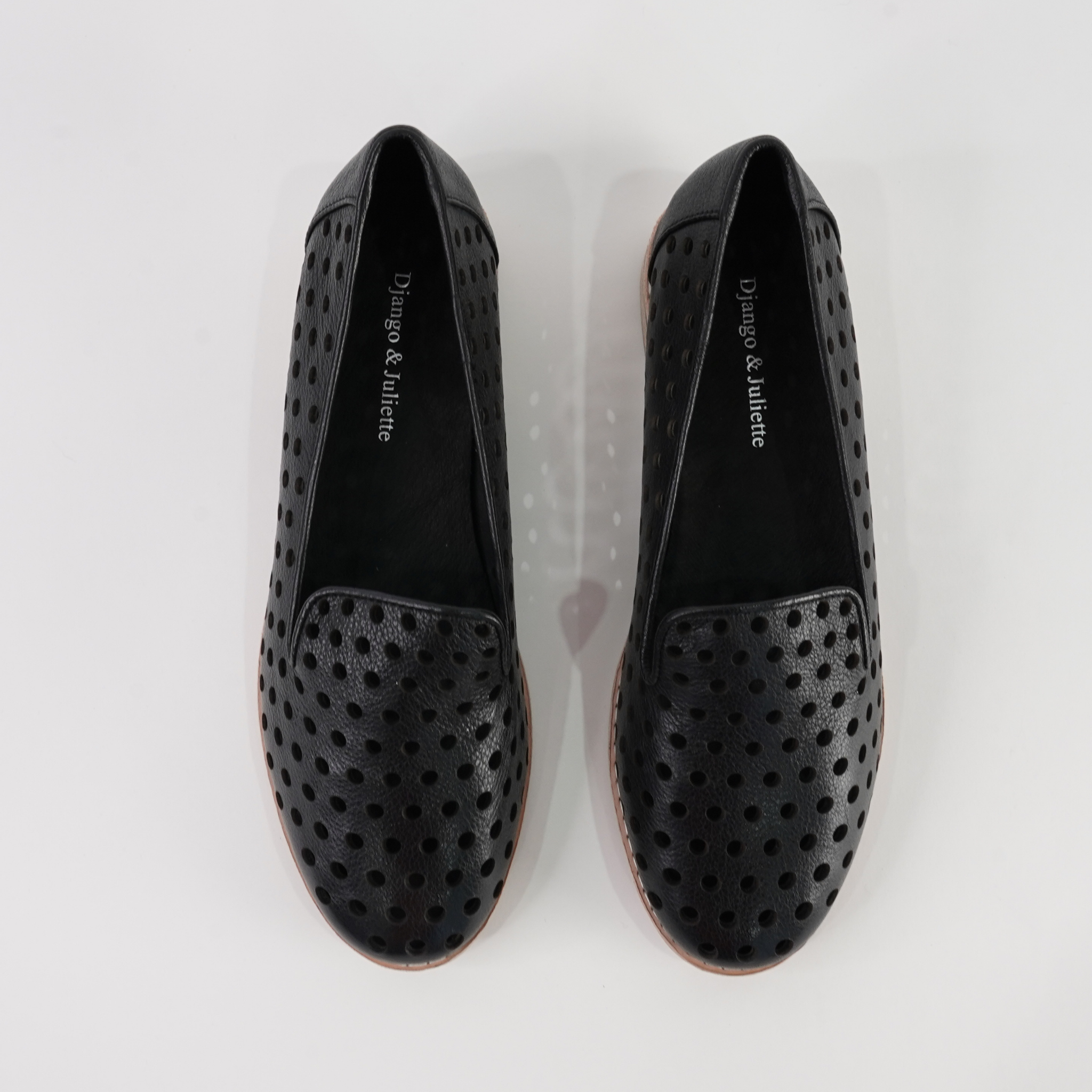 Breathe new life into your everyday wardrobe with the Ariah Black Leather Loafers by Django & Juliette. Crafted from soft leather with all-over perforations, they’re lightweight, breathable, and effortlessly stylish. Perfect for workdays or weekends, these slip-ons pair comfort with modern elegance.