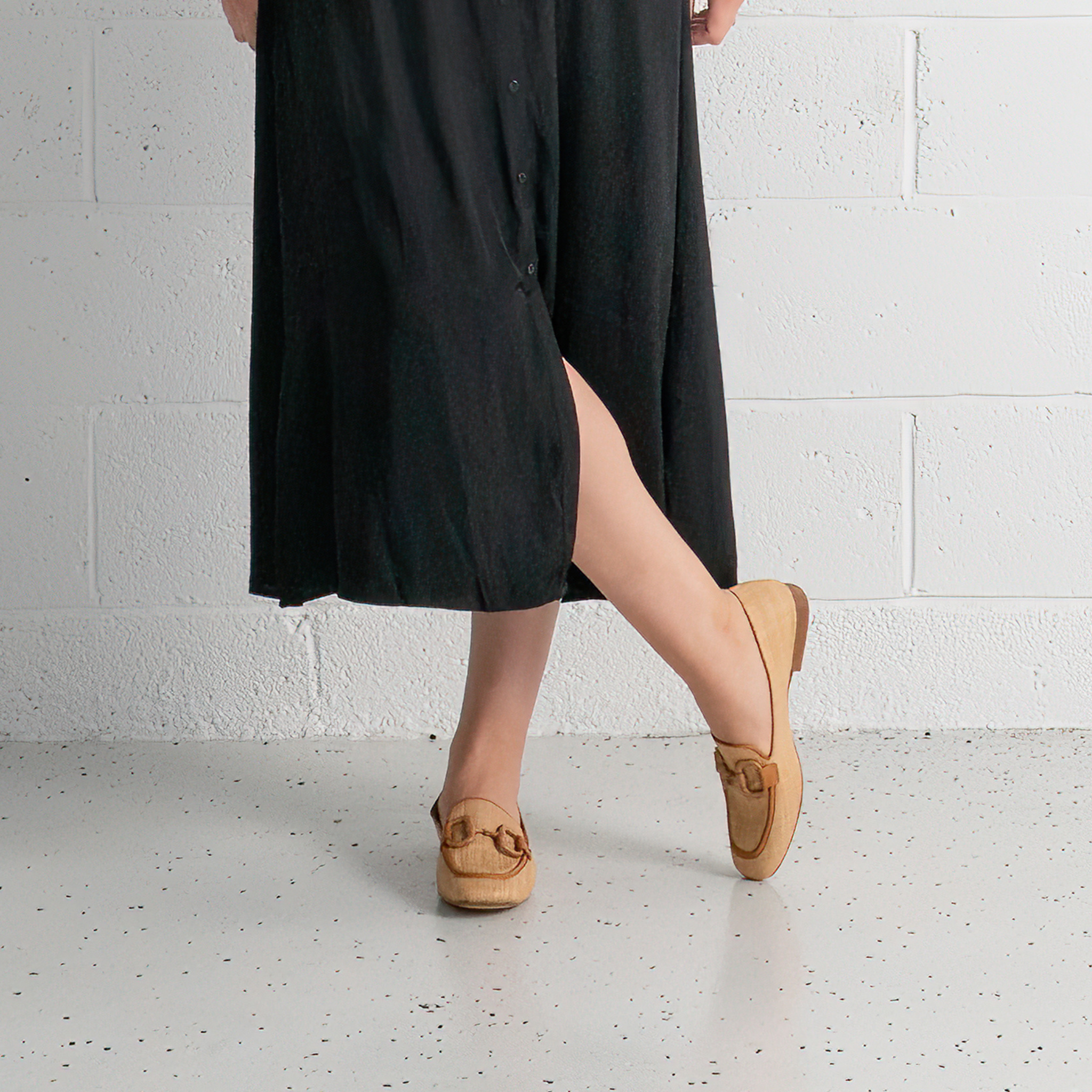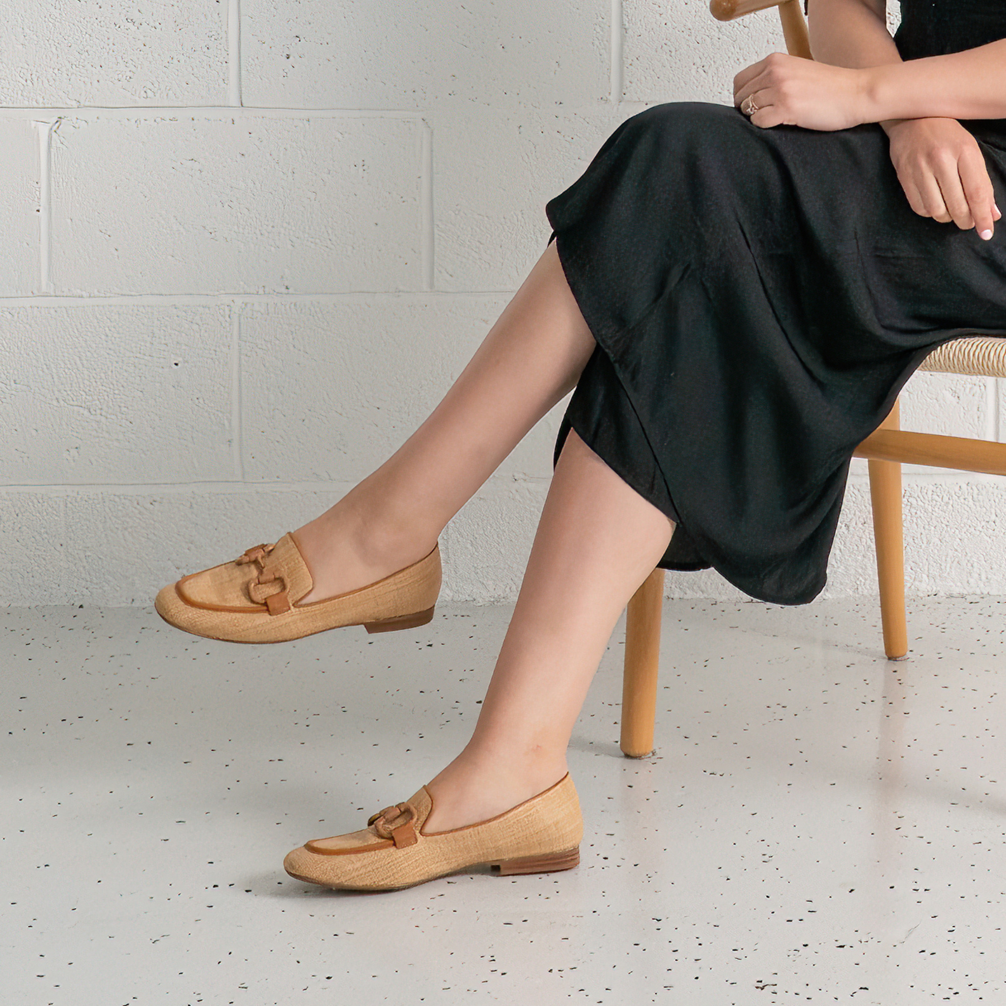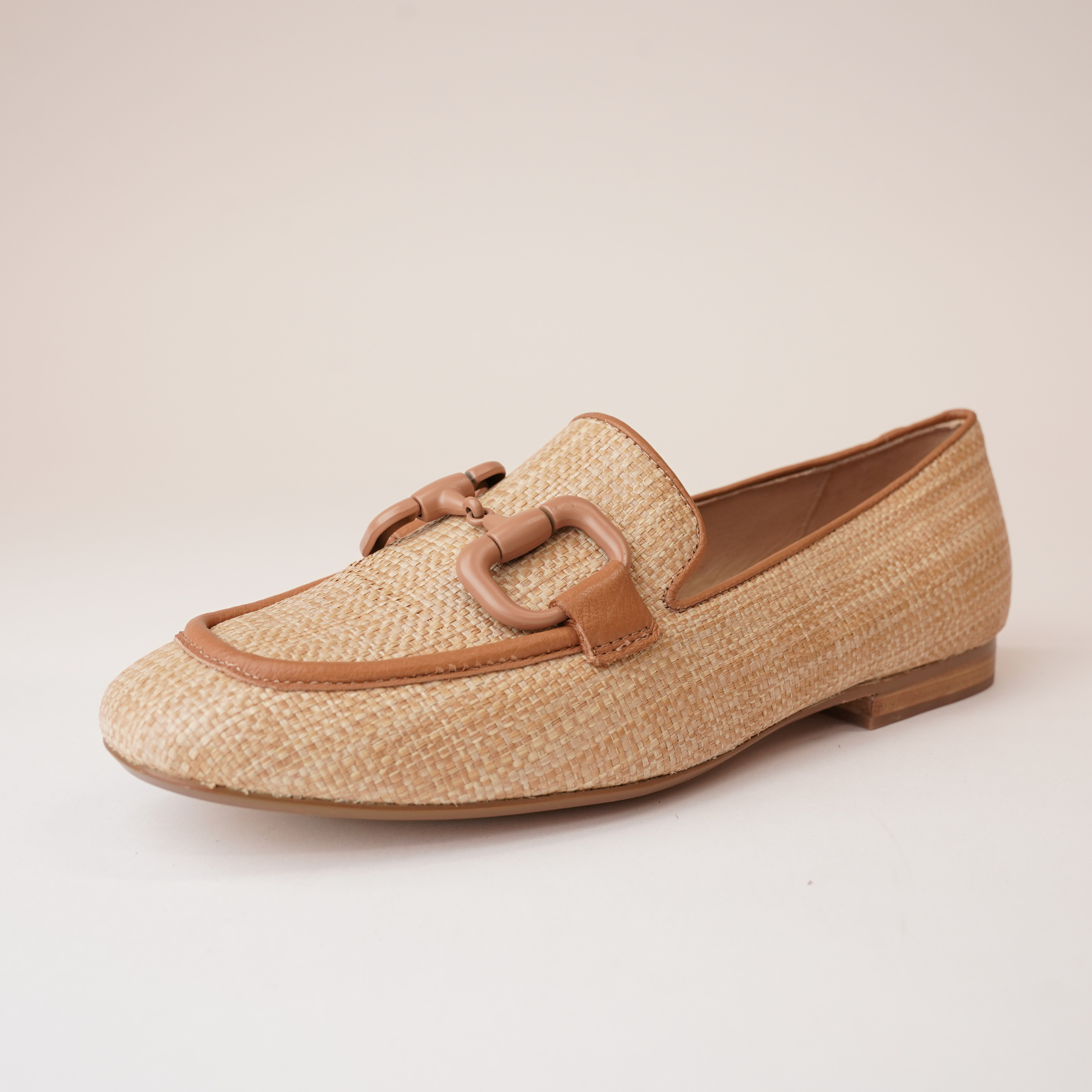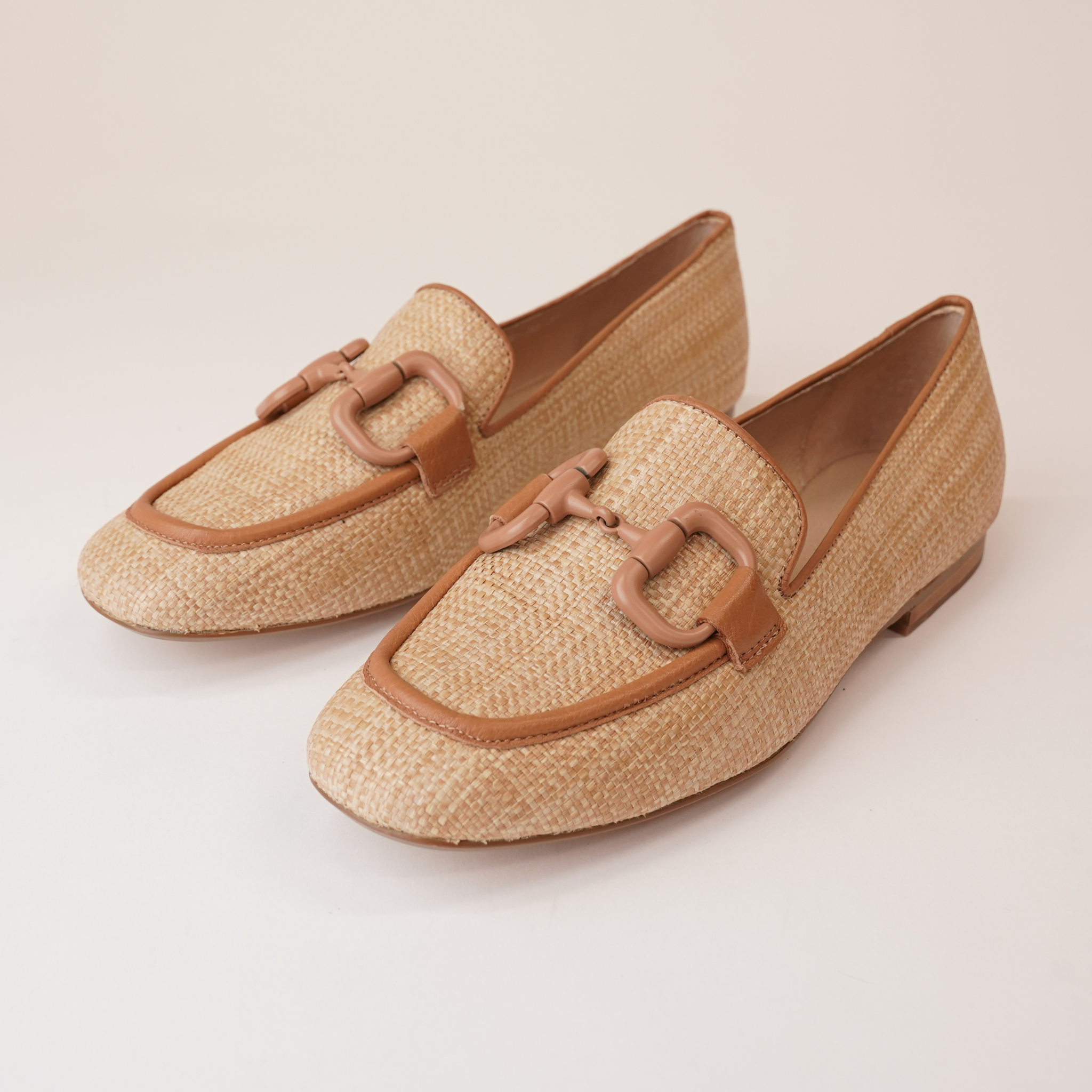 Mansur Camel Raffia/ Dk Tan Leather Loafers