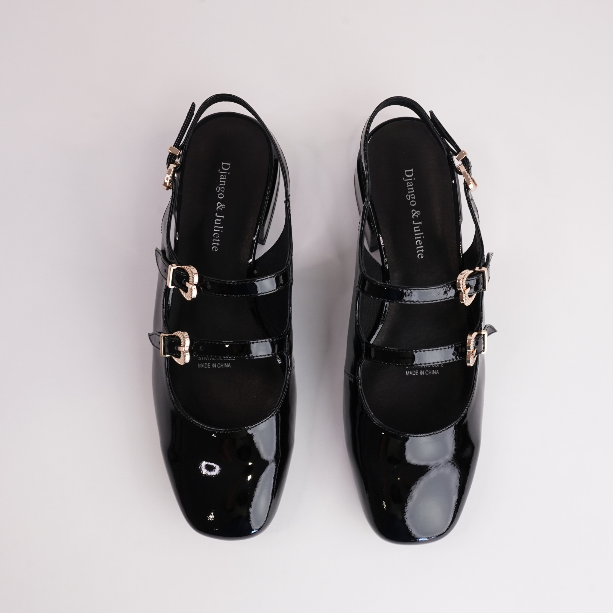 The Viraz Black Patent Leather Heels by Django & Juliette add a bold, vintage-inspired touch to any outfit. Featuring glossy patent leather, dual buckle straps, and a comfortable block heel, they effortlessly combine elegance with everyday wearability.