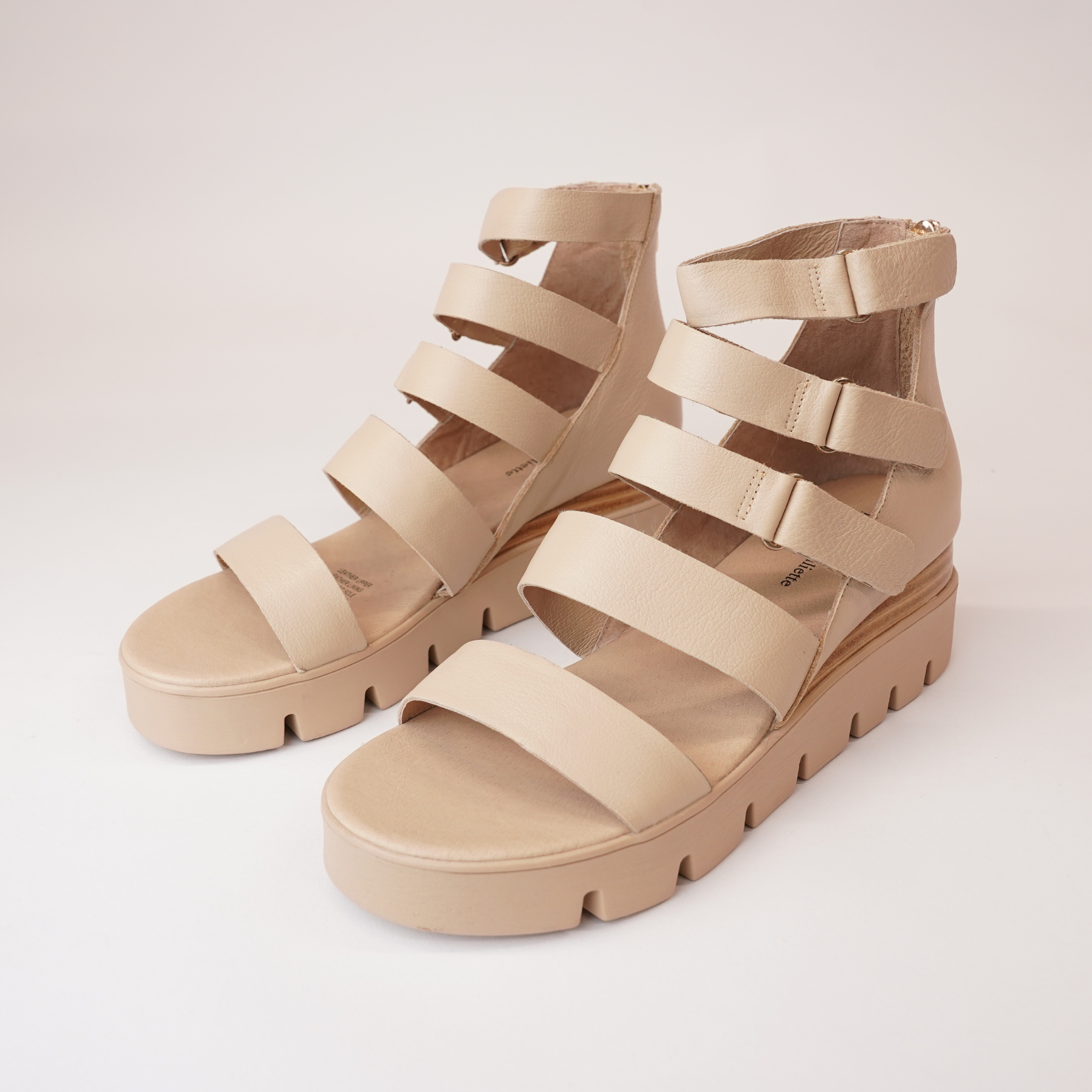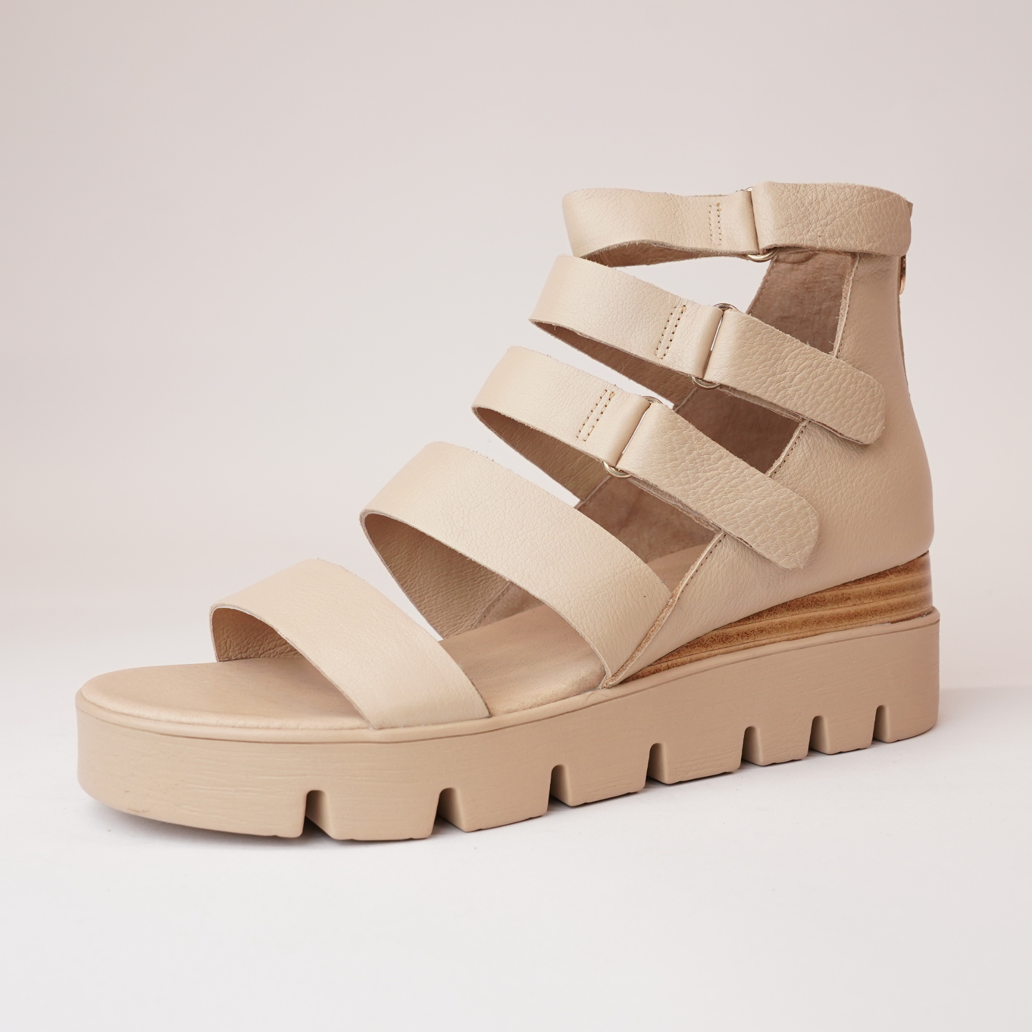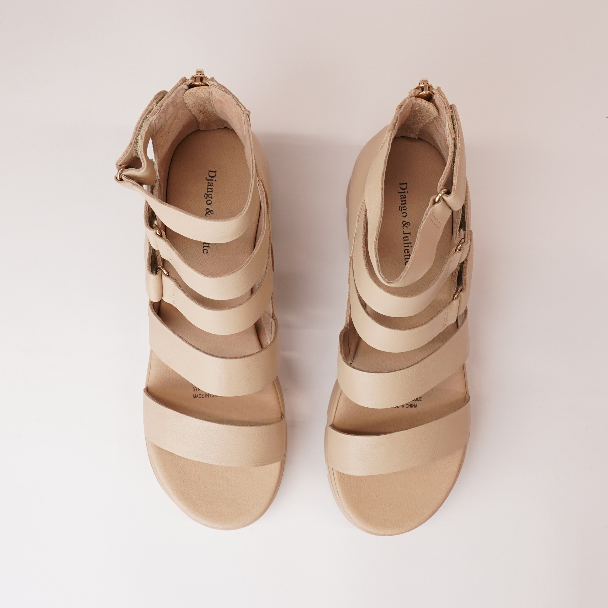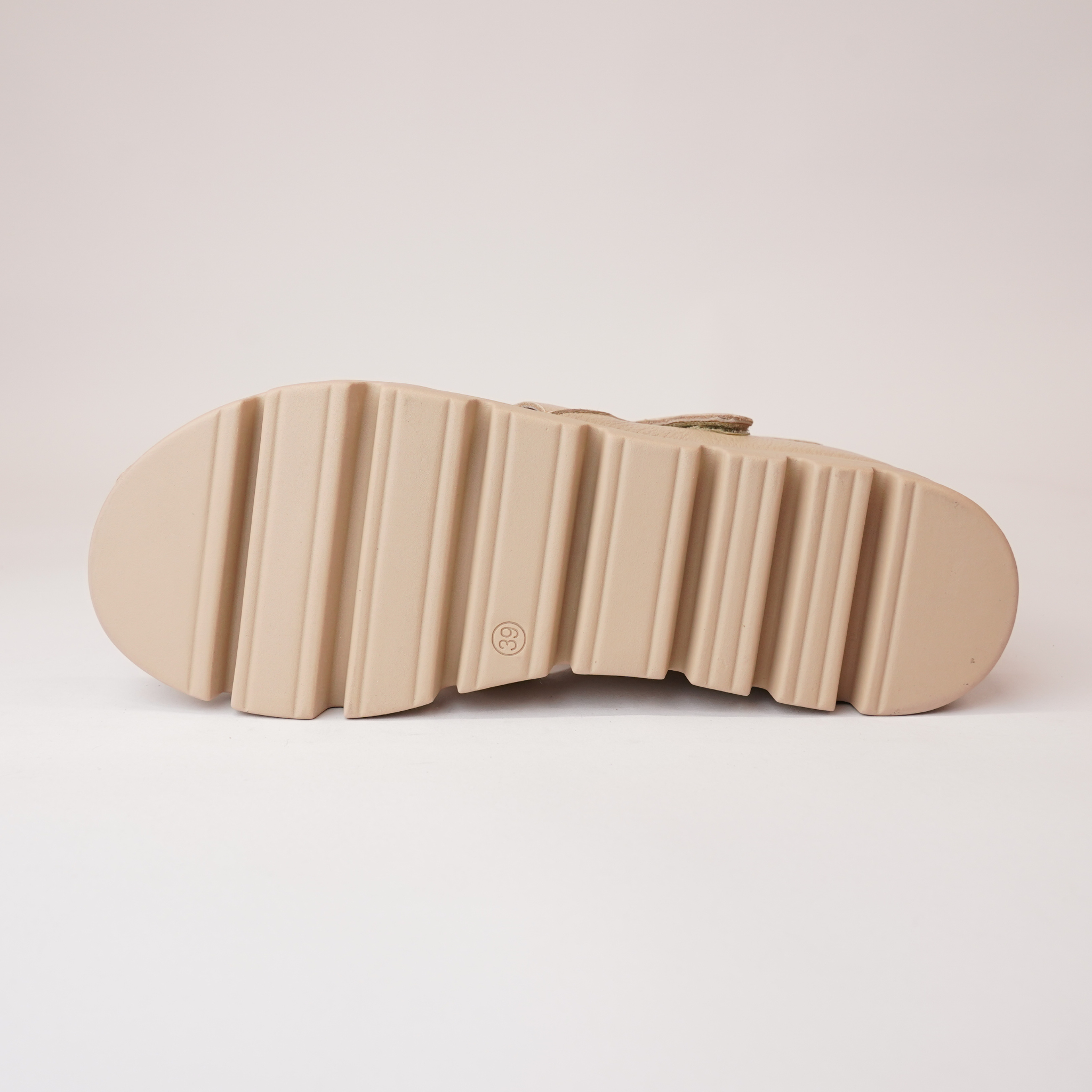 Elevate your summer style with the Raafe Camel Leather Sandals by Django & Juliette. Featuring multiple Velcro straps for a secure fit and a chunky cleated sole for added height and traction, these chic camel leather sandals are versatile and practical. A cushioned footbed ensures all-day comfort, perfect for casual outings or weekend adventures.