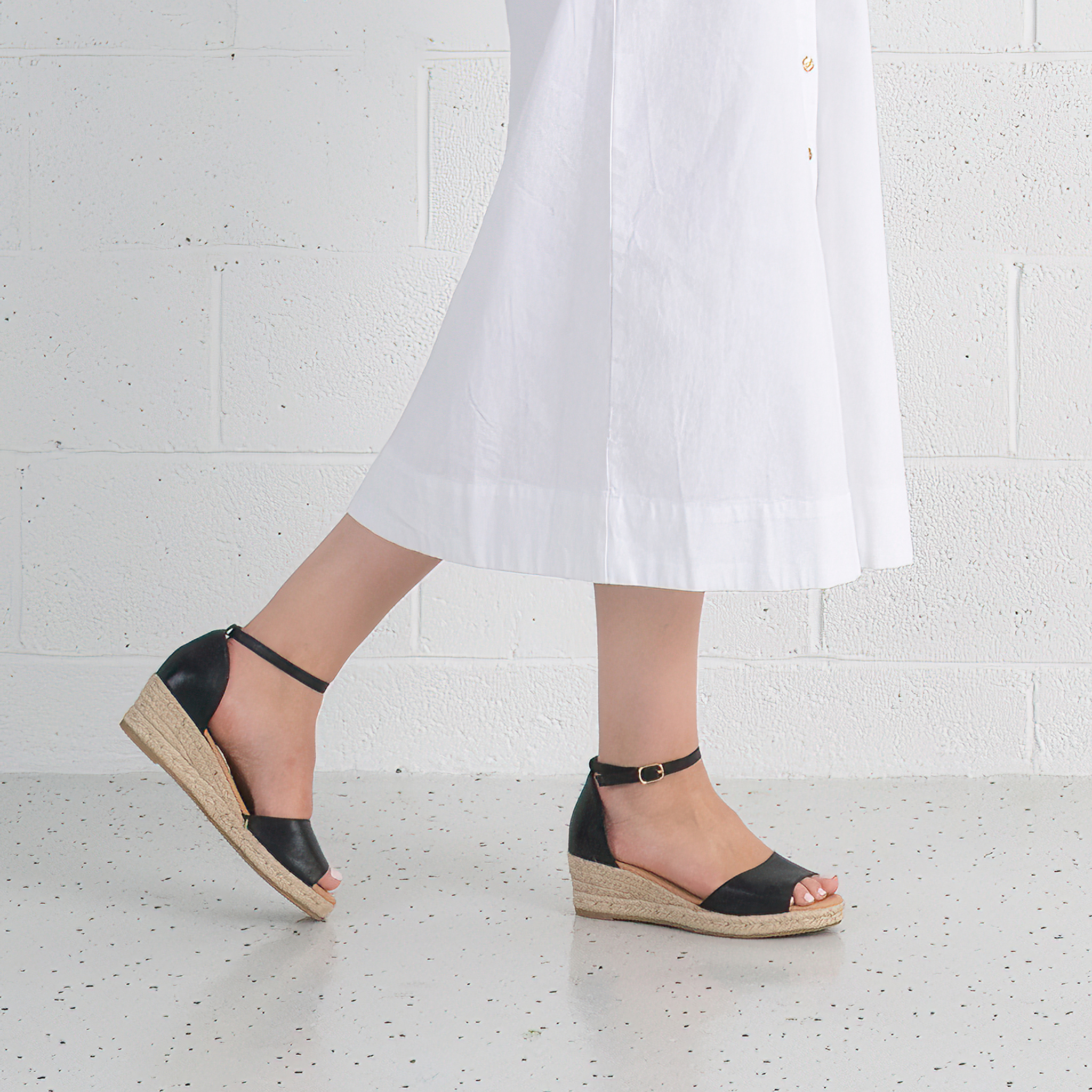 Skip Black Leather Espadrille Wedges