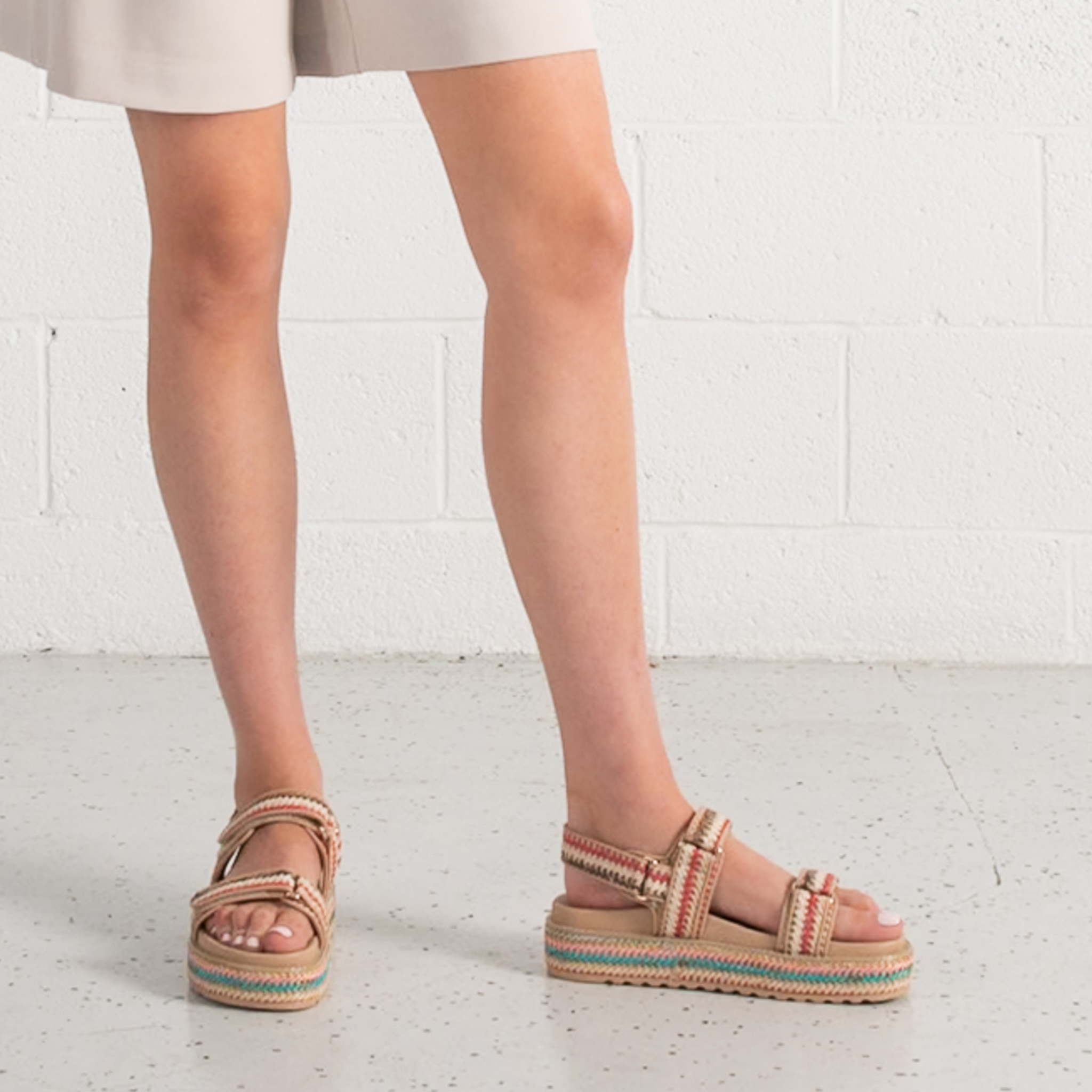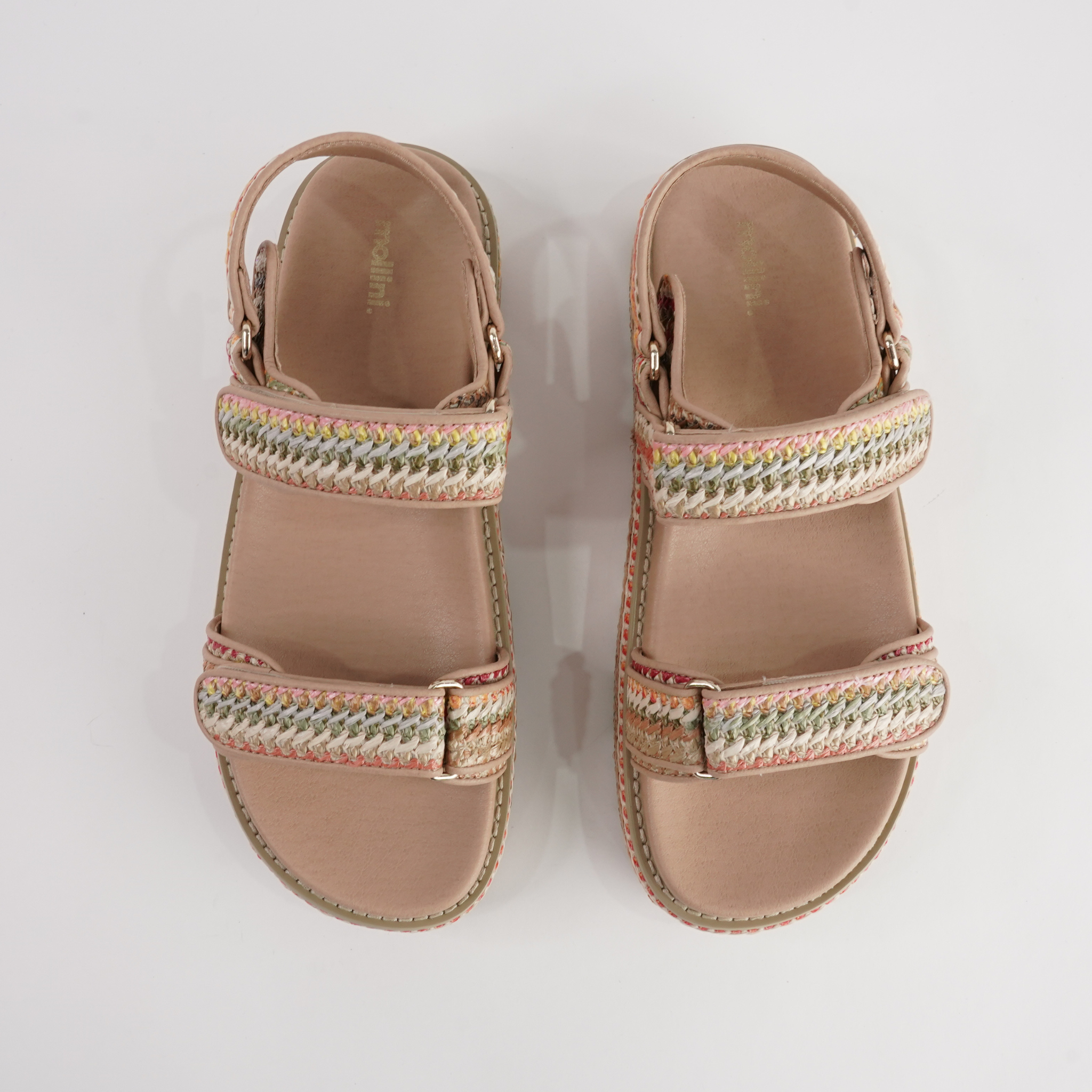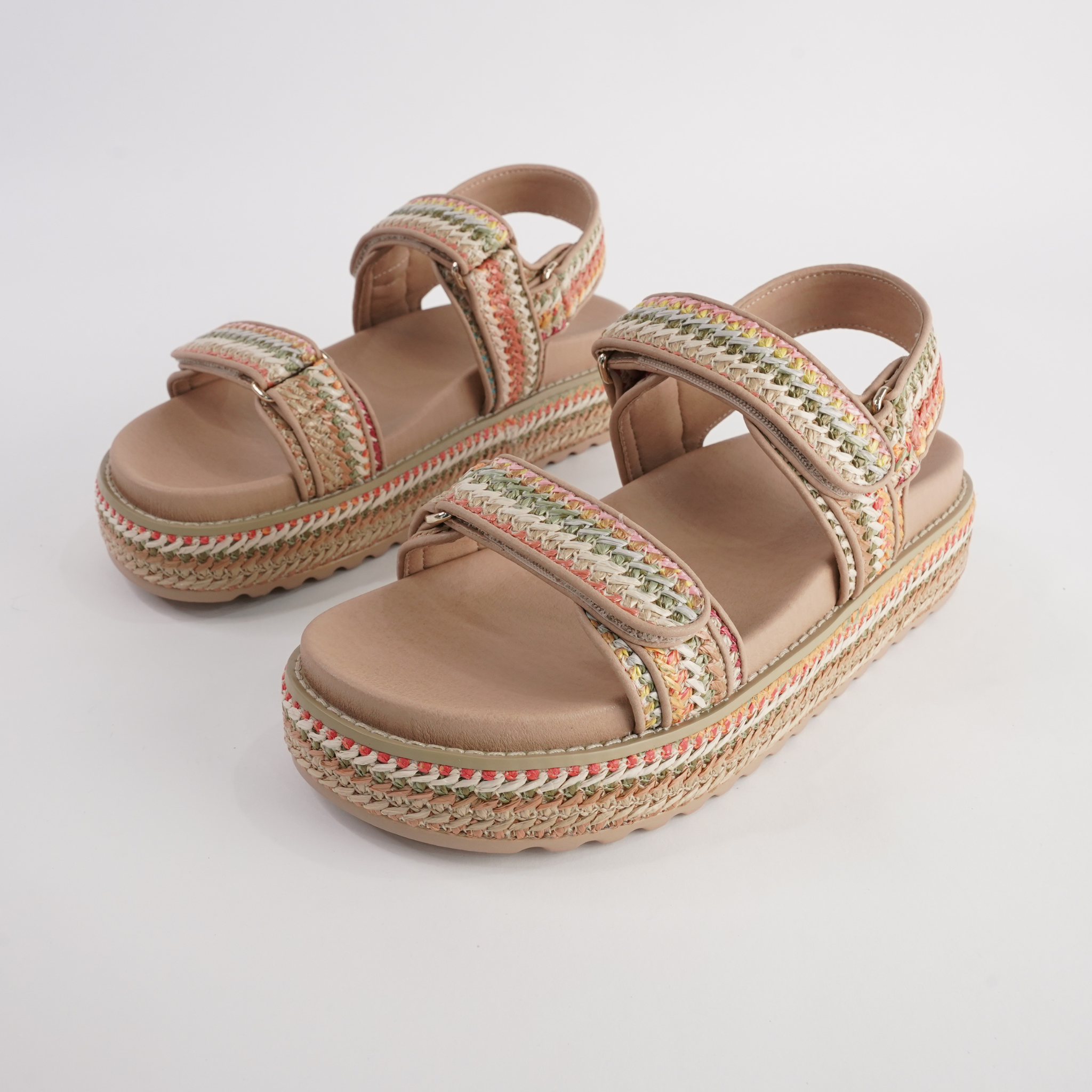 Bring a fresh, bohemian edge to your summer style with the Bridgett Sandals by Mollini. Designed with multicolour woven detailing, these platform sandals strike the perfect balance of playful and chic. The double strap design with adjustable velcro fastening ensures a secure and easy fit, while the cushioned footbed provides lasting comfort. Finished with a braided espadrille-inspired platform sole, Bridgett is a standout choice for everyday wear, travel, or weekend outings.