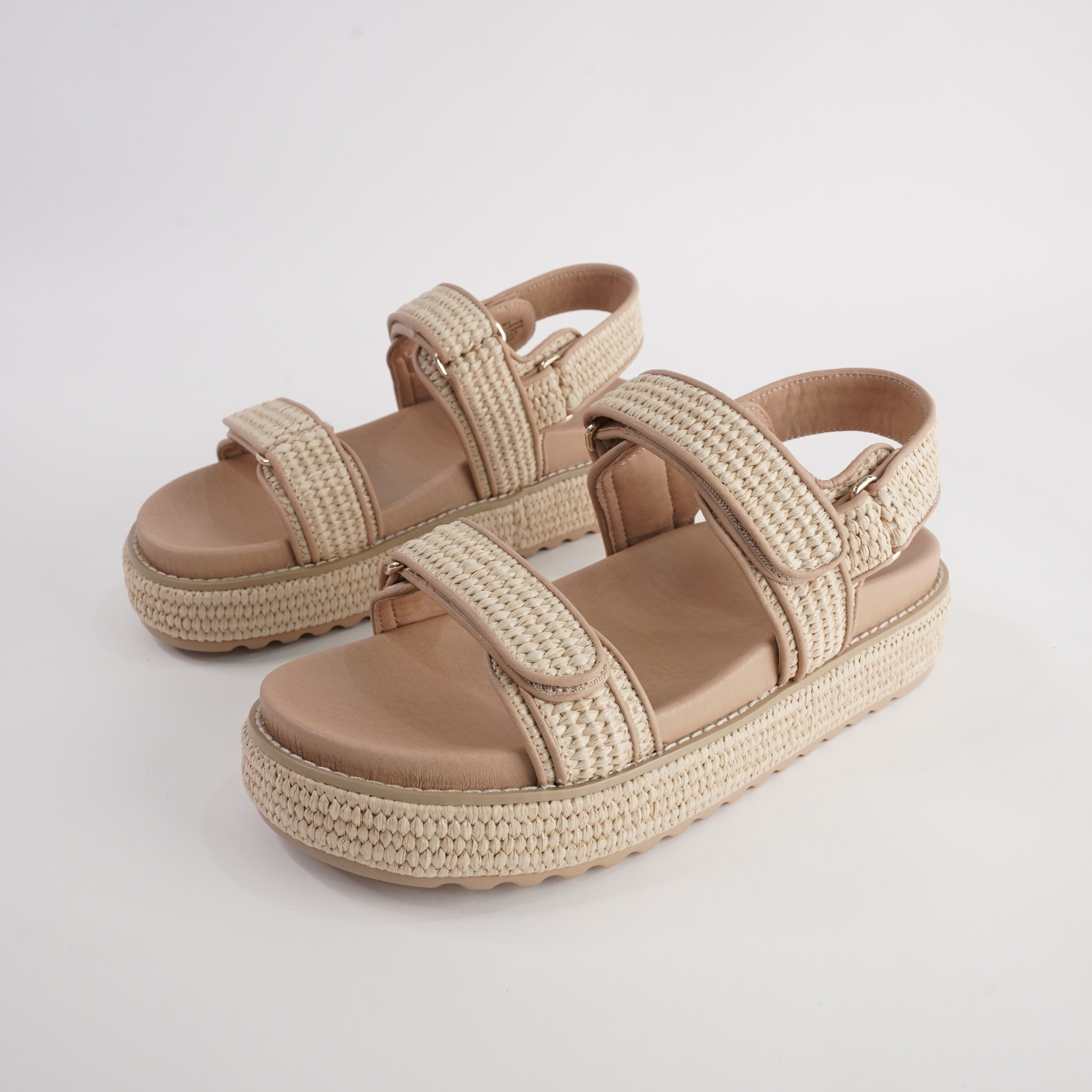 Bring a fresh, bohemian edge to your summer style with the Bridgett Sandals by Mollini. Designed with woven detailing, these platform sandals strike the perfect balance of playful and chic. The double strap design with adjustable velcro fastening ensures a secure and easy fit, while the cushioned footbed provides lasting comfort. Finished with a braided espadrille-inspired platform sole, Bridgett is a standout choice for everyday wear, travel, or weekend outings.