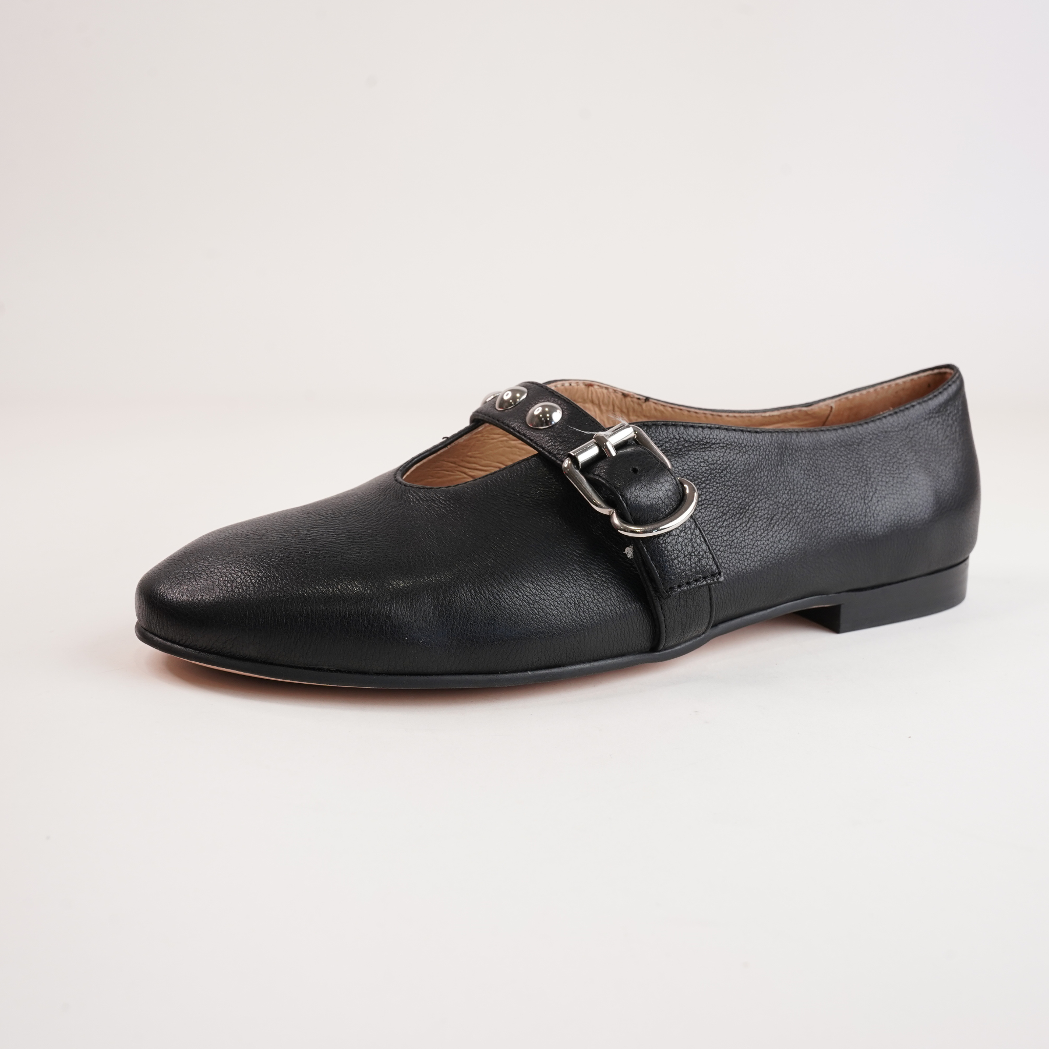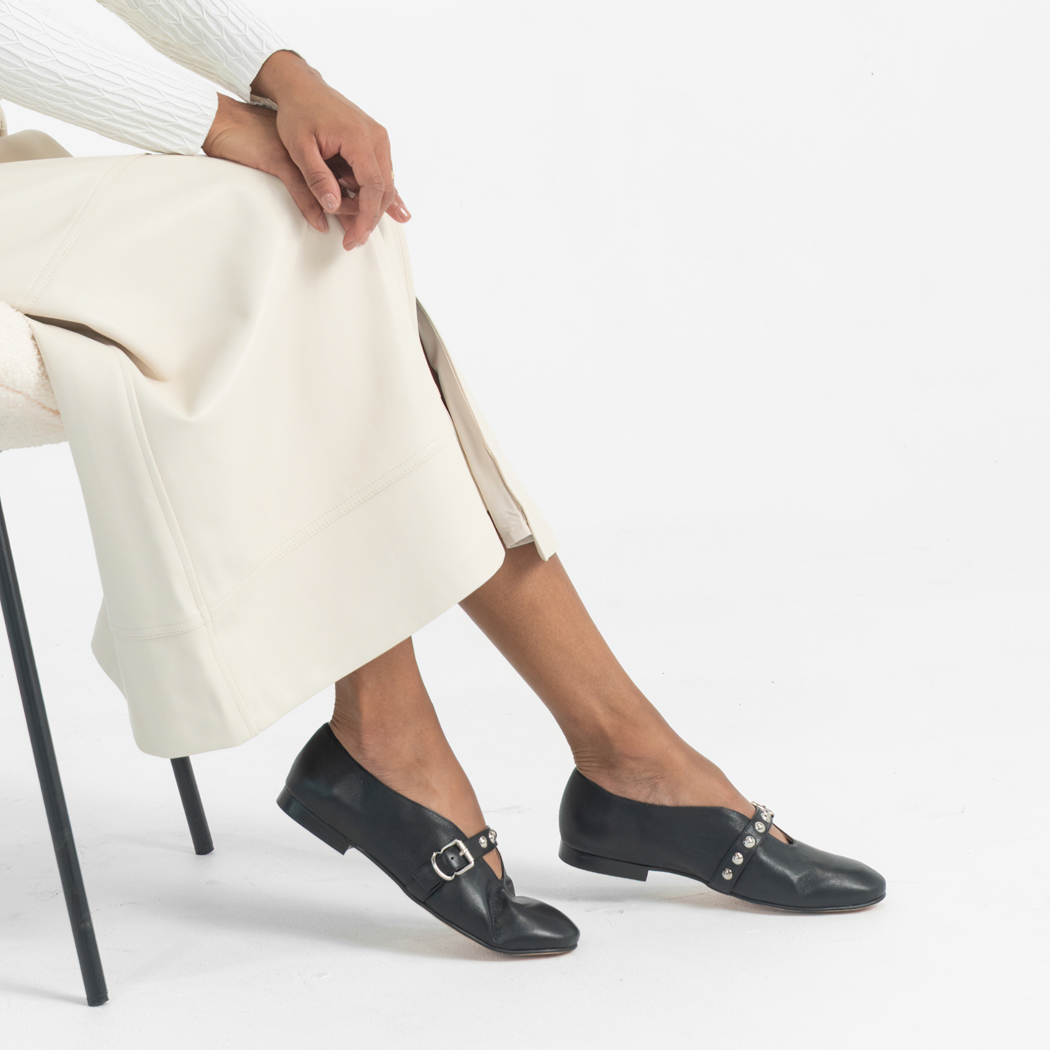 Step into effortless cool with the Ultrah Black Leather Flats by Mollini. Designed with a soft, structured silhouette, this flat is finished with edgy stud detailing and a statement silver buckle strap. Whether you're heading to work or styling up your off-duty wardrobe, Ultrah brings a bold yet refined finish to any look.