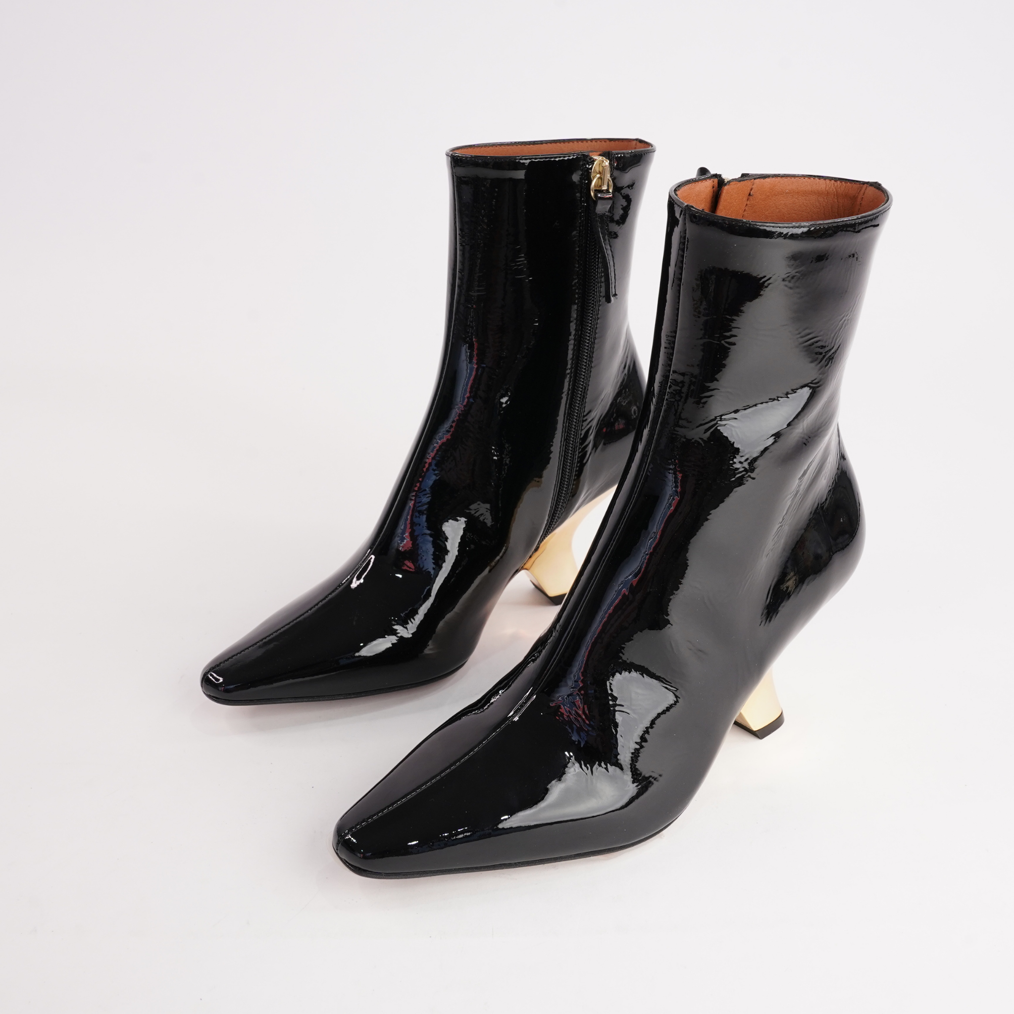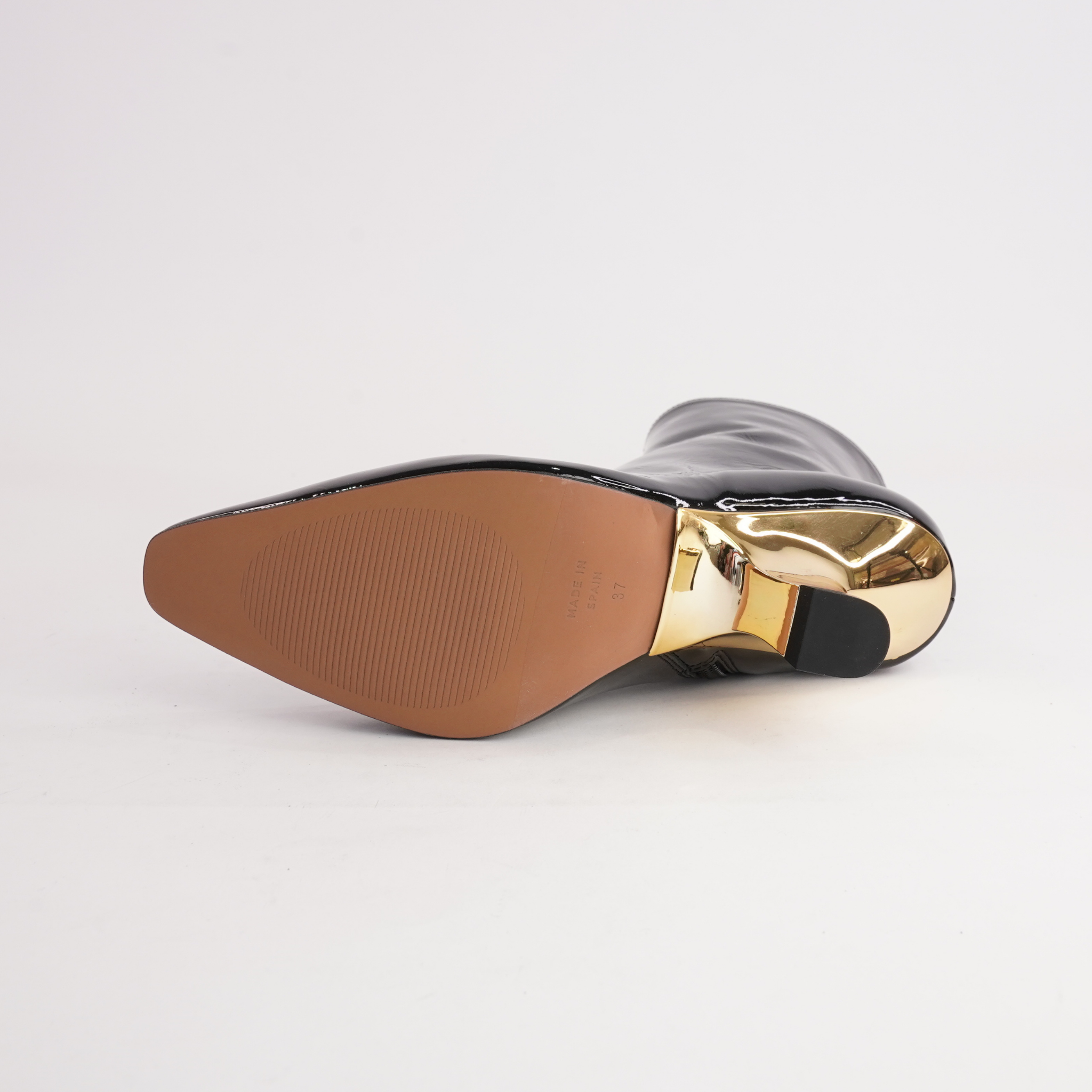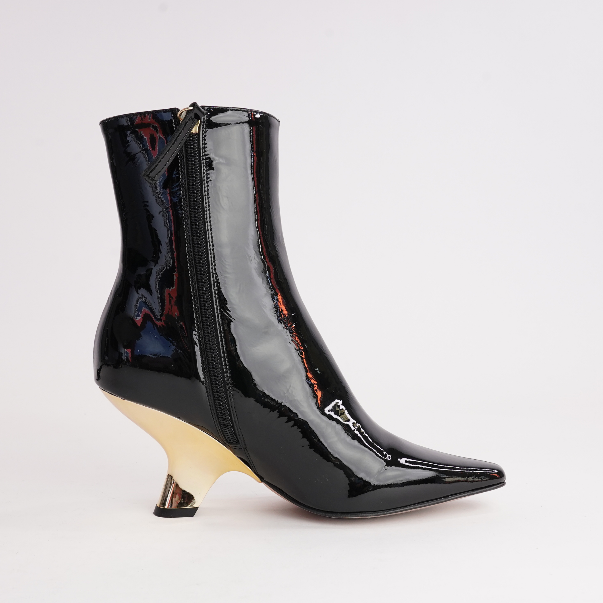 Ag-24573 Black Patent/ Gold Heel Leather Ankle Boots