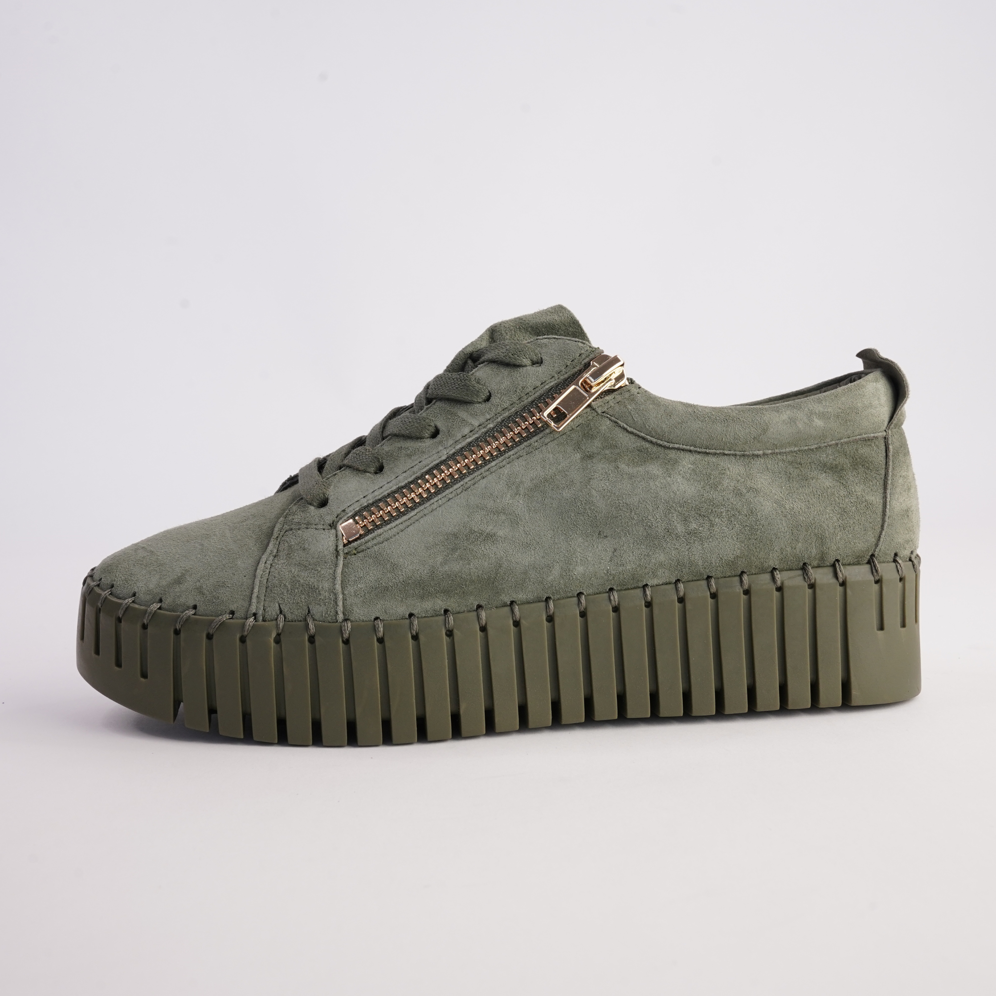 Meet the sneaker everyone keeps asking for, now in khaki suede. The Bump by Django & Juliette blends soft texture with a chunky, directional sole for a look that feels both elevated and wearable. Finished with a side zip for easy on-off, this is the sneaker you’ll reach for on repeat.