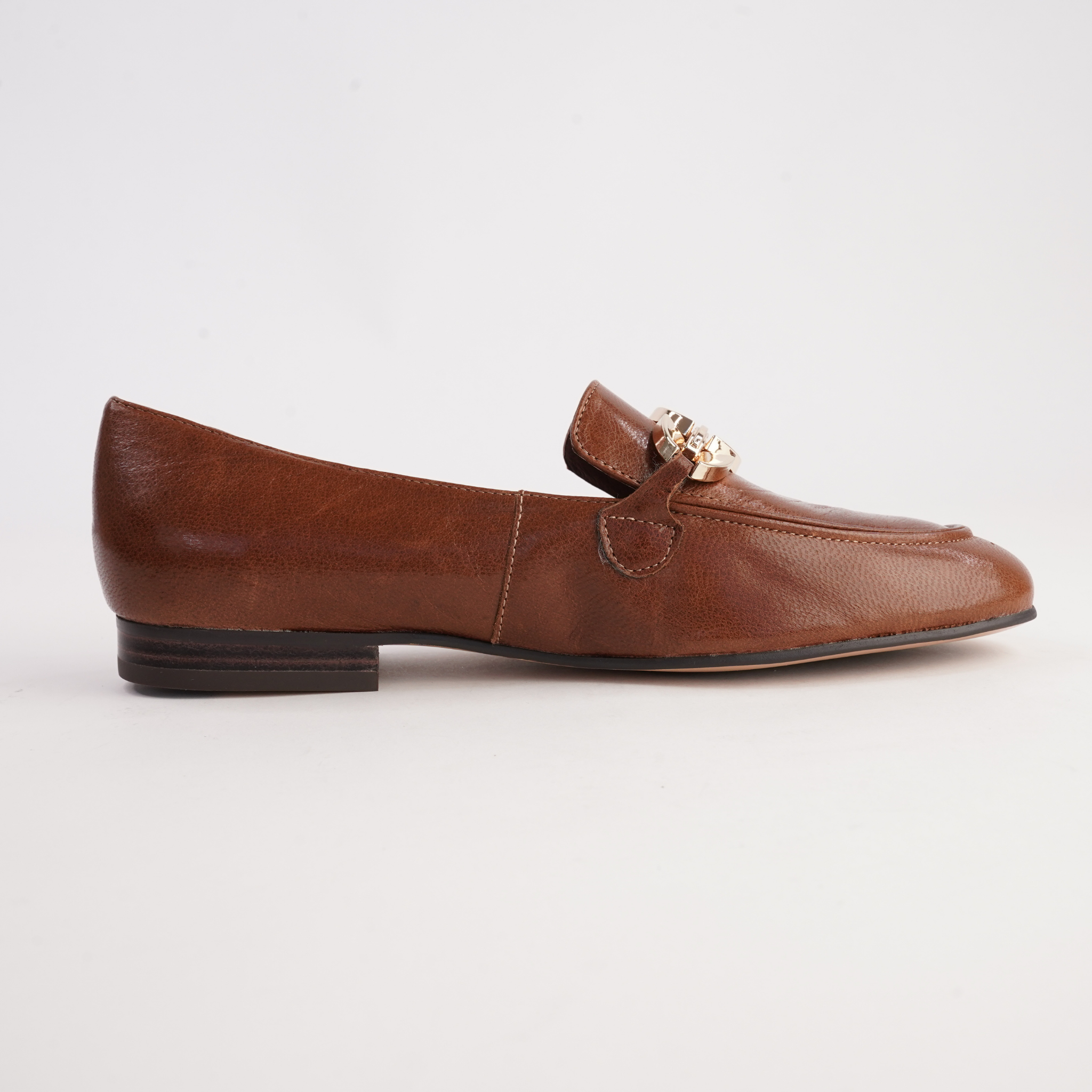 Classic with a polished twist the Ilysa loafers are an effortless way to elevate everyday dressing. Crafted from rich cognac polished leather, this style features a sleek gold-tone chain detail that adds just the right amount of refinement. The low stacked heel and soft leather lining make Ilysa as comfortable as it is timeless, perfect for workdays, long lunches or evenings out.