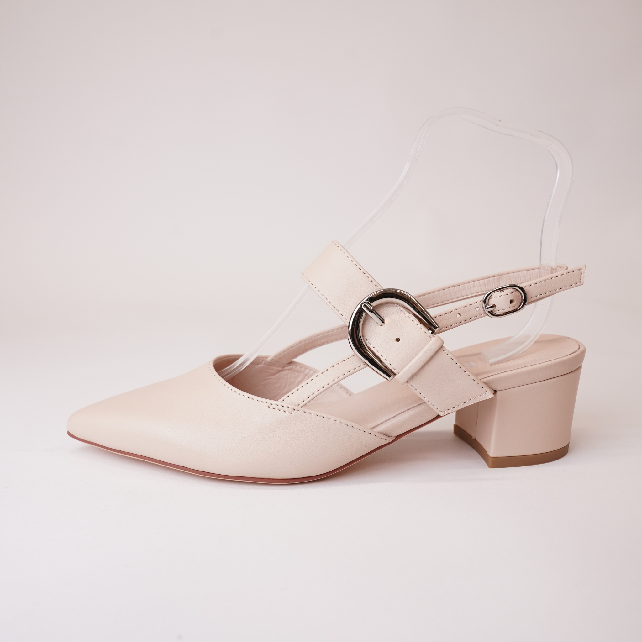 The Asten Nude Leather Heels by Top End elevate your style with a sleek pointed toe and slim buckled heel strap. Made with high-quality leather upper and lining, these heels provide comfort and long-lasting wear. The medium block heel adds a modest height of 4.5cm, perfect for all-day wear.