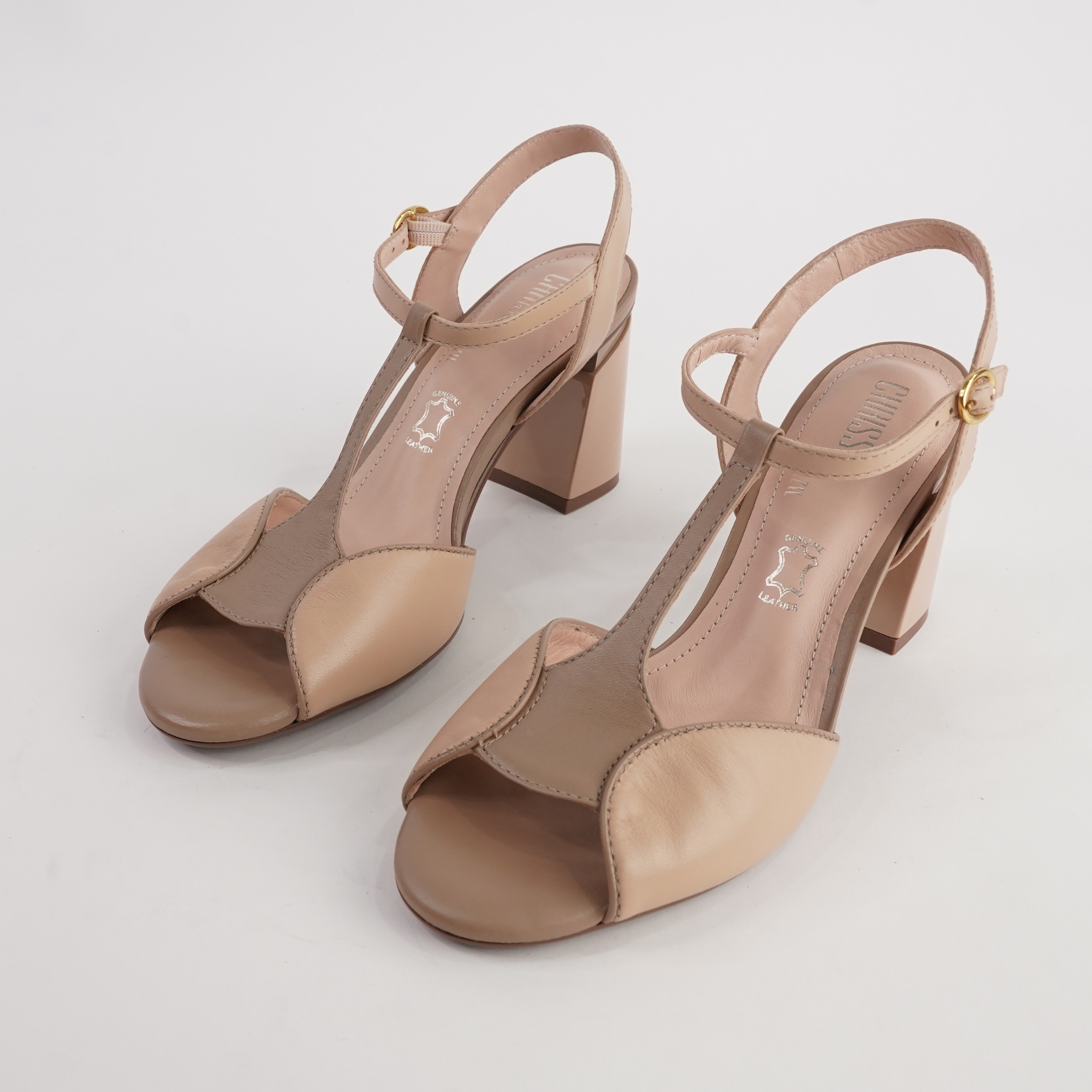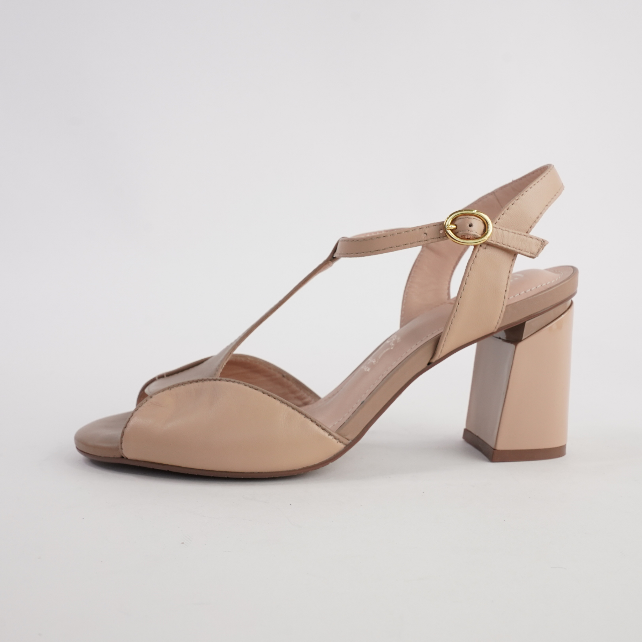 Refined and versatile, the Brooke Heels by Chrissie are the perfect finishing touch to elevate both day and evening looks. Crafted in soft natural and warm taupe leather, this timeless T-bar design offers a flattering open-toe silhouette, balanced by a sturdy block heel for all-day wearability. The slim ankle strap with gold buckle fastening adds an elegant finish, making these heels a wardrobe staple.