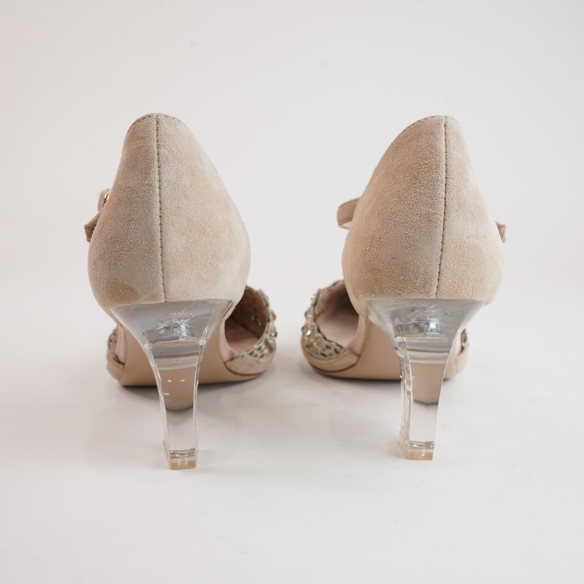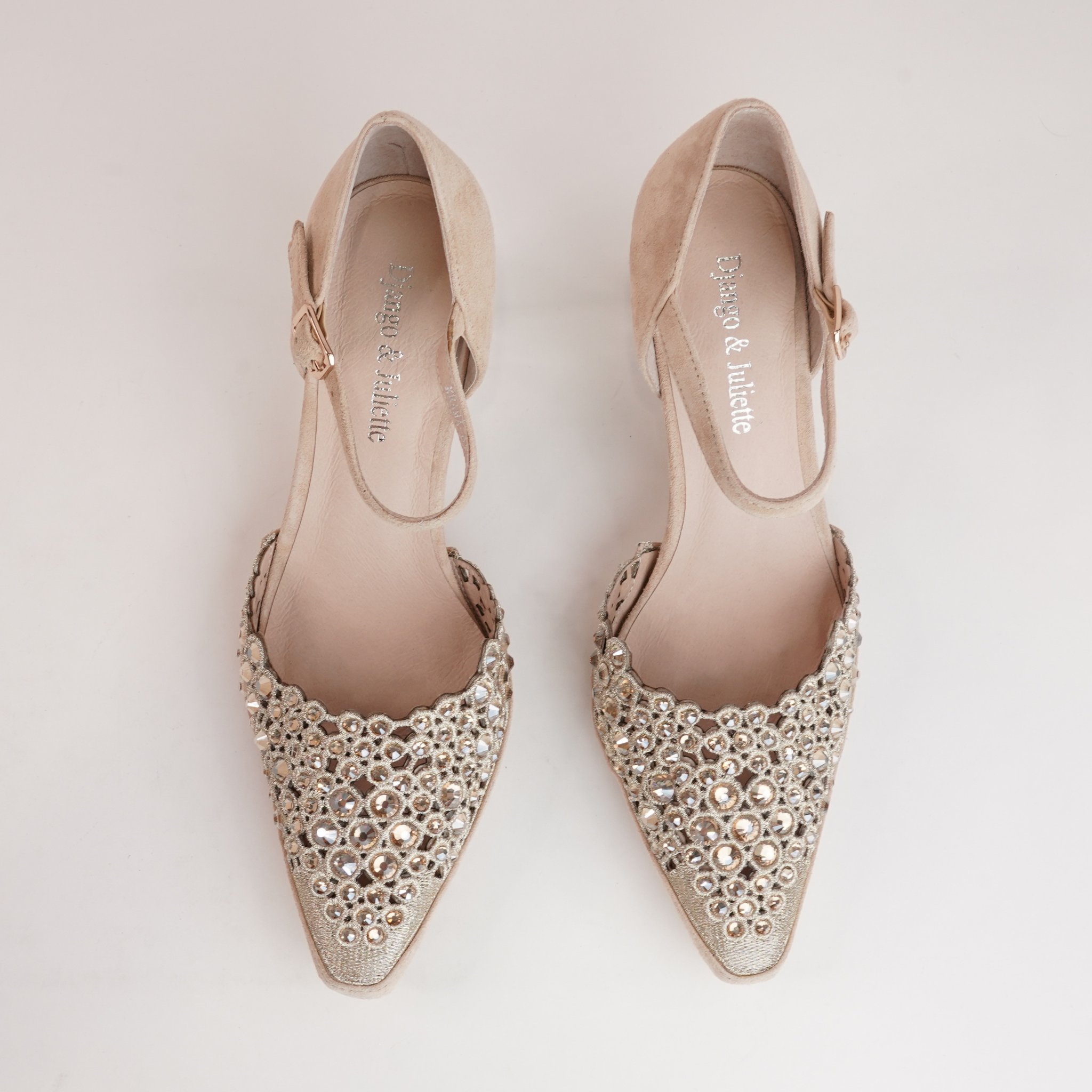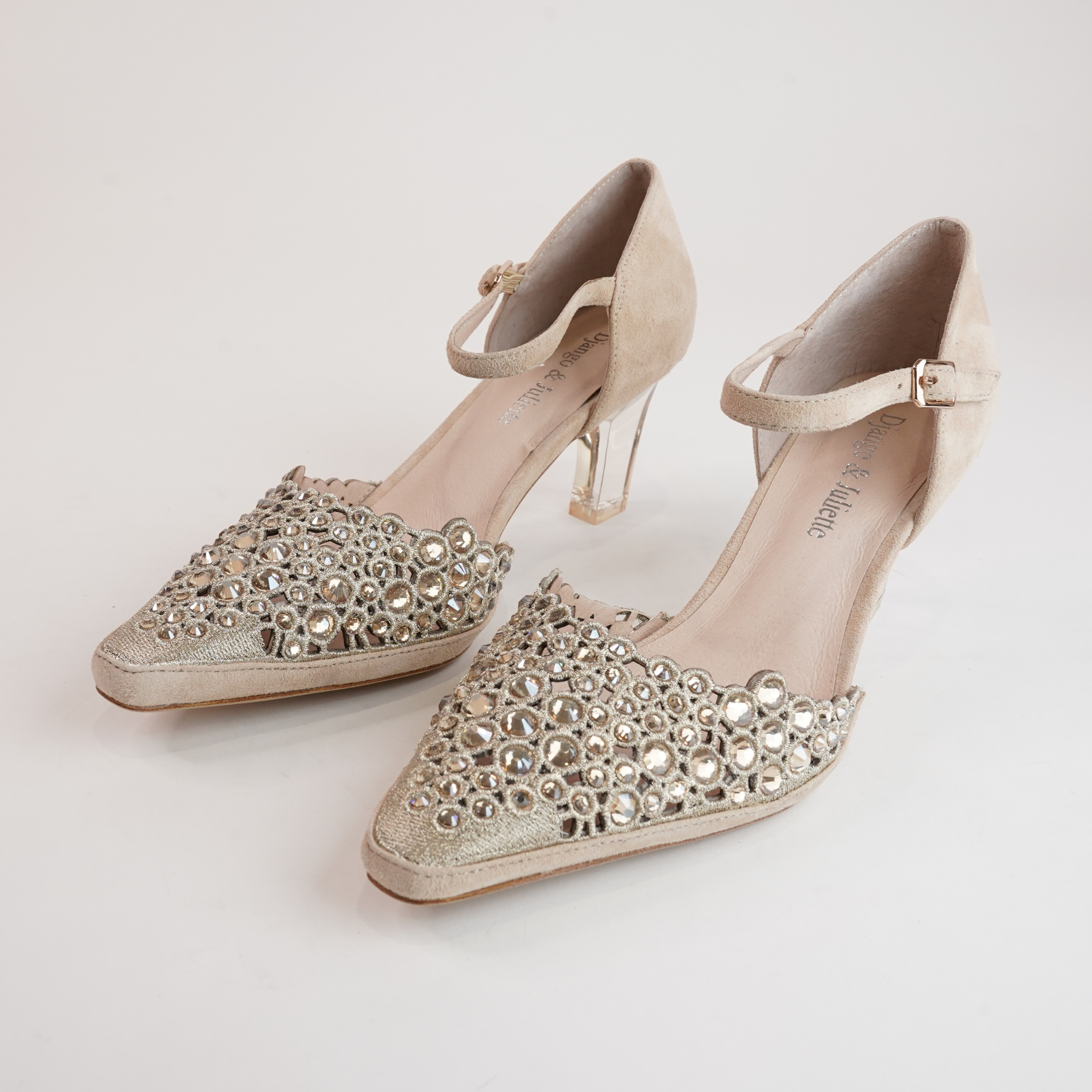 Perfect for weddings, parties, or a night out, the Krama Latte Leather Heels by Django & Juliette combine timeless charm with modern sophistication. The crystal-adorned pointed toe and transparent block heel bring a touch of elegance, while the secure ankle strap keeps you comfortable and supported.