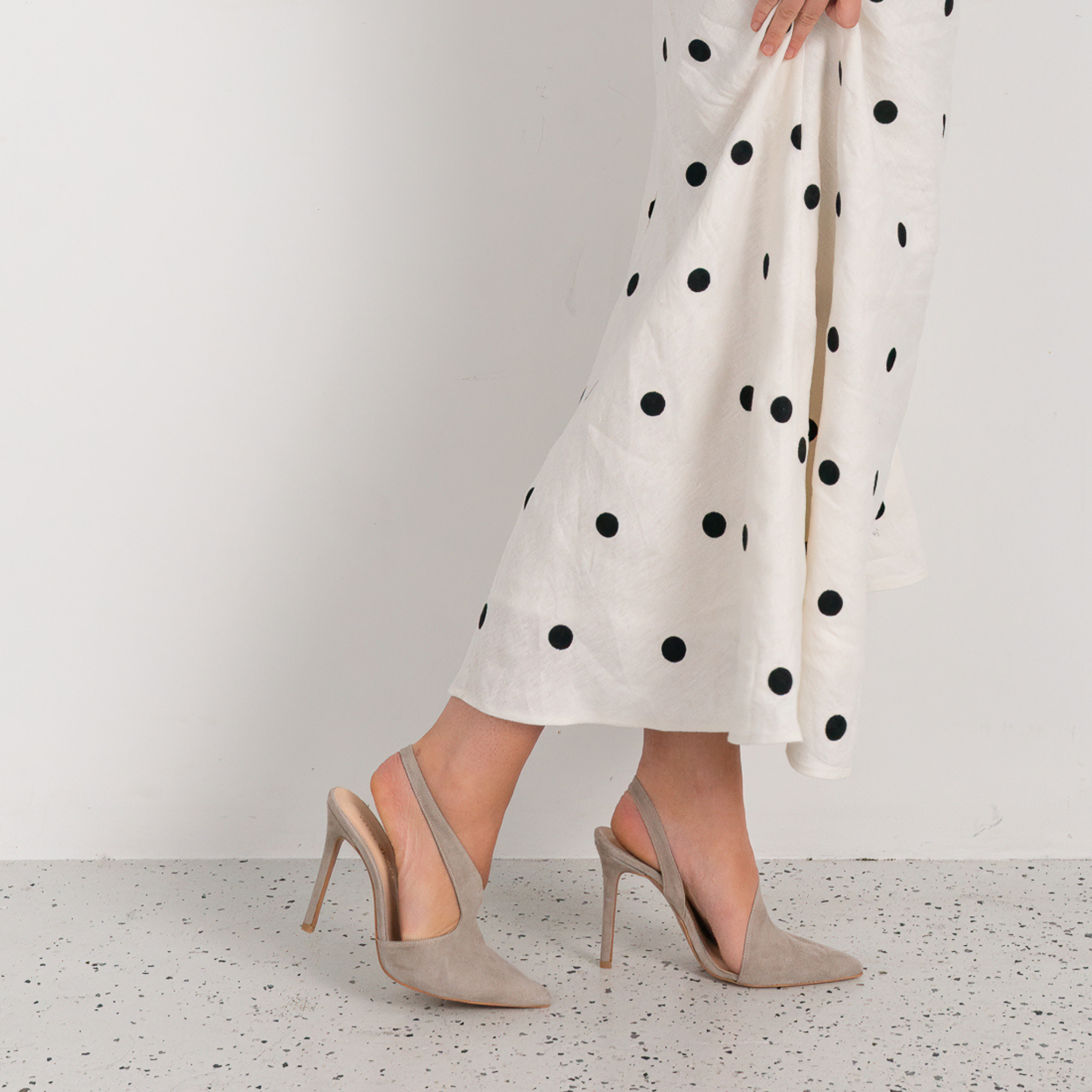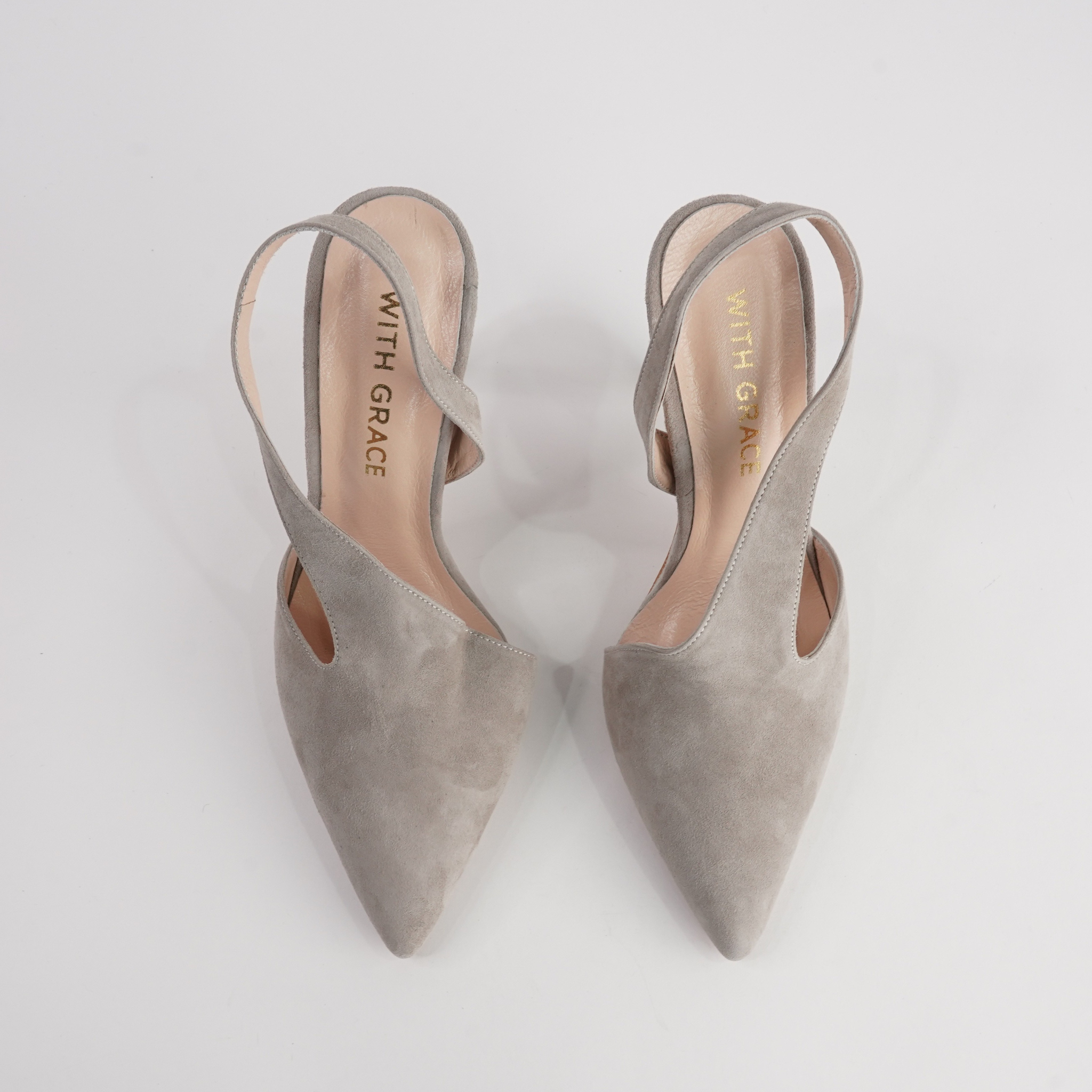 Step into timeless sophistication with the Serena Heels by With Grace. Crafted from soft mink suede, these striking stilettos feature a sleek pointed toe and elegant cut-out slingback design that elongates the leg. Perfect for evening wear, special occasions, or adding polish to tailored looks, the Serena offers both confidence and glamour in every step.