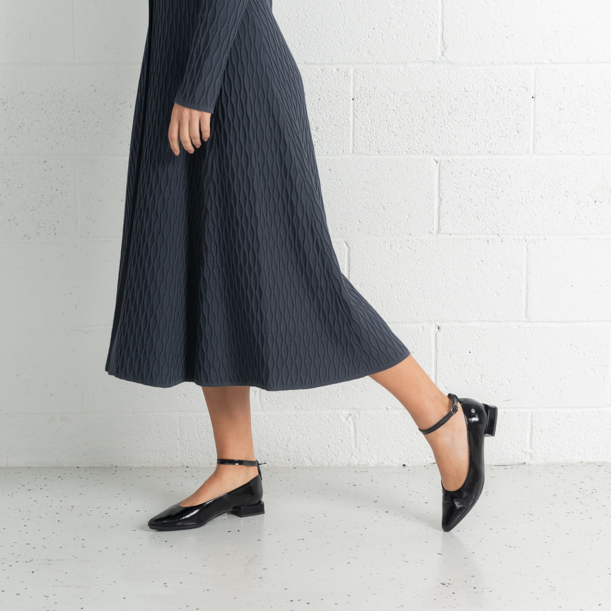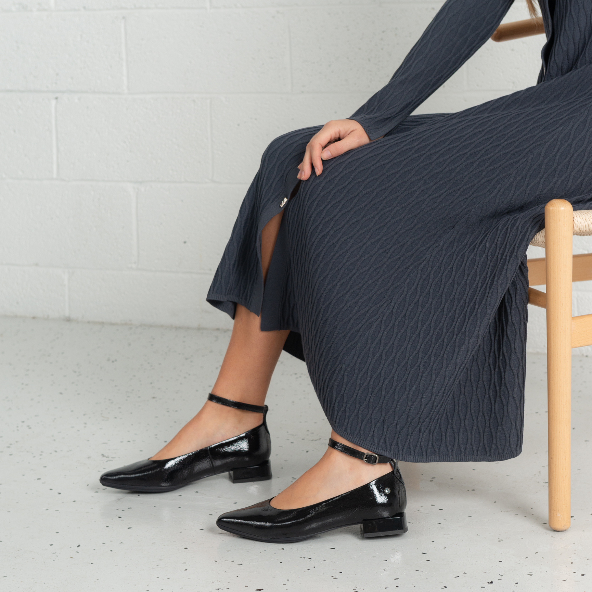 The Luna Black Patent Flats by Nu by Neo are designed to elevate your everyday. Featuring a shiny patent leather finish, adjustable ankle strap, and comfortable low heel, they blend feminine charm with functional wearability.