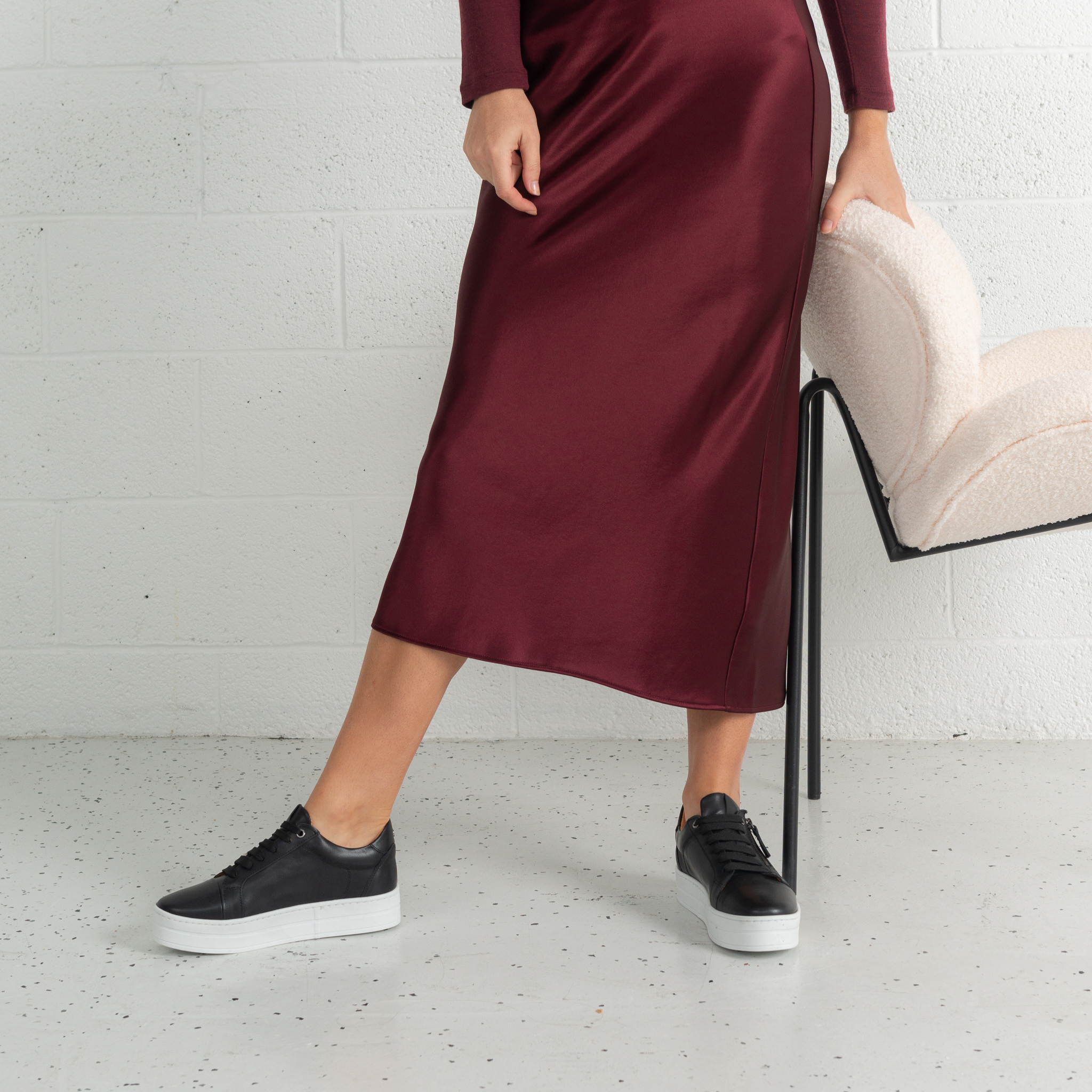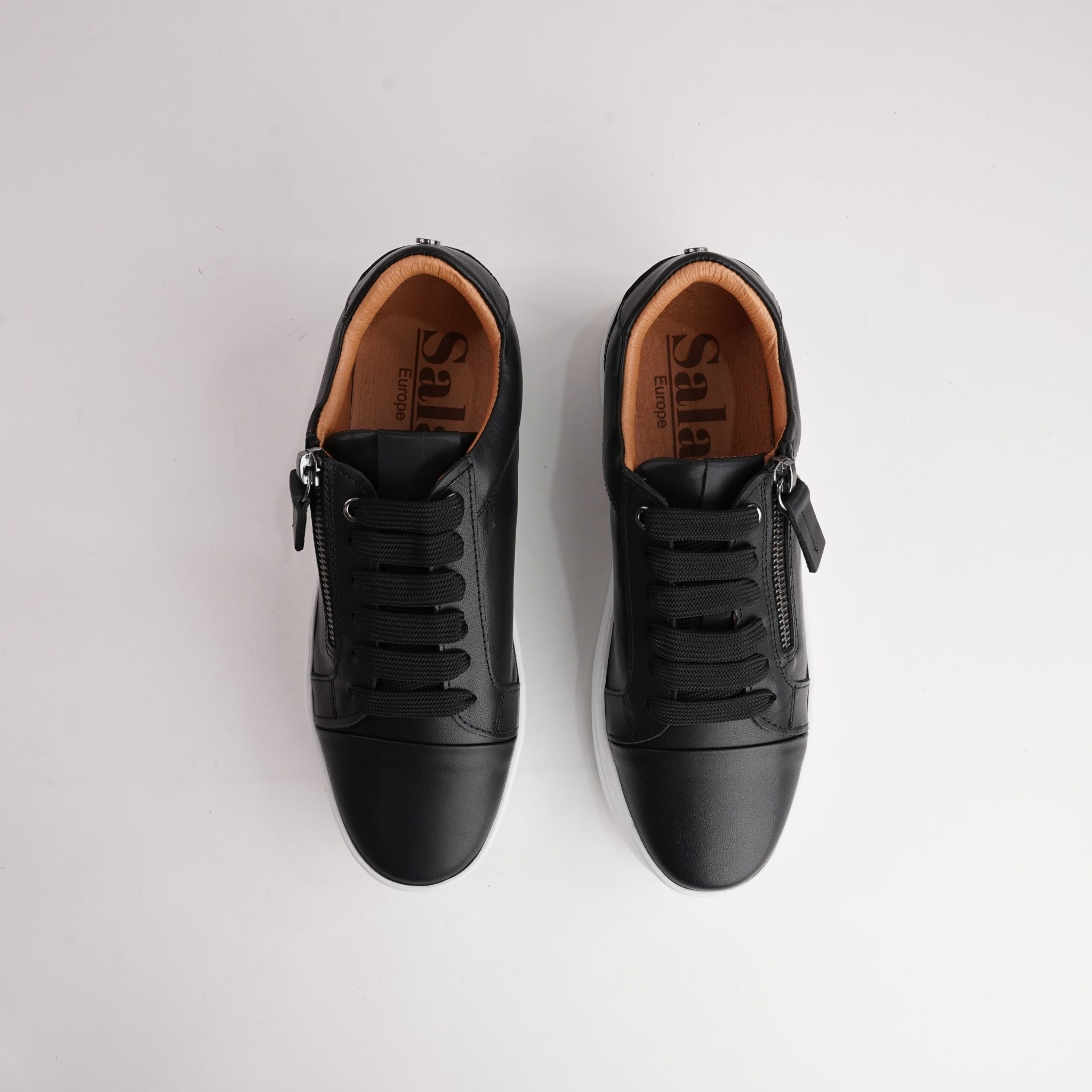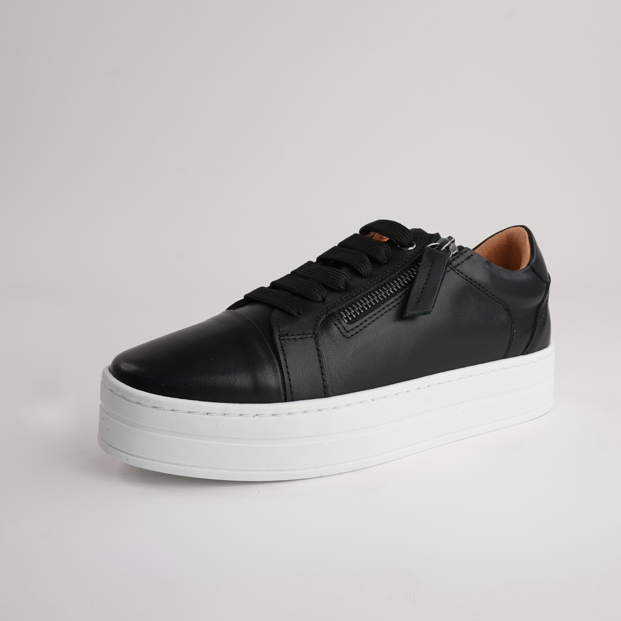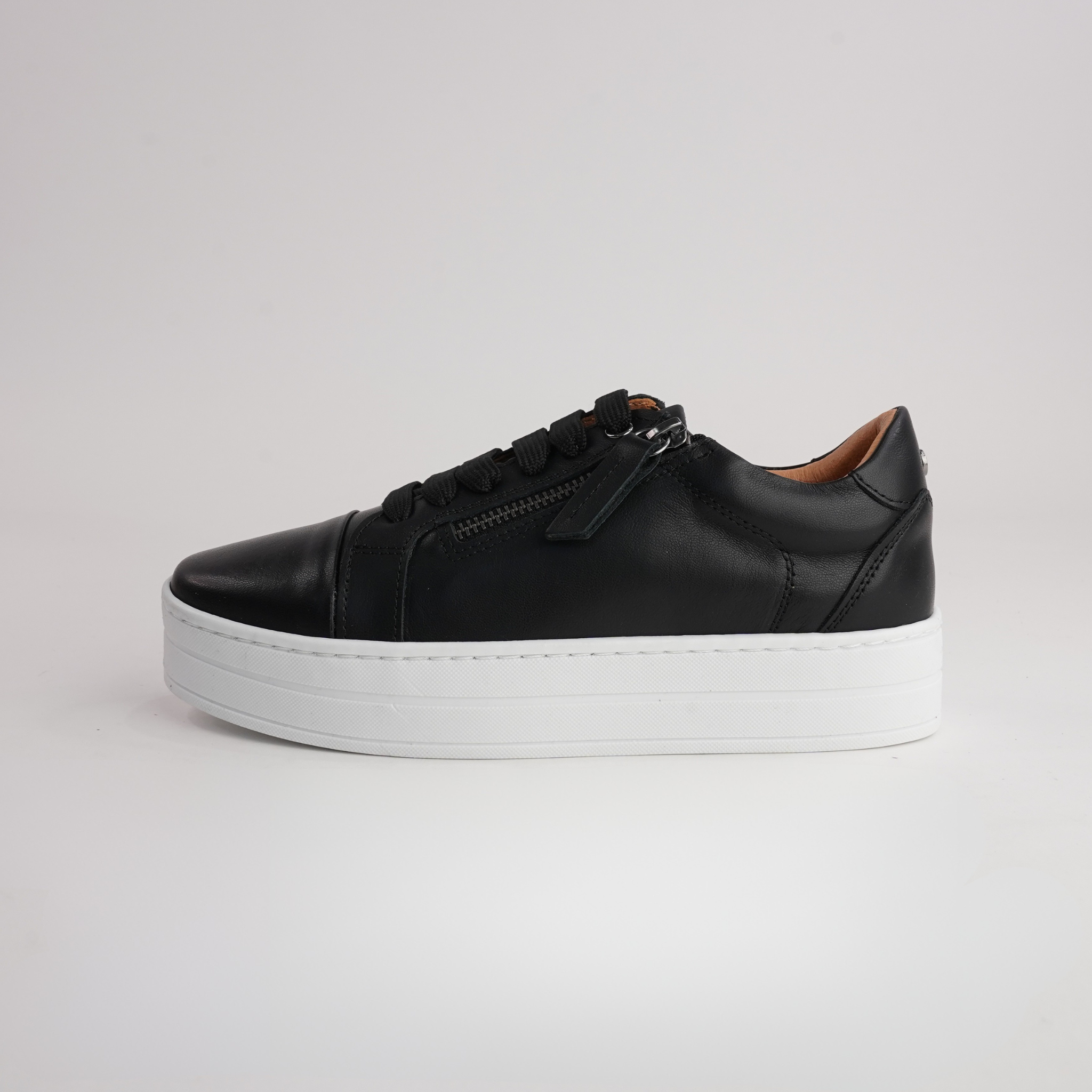 A versatile essential, the Abbey sneakers by Sala combine supple black leather, a supportive platform sole, and side zip access for easy on-and-off. Perfect for busy days and relaxed weekends alike.