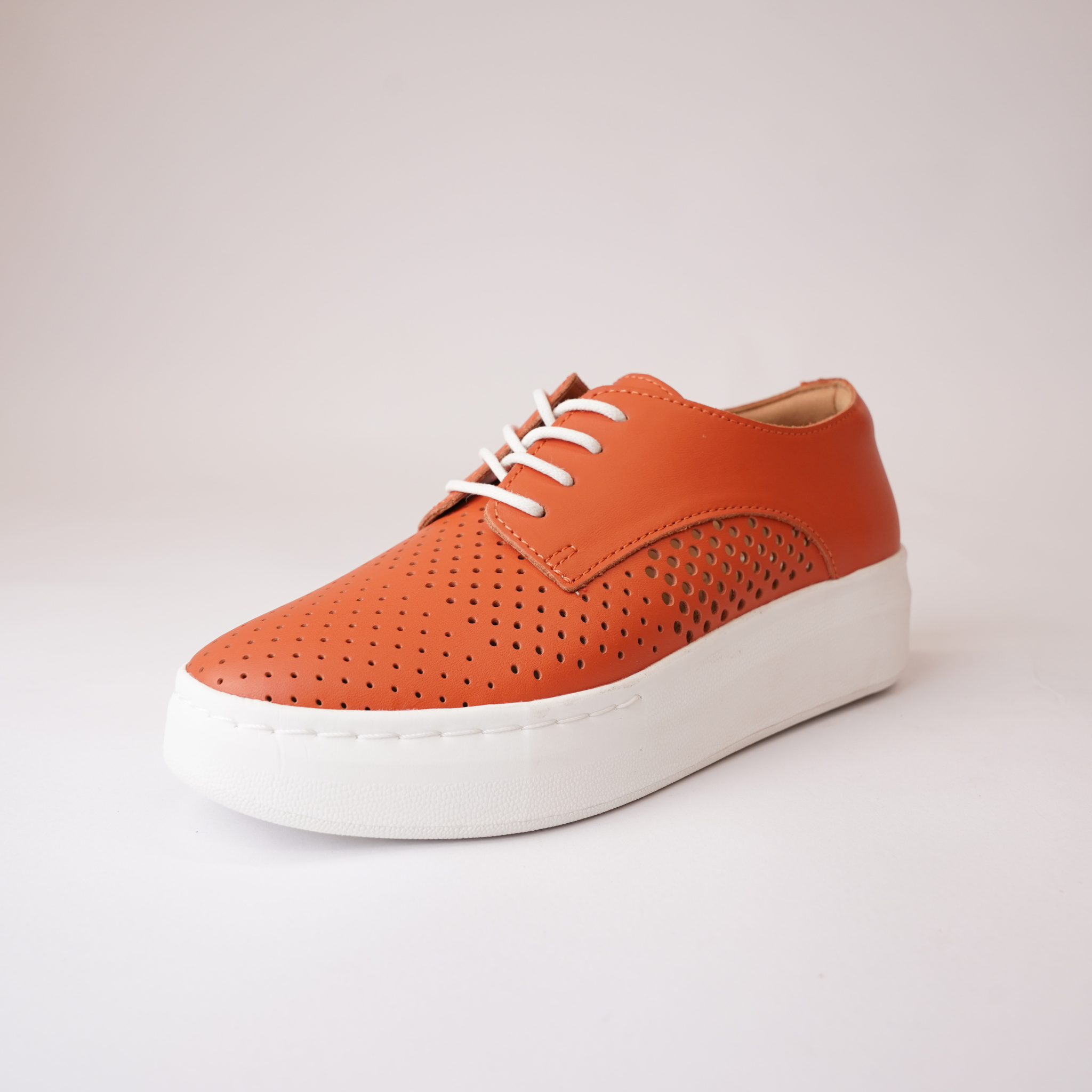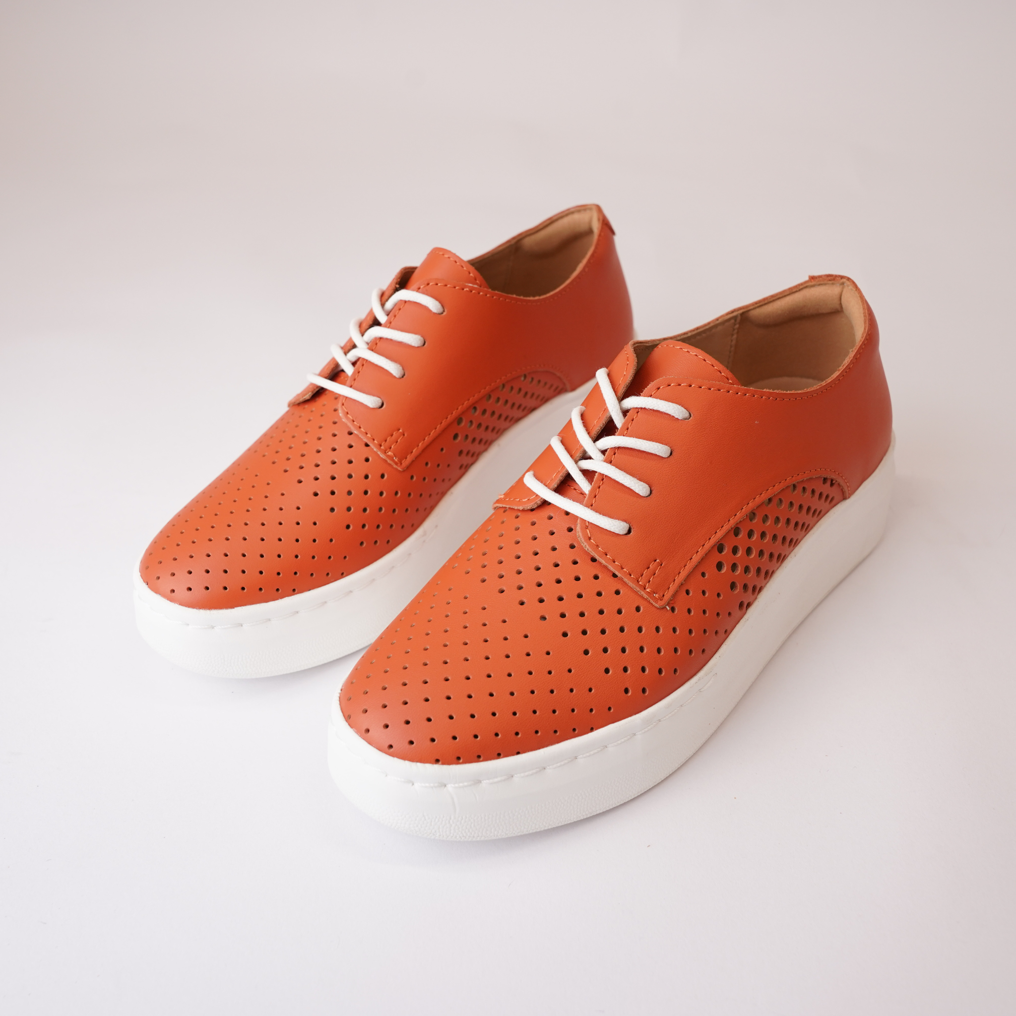 Derby City Punch Tangerine Leather Lace Up Flats