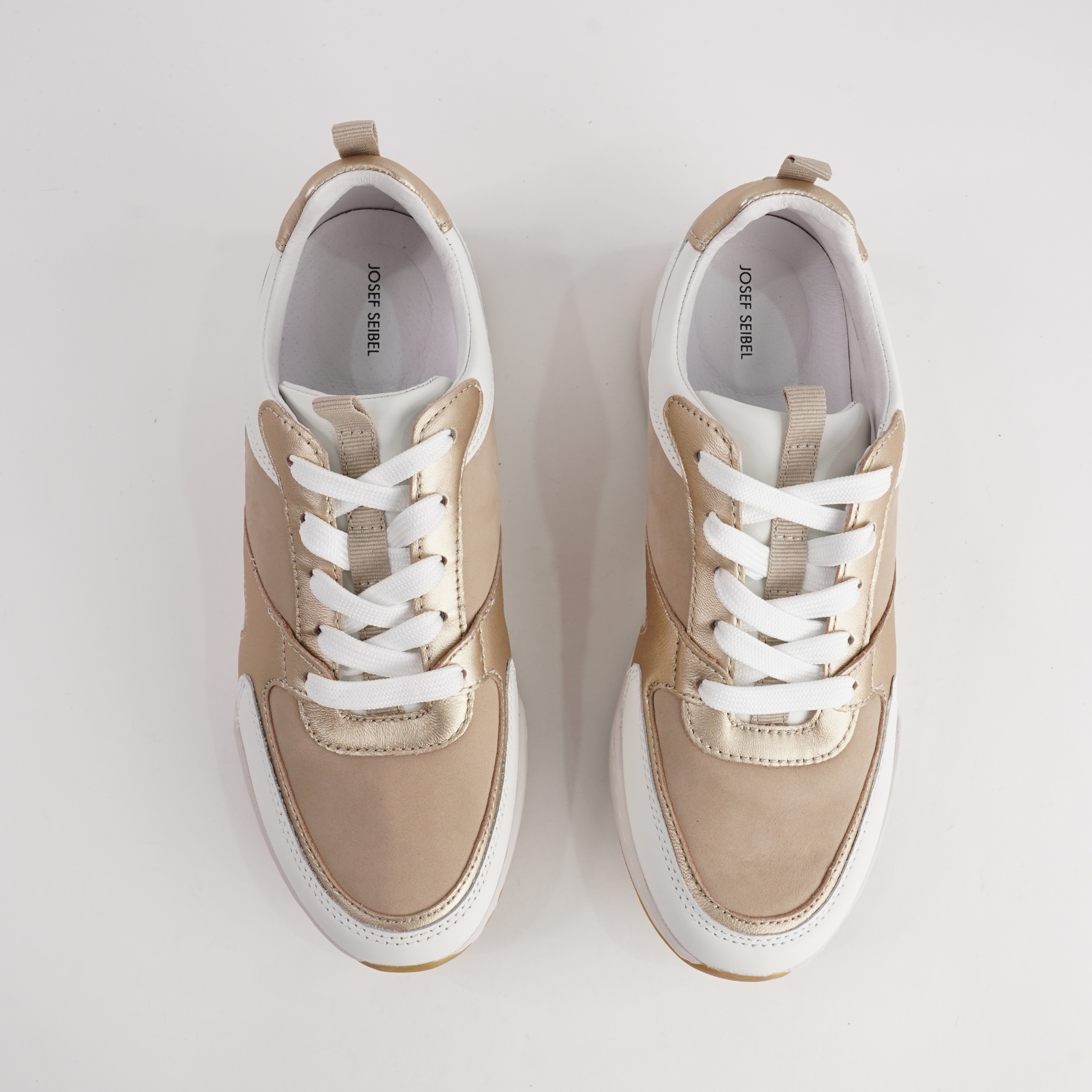 Effortlessly stylish and endlessly comfortable, the Elli 09 Weiss Multi Leather Sneakers by Josef Seibel blend modern design with everyday practicality. Crafted from soft leather in a white, champagne, and beige mix, these sneakers deliver a fresh, versatile look that pairs with any outfit. Designed with a removable cushioned insole, they’re orthotic friendly and ideal for all-day wear. The lightweight sole offers flexibility and shock absorption, ensuring every step feels as good as it looks.