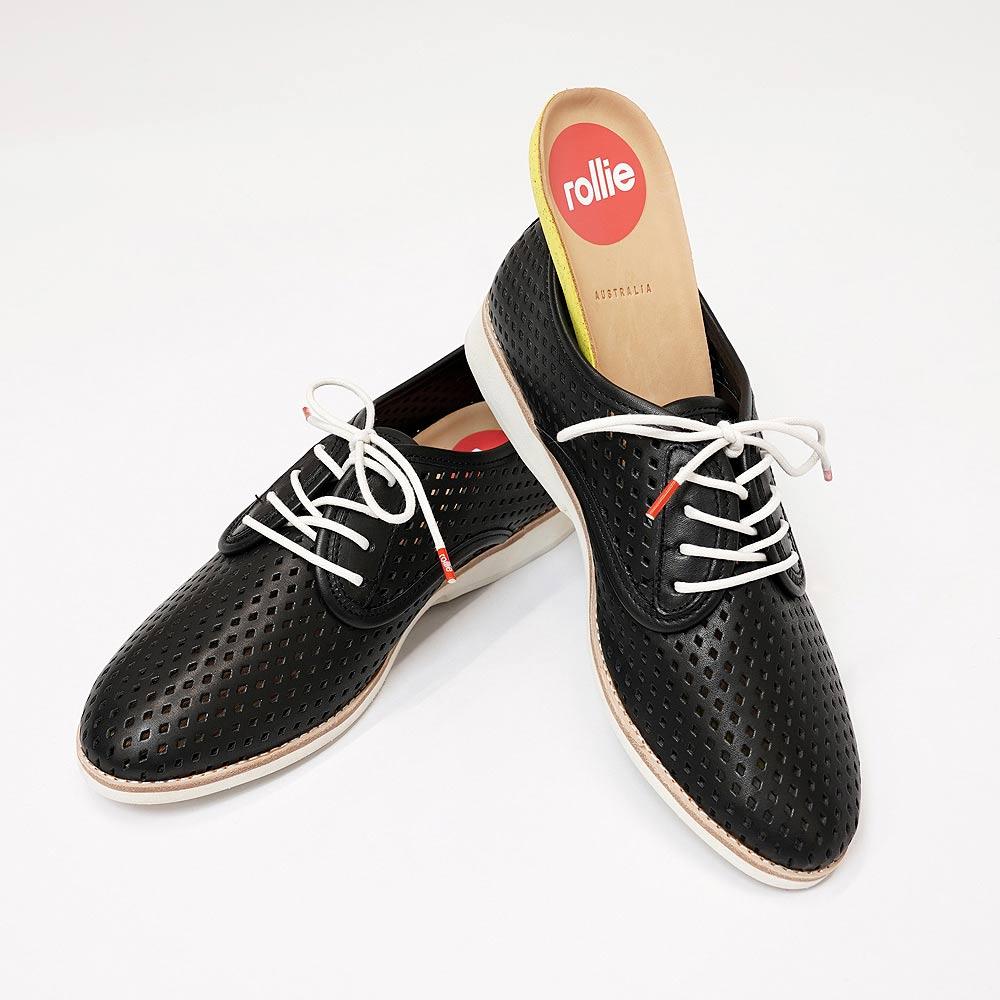 You can count on Rollie to design the perfect dress flat for summer. We love these Derby Punch Black Leather Oxfords featuring orthotic-friendly insoles, a laser-cut upper, a lightweight design and elasticated gussets on the inside to ensure a perfect snug fit. Style them with your favourite linen suits for a fashionable office look that seamlessly combines comfort and style.