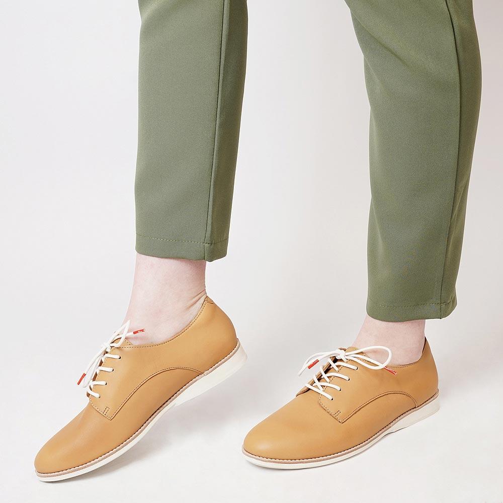 The Rollie Derby Soft Tan Oxford flats by Rollie are a classic office favourite. Their bright tan leather upper is perfect for brightening up your dark winter ensembles but then also transitions well into the spring and summer months. Wear yours with everything from wide-leg pants to skinny jeans.