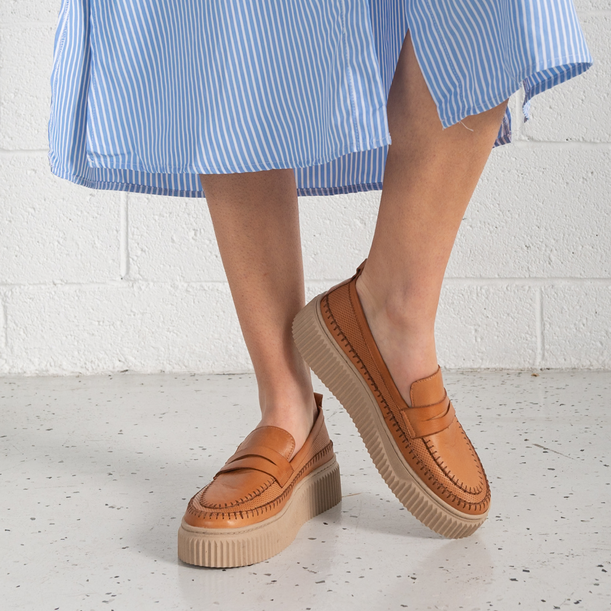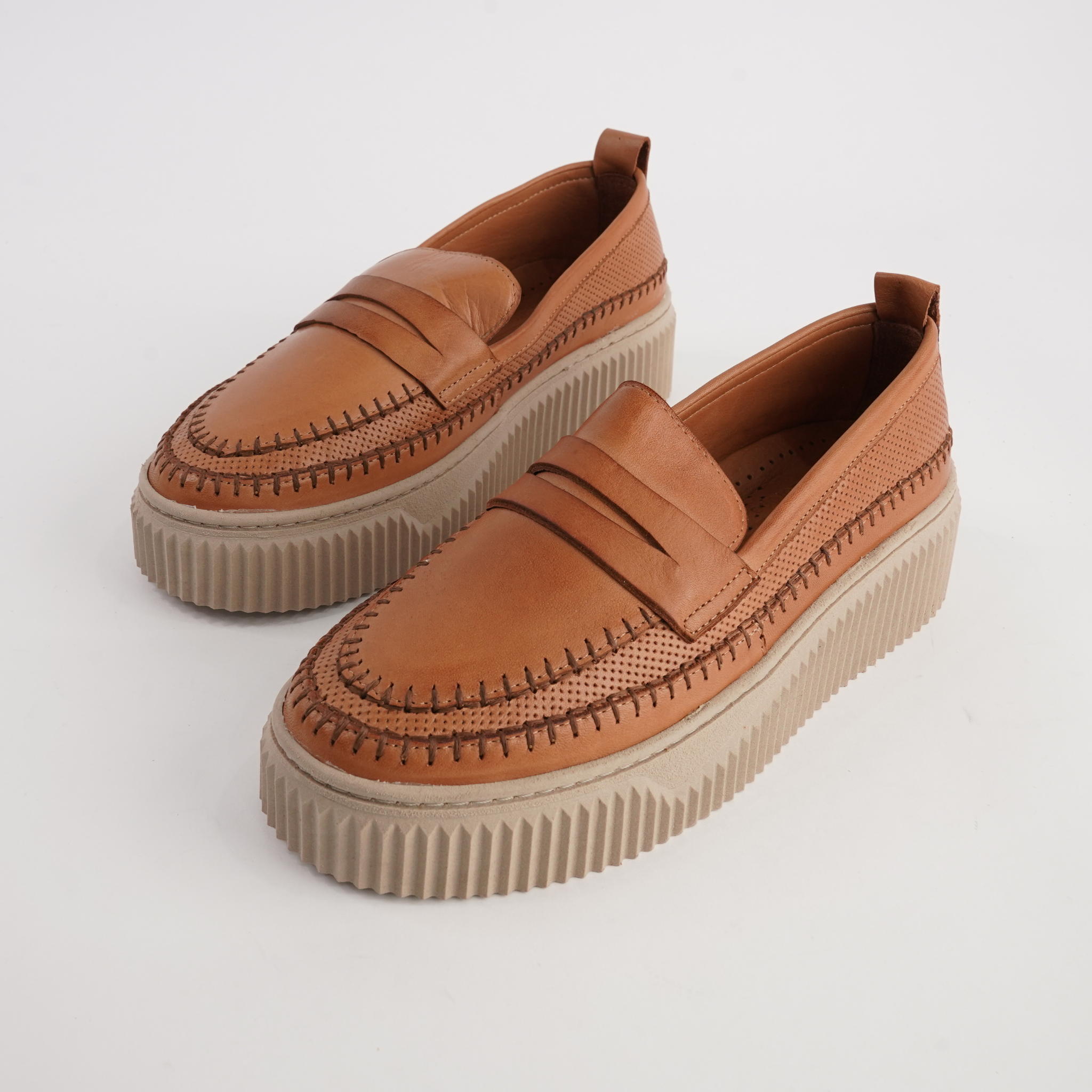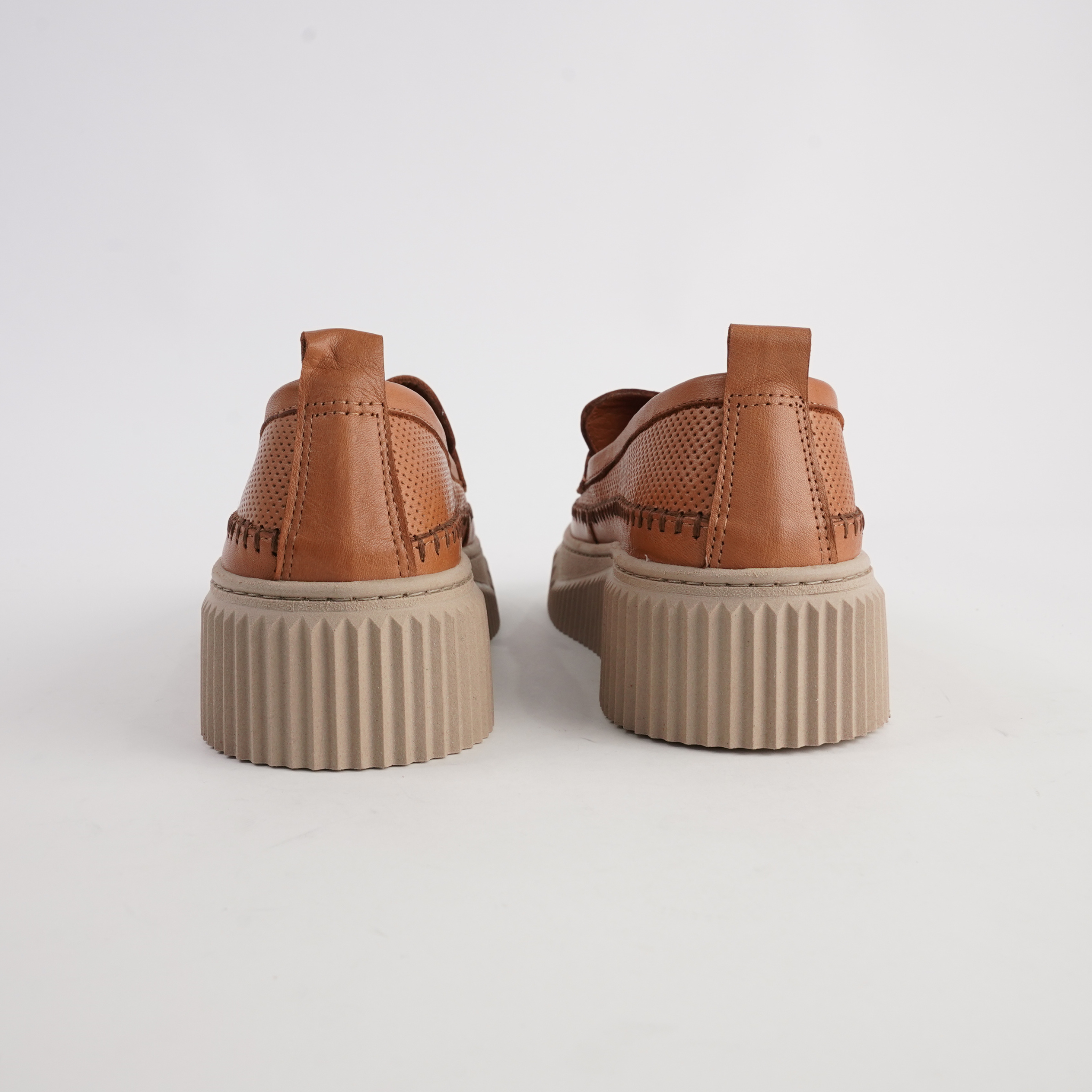 The Bobby Loafers by Sala bring a contemporary twist to a timeless silhouette. Crafted in smooth coconut leather, these loafers feature detailed stitching, perforated panels, and a sleek penny strap design. The standout flatform sole adds height and a modern edge while ensuring maximum comfort and stability for all-day wear. Perfect for pairing with tailored pants, skirts, or casual denim, Bobby strikes the balance between polished and relaxed.