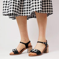 The Blair Black heels by Zeta are set on a 6.5cm block heel and feature a padded footbed as well as a decorative chain link strap on the front strap. These stylish heeled sandals are casual enough for everyday wear but also nice enough to be dressed up for special events and occasions.