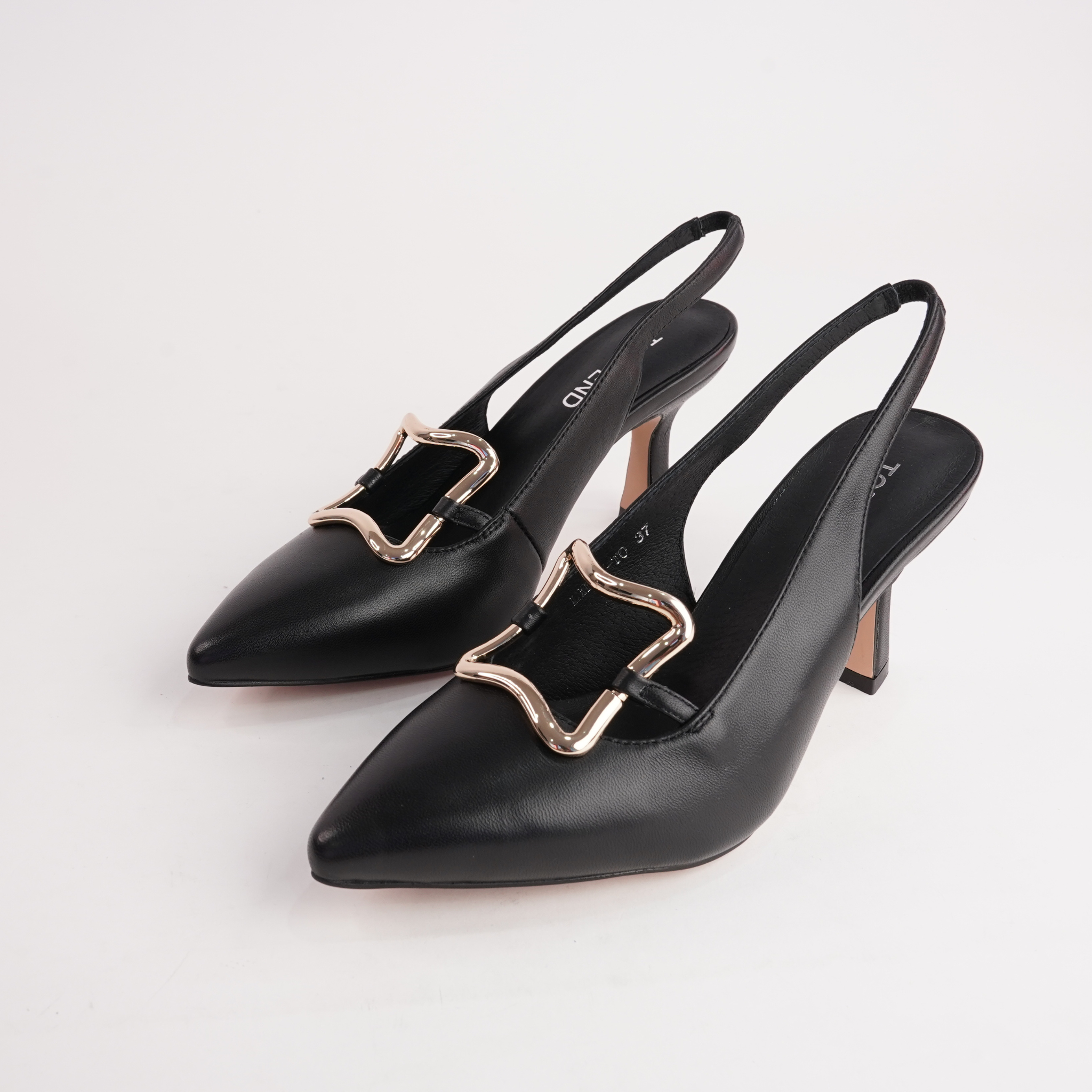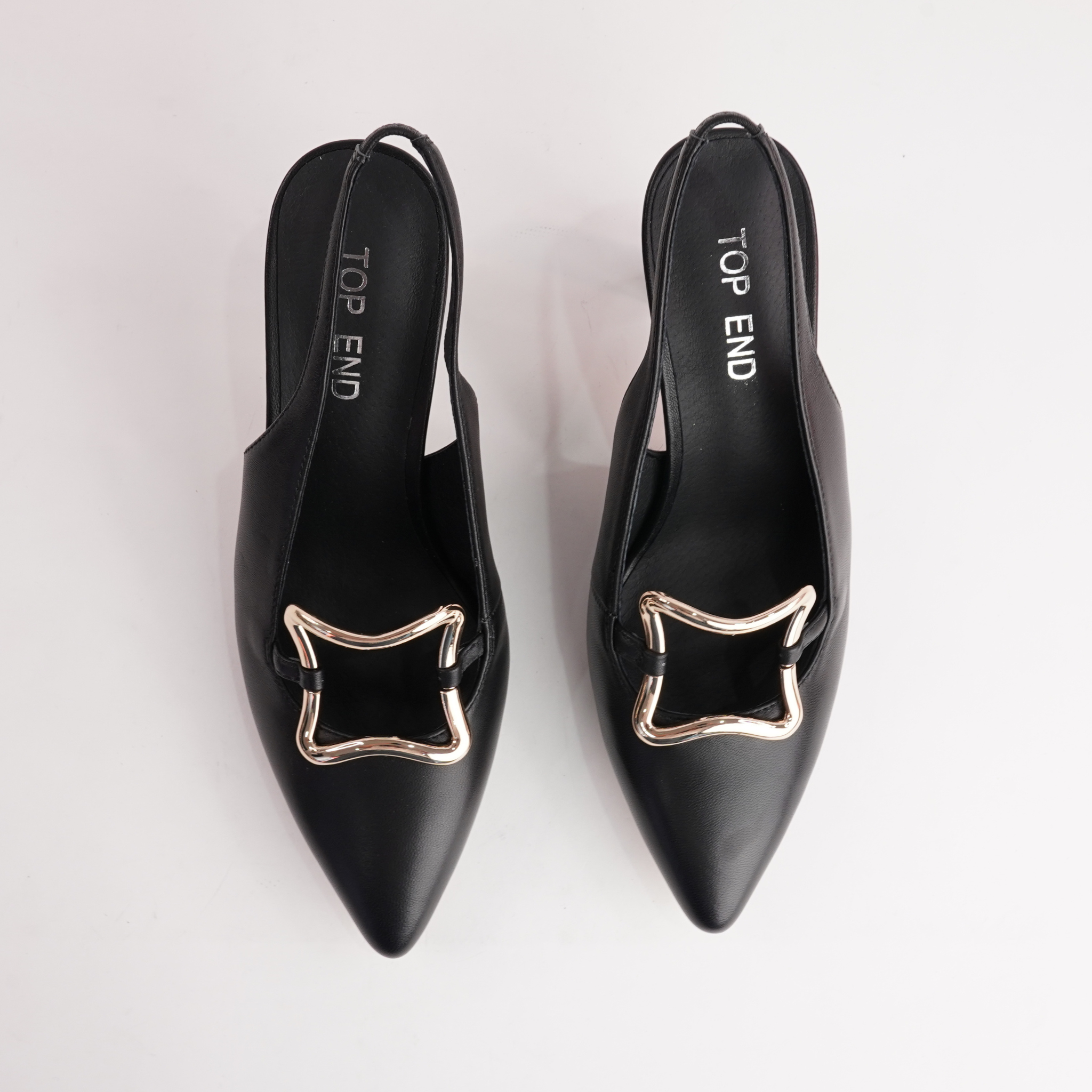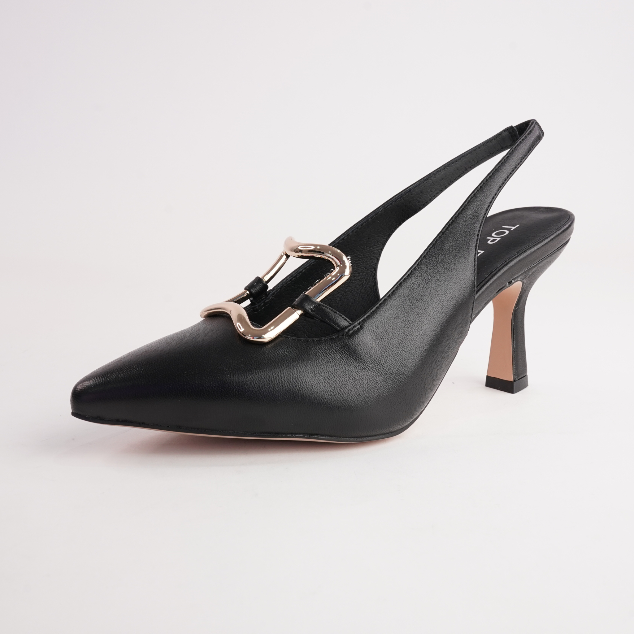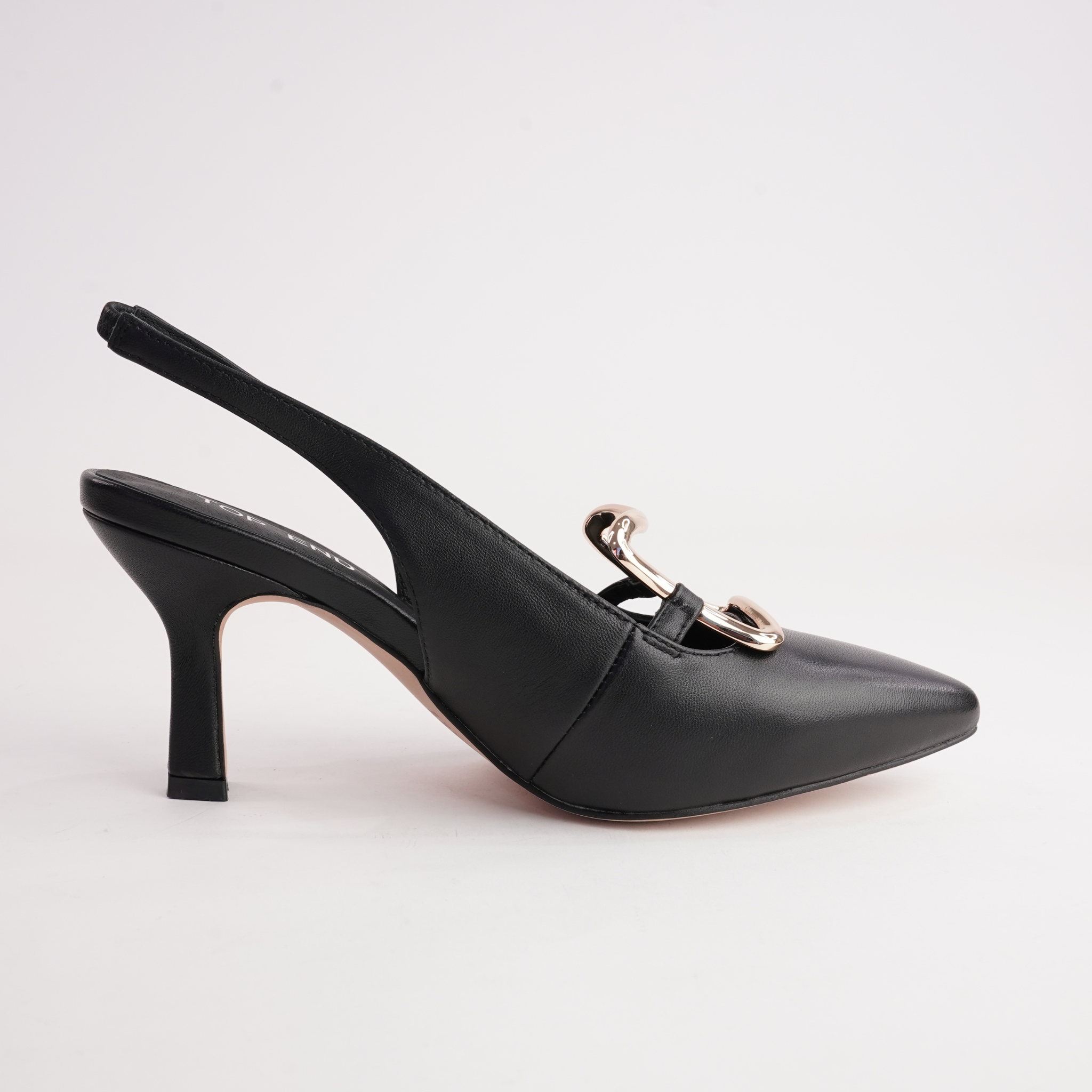 Chic and confident, the Linky Nude Leather Heels by Top End are your new wardrobe hero. With a slingback design, pointed toe, and eye-catching gold hardware, these heels are crafted in soft leather and designed to pair seamlessly with tailored trousers, dresses or skirts.