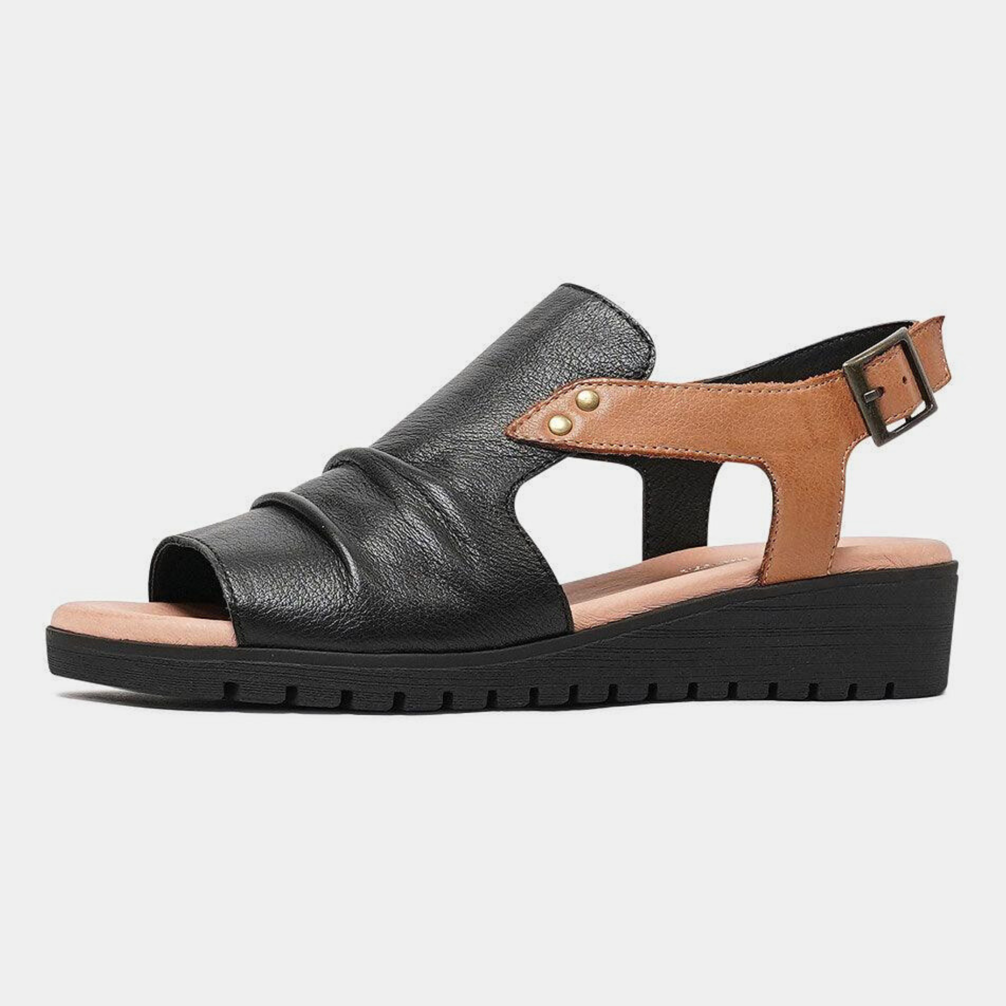 Madis in Black and Dark Tan from Django & Juliette is a classic wedge shoe that will take you through summer with ease. Madis sits on a 3.5cm wedge heel and is made from beautiful leather, this wedge has a soft padded footbed and cleated sole for extra grip.
