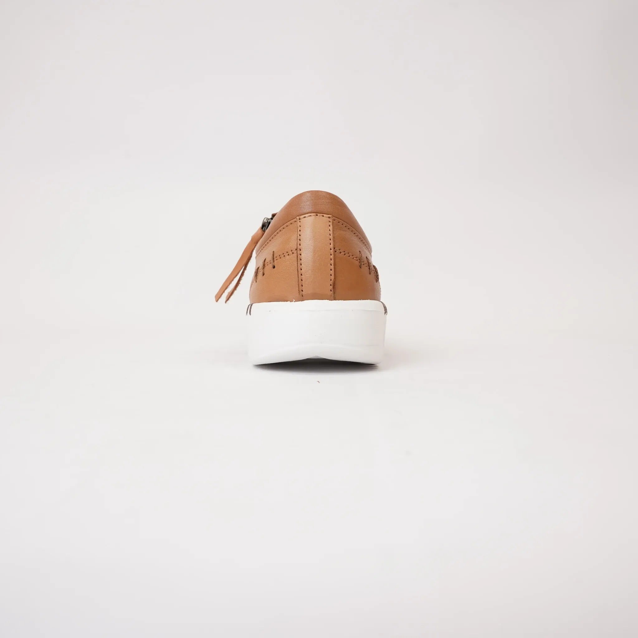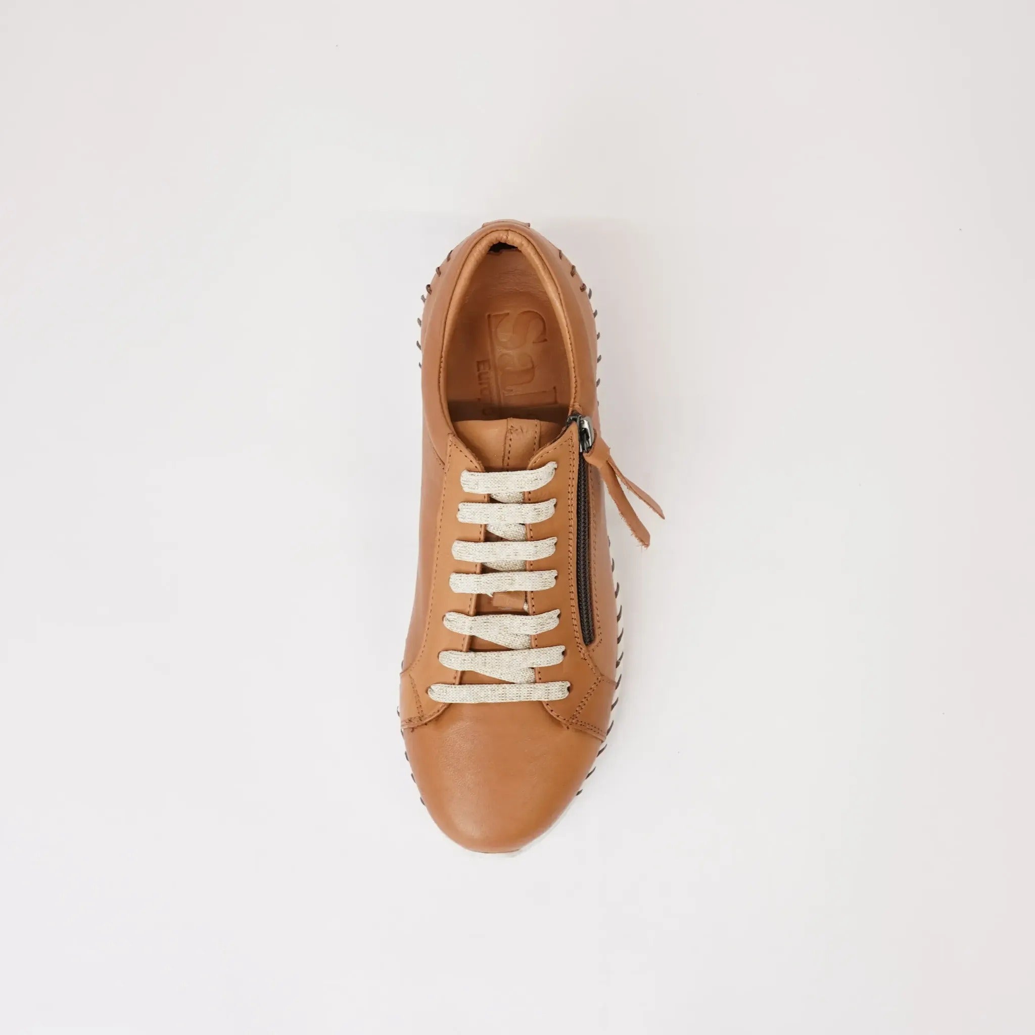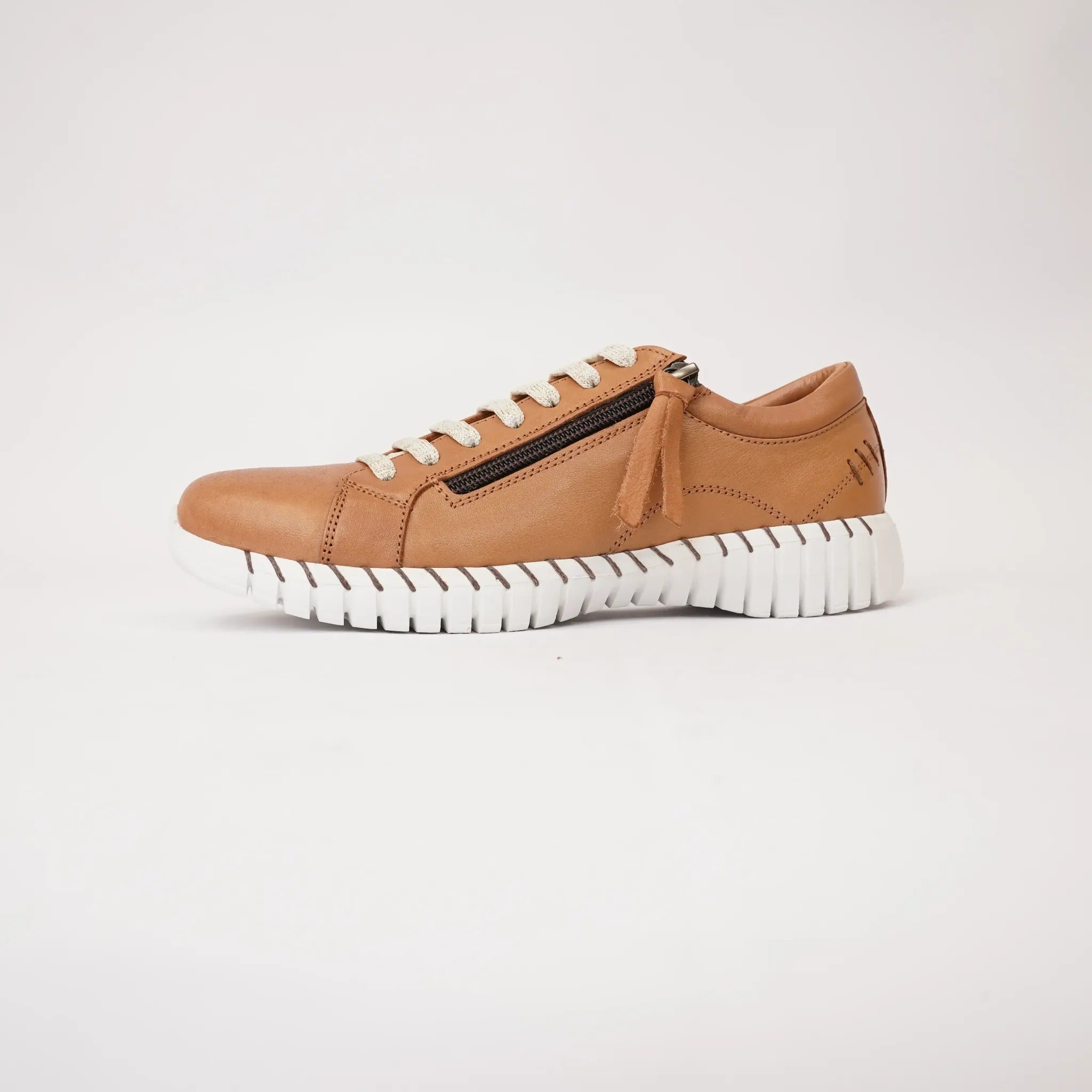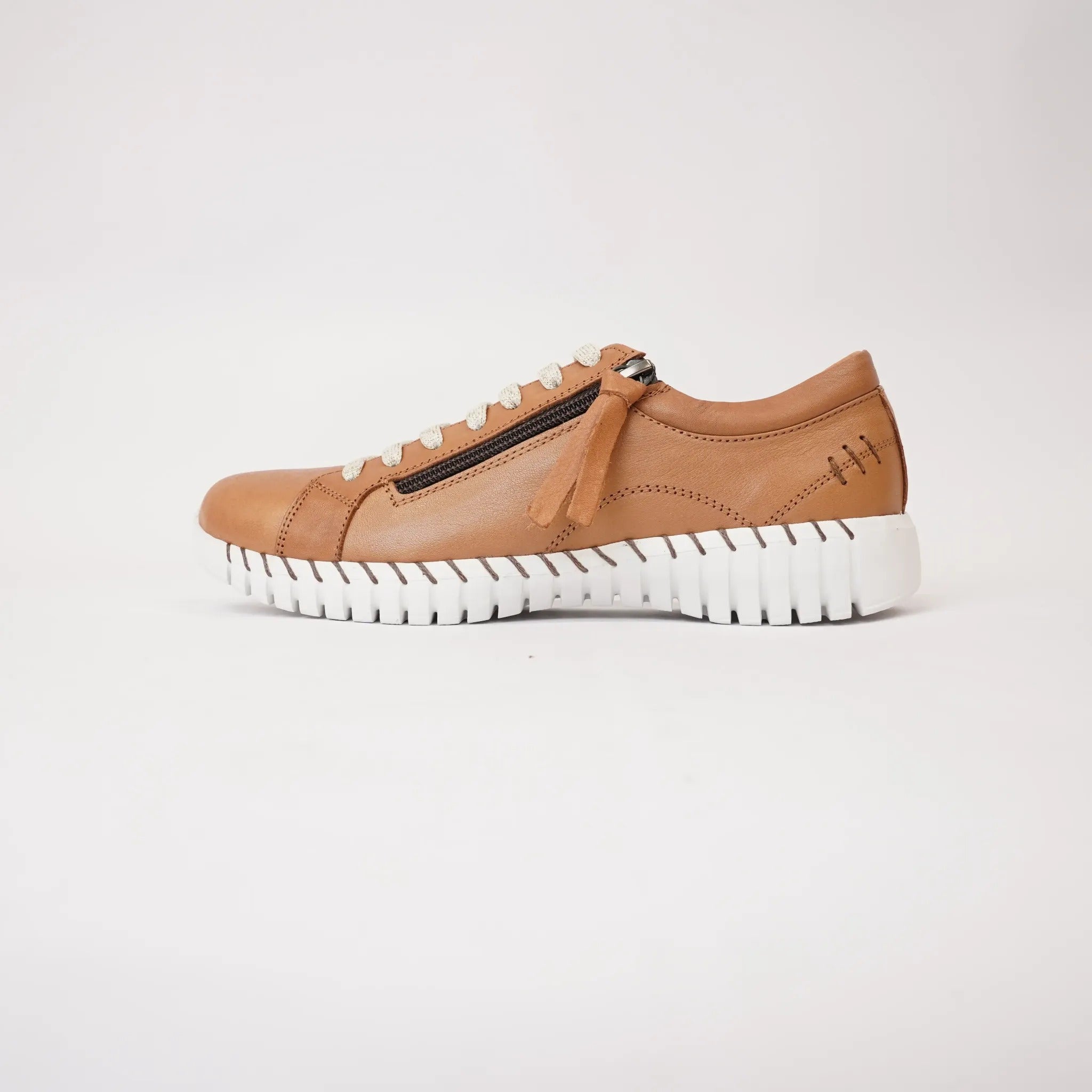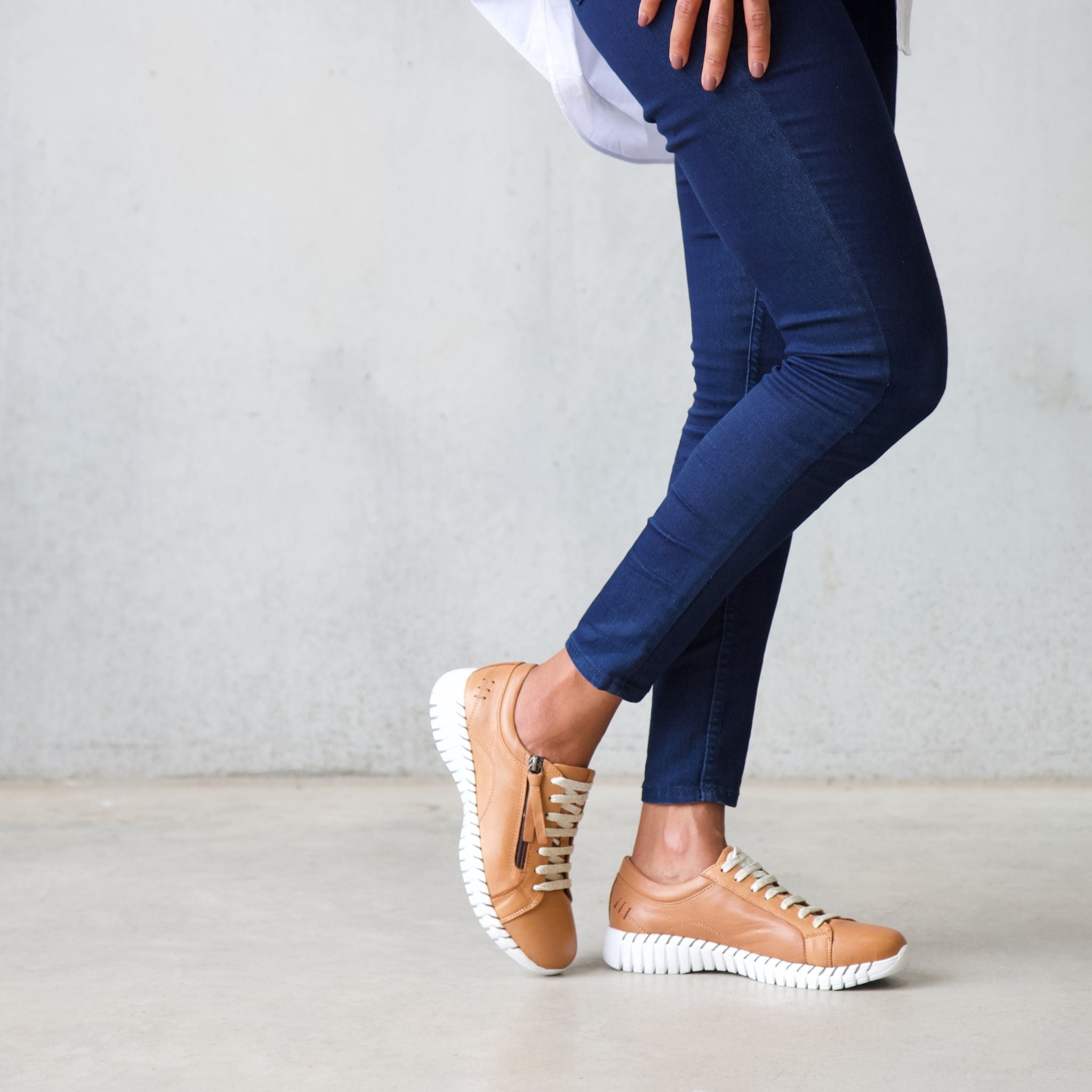 Elevate your sneaker game with Bibi Coconut Leather Sneakers by Sala. Made with a leather upper and lining, these sneakers offer comfort and style. The 3cm heel adds a subtle lift, while the outer foot side zipper and lace-up design provide a secure fit. Orthotic-friendly for all-day wear. Made in Turkey.