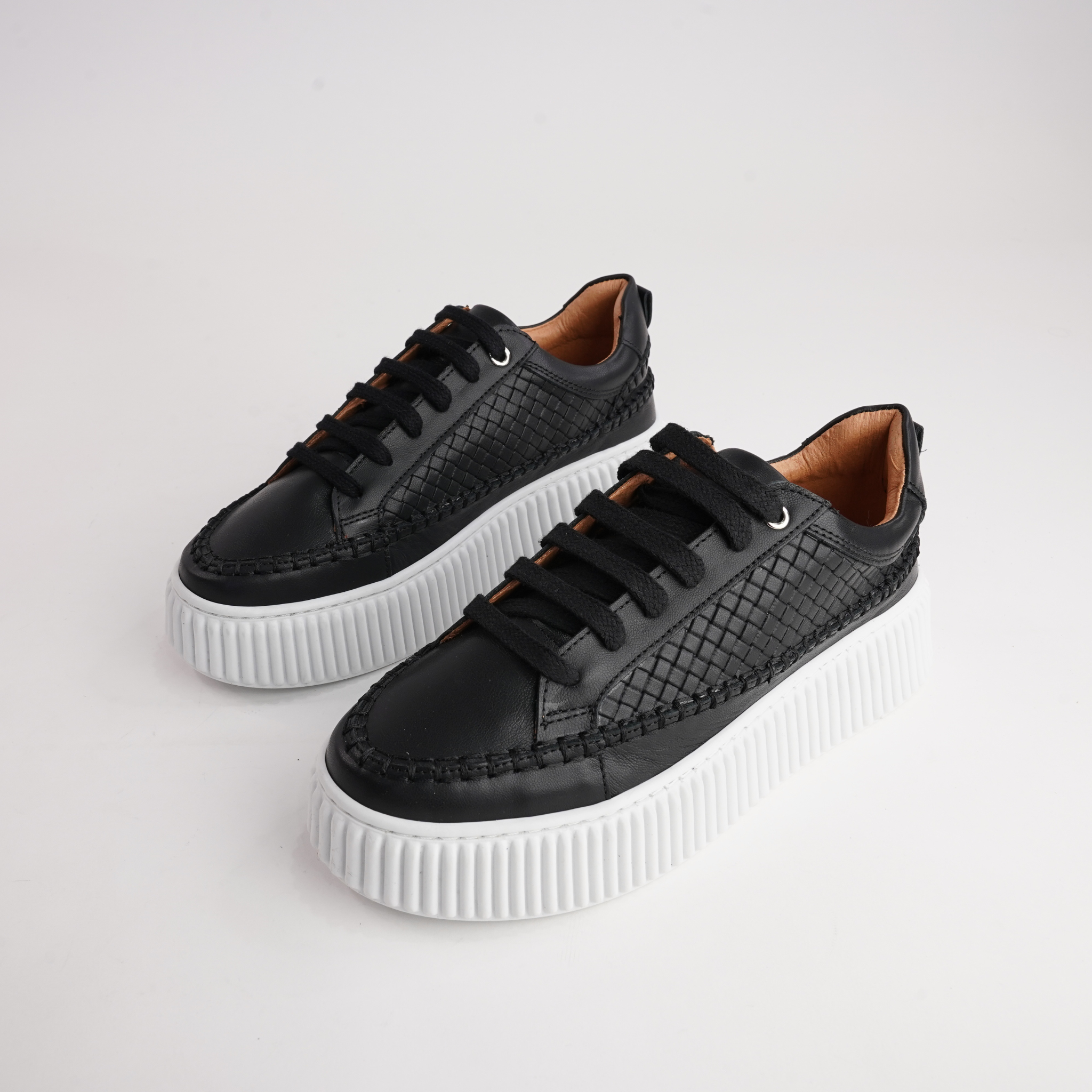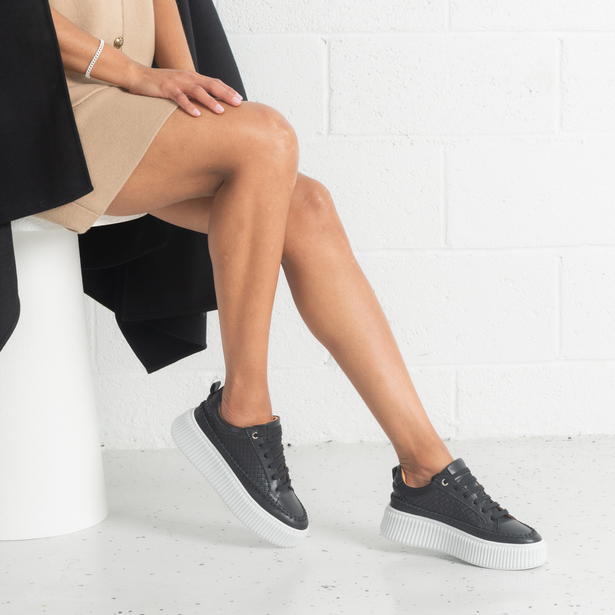 A modern spin on the classic sneaker, the Bowler Cameo Sneakers feature a beautifully woven leather upper, tonal stitching, and a sculpted platform sole for effortless style, whether you're dressing up or down.