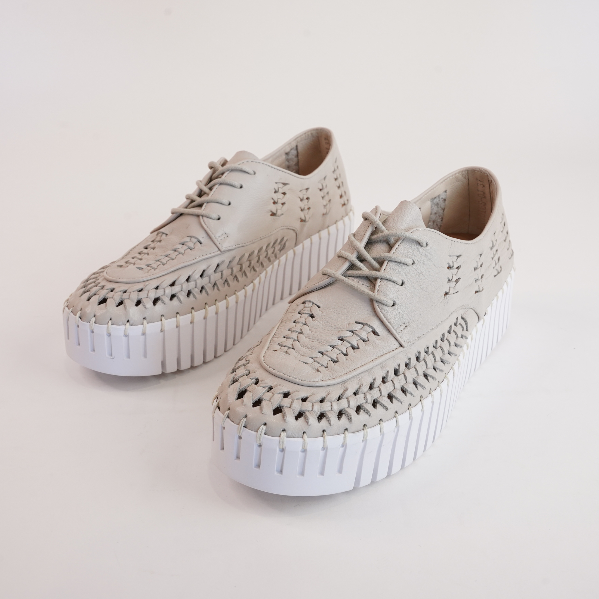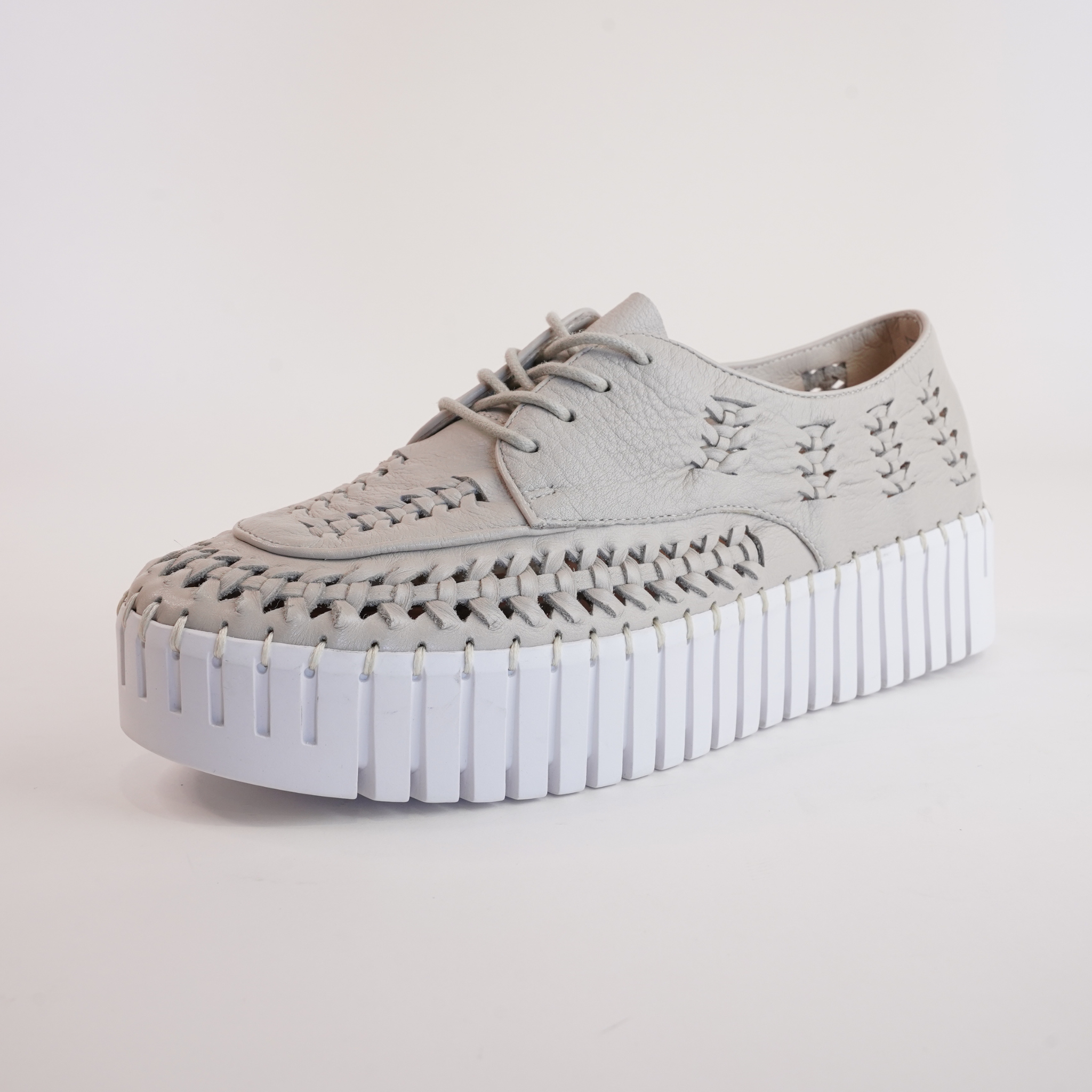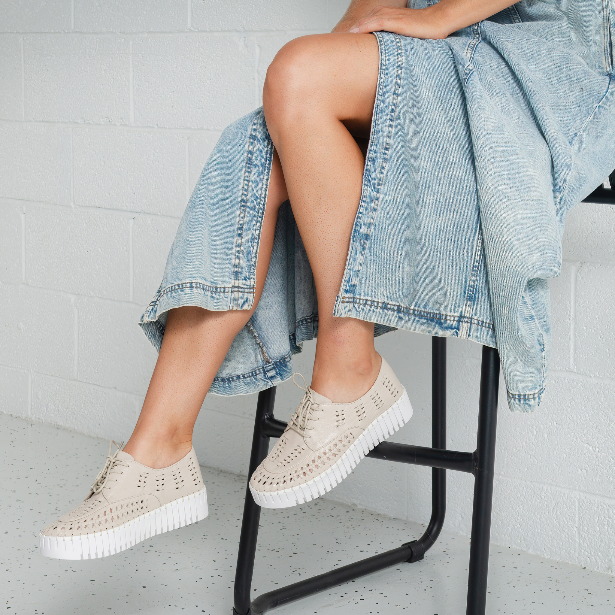 The Brodies Sneakers by Django & Juliette feature soft almond leather with a woven design, offering both style and comfort. The chunky ribbed platform sole adds height while ensuring all-day wearability.