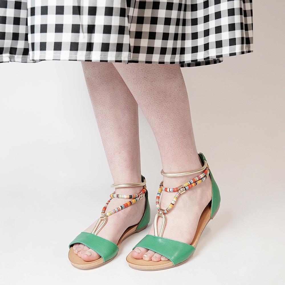 Jazmin by Django & Juliette is a gorgeous sandal with an elegant shape and a timeless colour. This comfortable sandal features beautiful beading, a peep-toe front and a back zipper. Pair Jazmin in emerald with your favourite summertime dress this season.