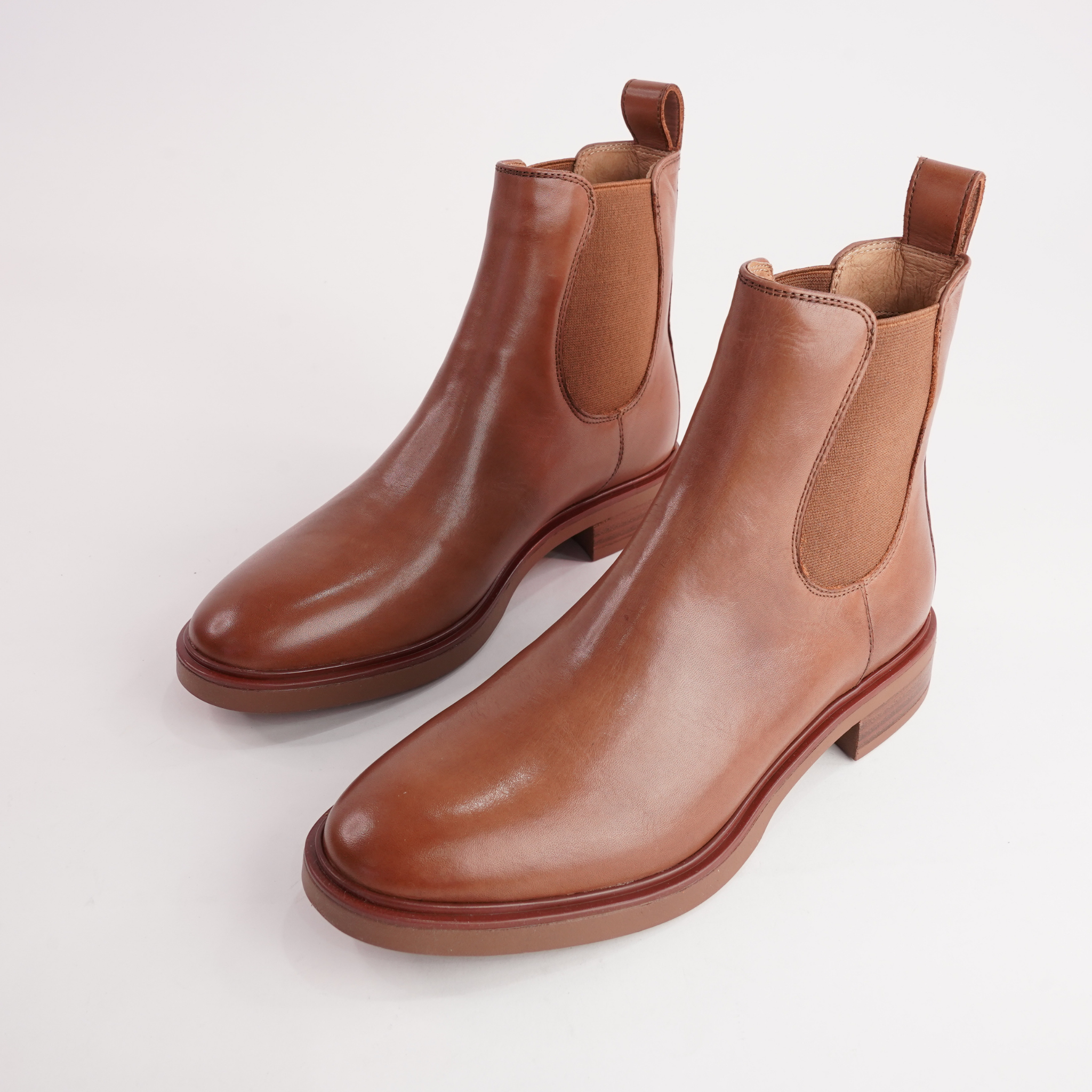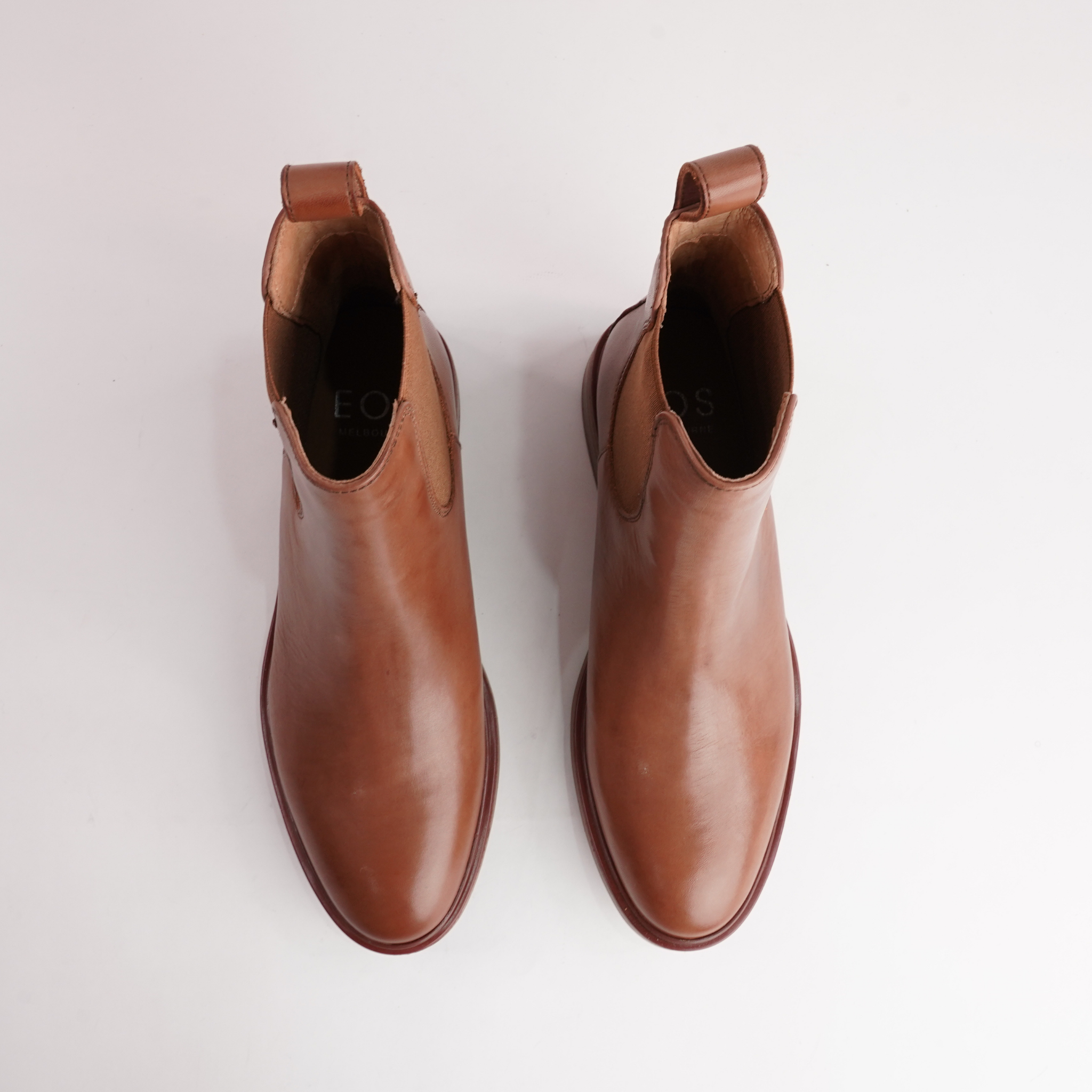 A true staple, the Blaik Ankle Boots by EOS Footwear offer effortless elegance. Made from smooth brandy leather with classic Chelsea side panels, these boots are designed to go with everything—from tailored trousers to off-duty denim.
