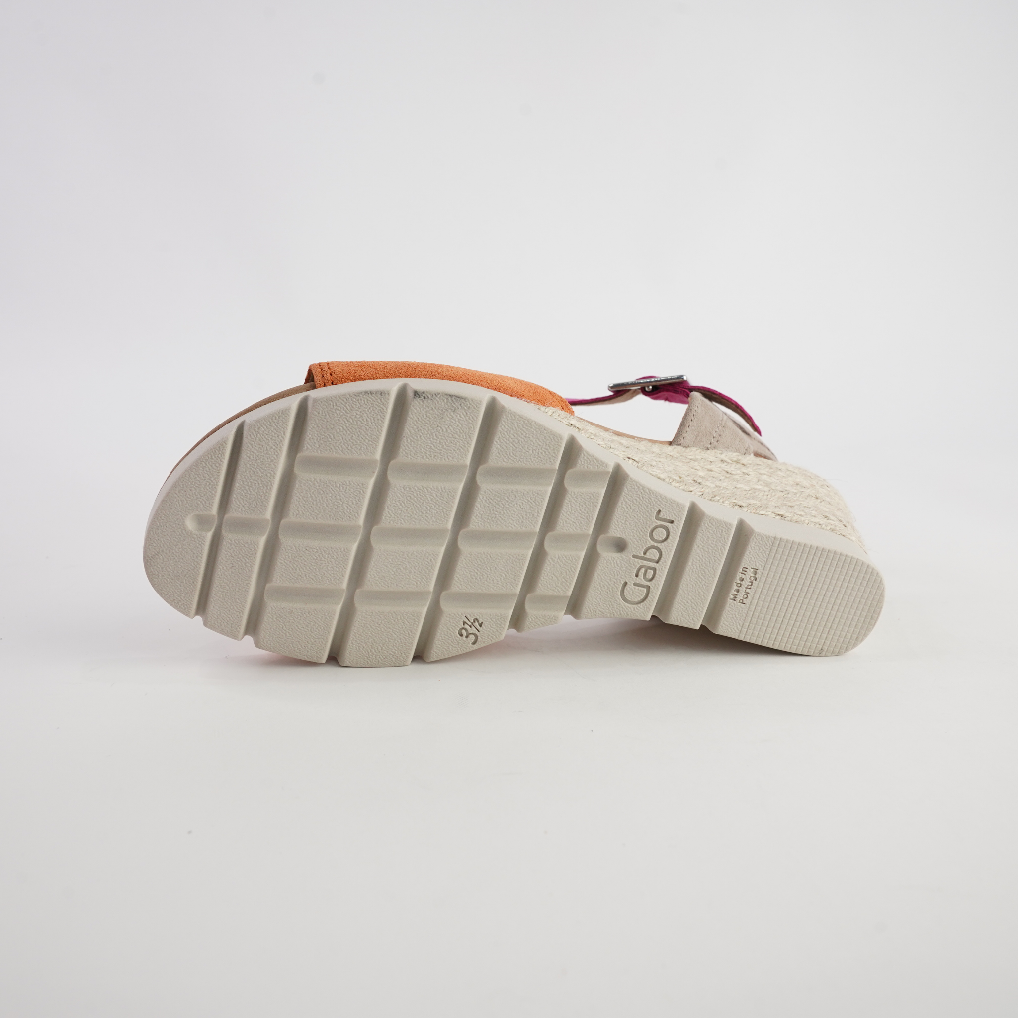 The Winifred Mandarin/ Pink Leather Sandals by Gabor bring together timeless elegance and everyday comfort. Designed with a subtle suede finish, these wedges feature a supportive cushioned footbed and a woven-effect wedge heel for a refined summer look. The adjustable ankle strap ensures a secure fit, while the lightweight sole provides flexibility and grip for all-day wear.