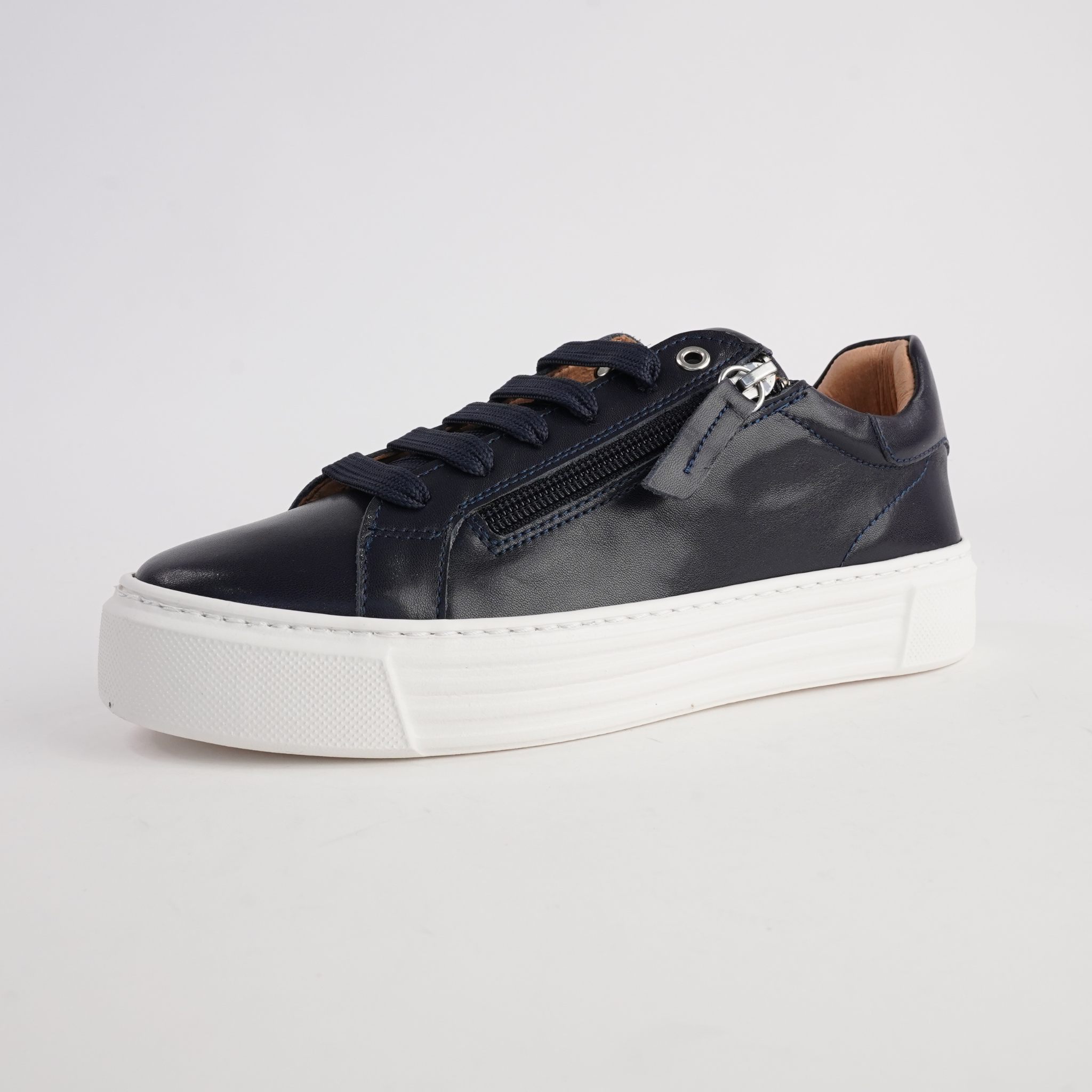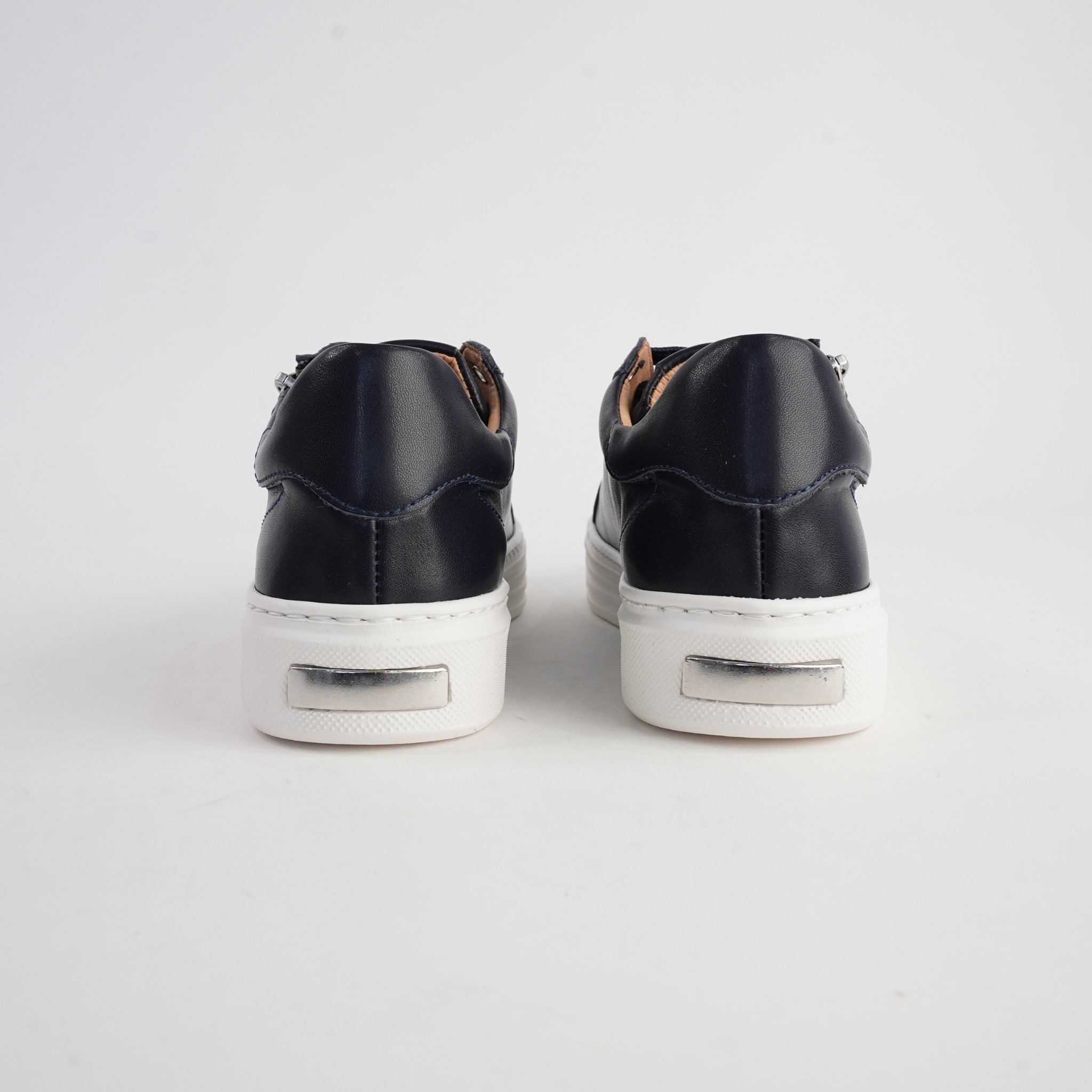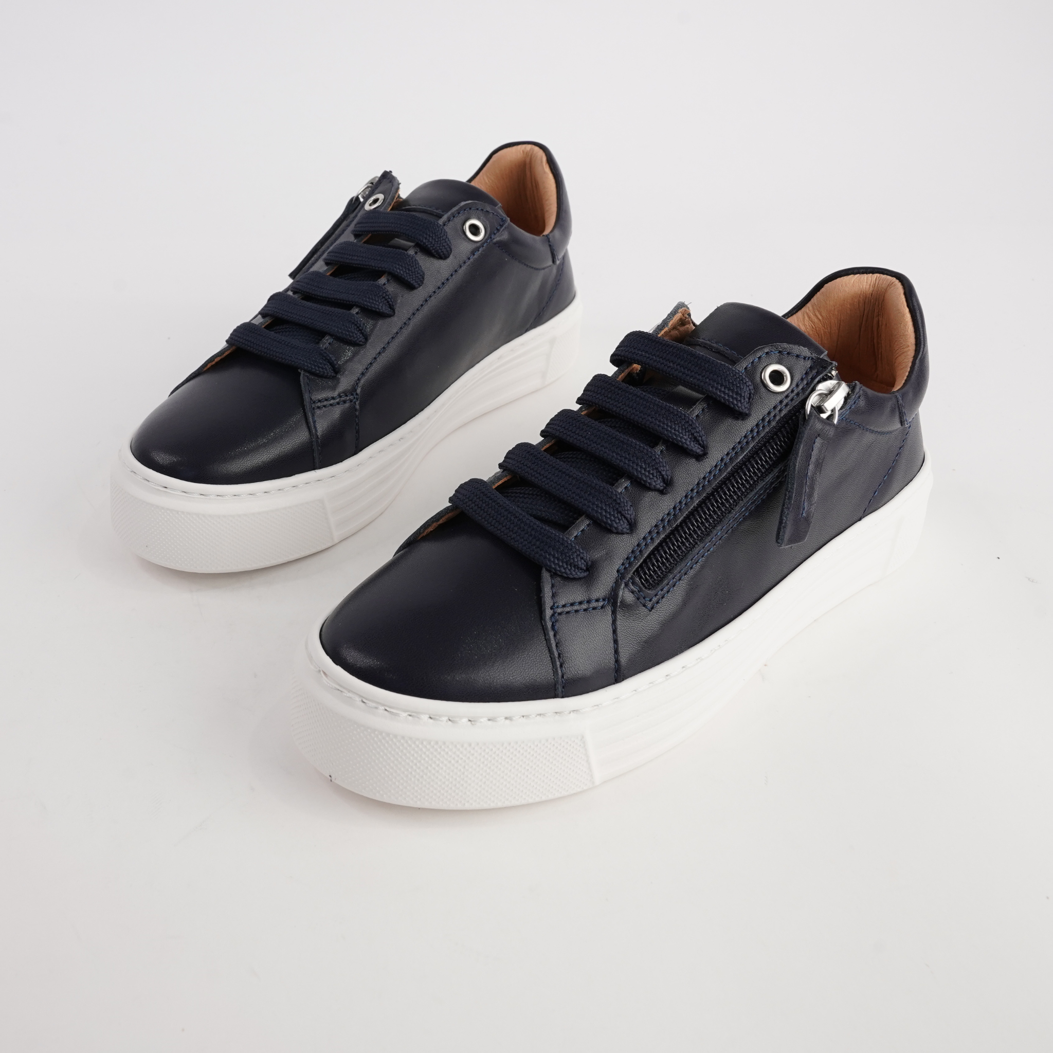 The Elly Sneakers by Sala are the perfect mix of everyday comfort and modern style. Crafted in smooth navy leather, these sneakers feature a classic lace-up front paired with a functional side zipper for effortless wear. The chunky white flatform sole adds a contemporary edge while giving you all-day cushioning and support. Ideal for elevating your casual looks, Elly pairs seamlessly with denim, skirts, or relaxed tailoring.