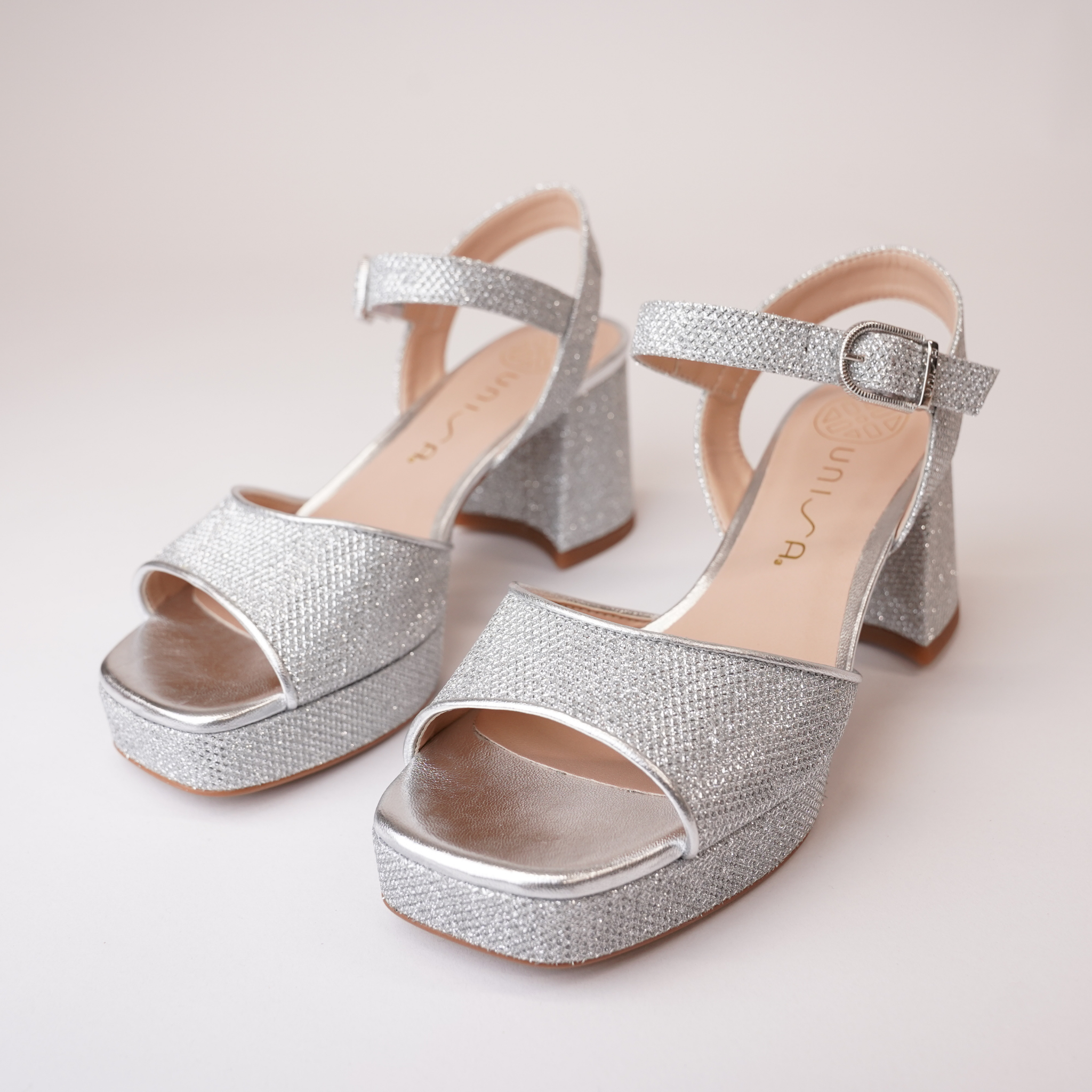 Add a touch of gold to your shoe collection with Ney Silver Heels by Unisa. These metallic heels are made in Spain with a 7.5cm block heel, perfect for adding a touch of glam to any outfit. The leather and synthetic lining ensures comfort while the synthetic sole adds durability.