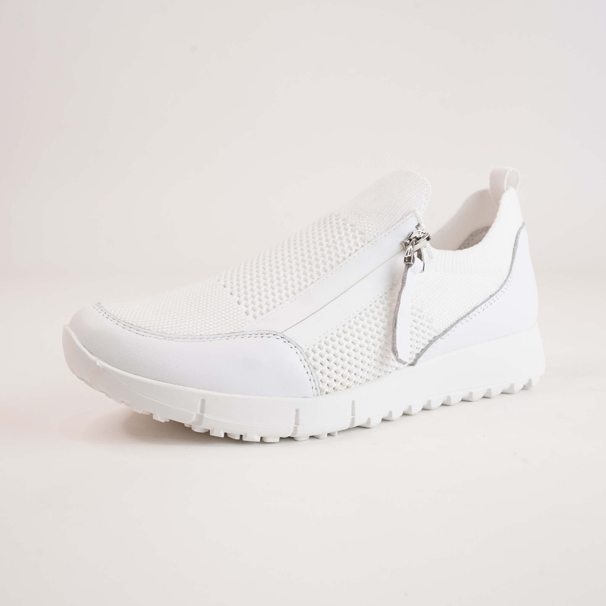 Slip into comfort and sporty style with the Jirels White Sneakers by Django & Juliette. Designed for easy everyday wear, these sneakers feature a breathable mesh upper with sleek leather overlays for a modern finish. The side zip makes them a breeze to get on and off, while the cushioned footbed and flexible sole ensure all-day support whether you're on the move or taking it slow