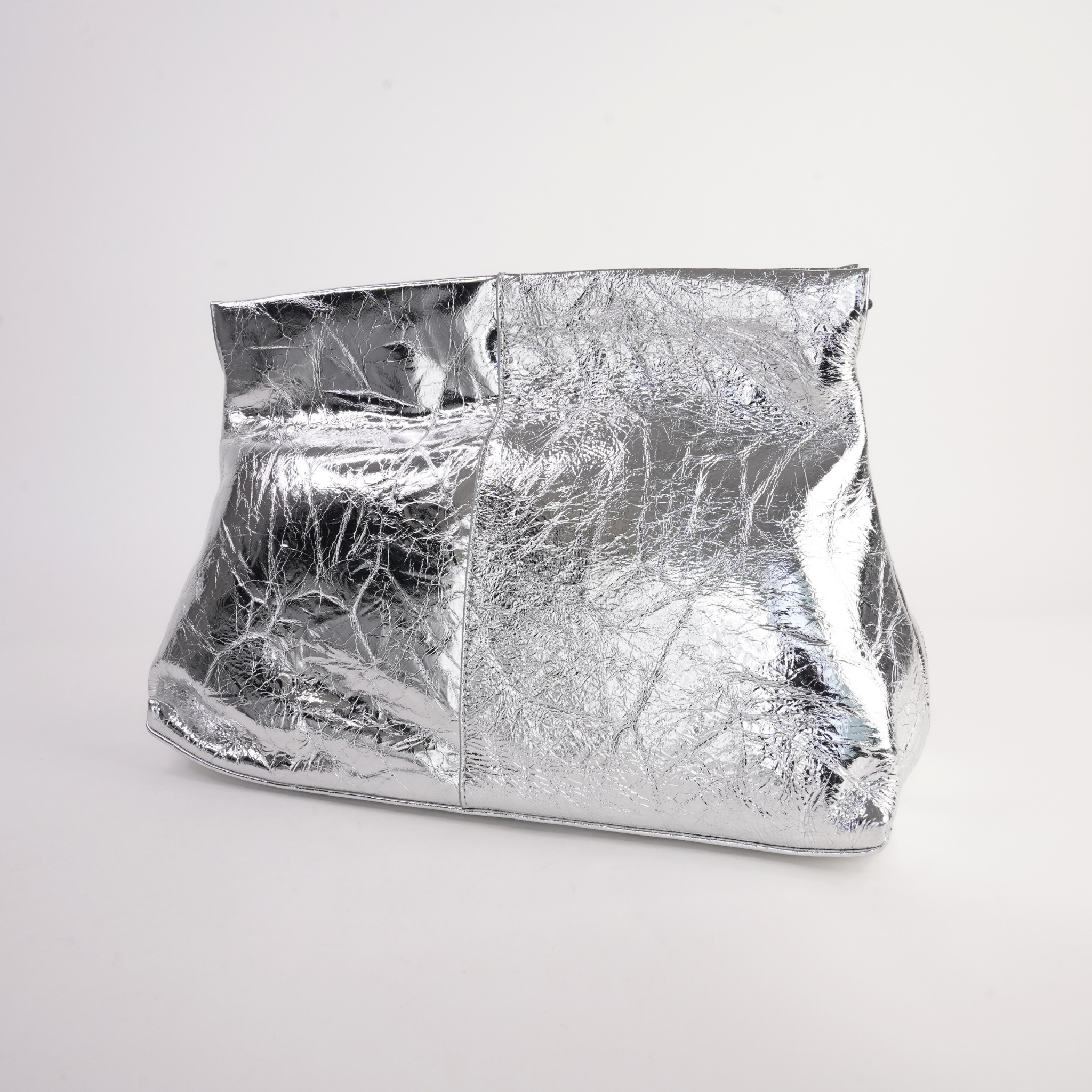 Aevie Metallic Crinkle Patent Leather Clutch