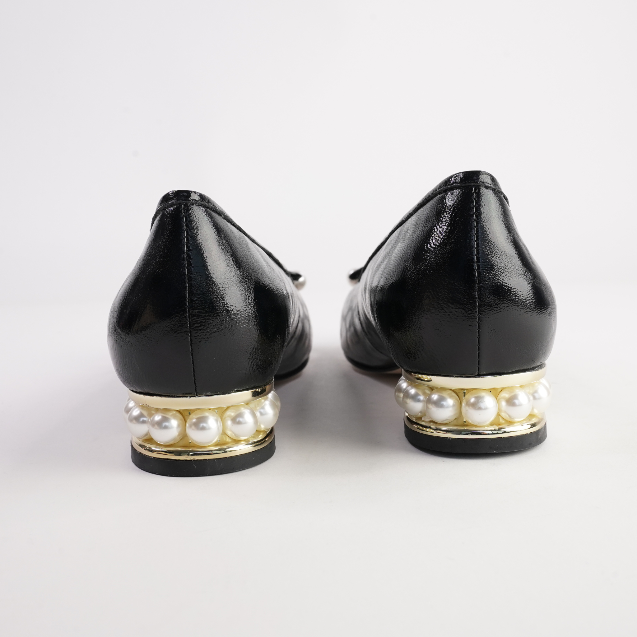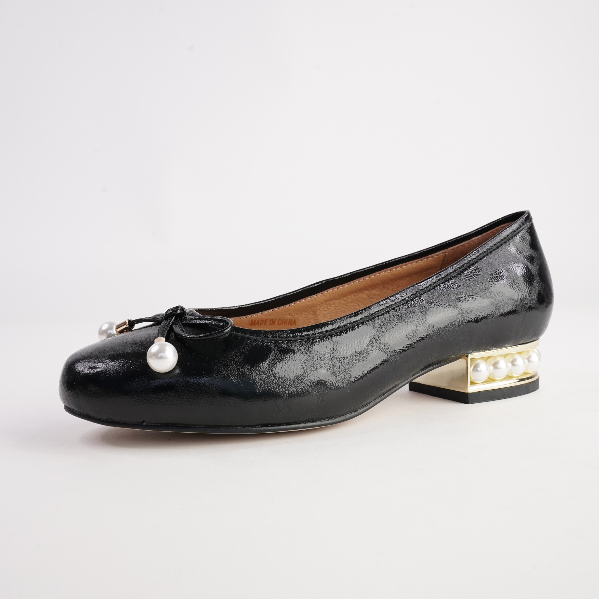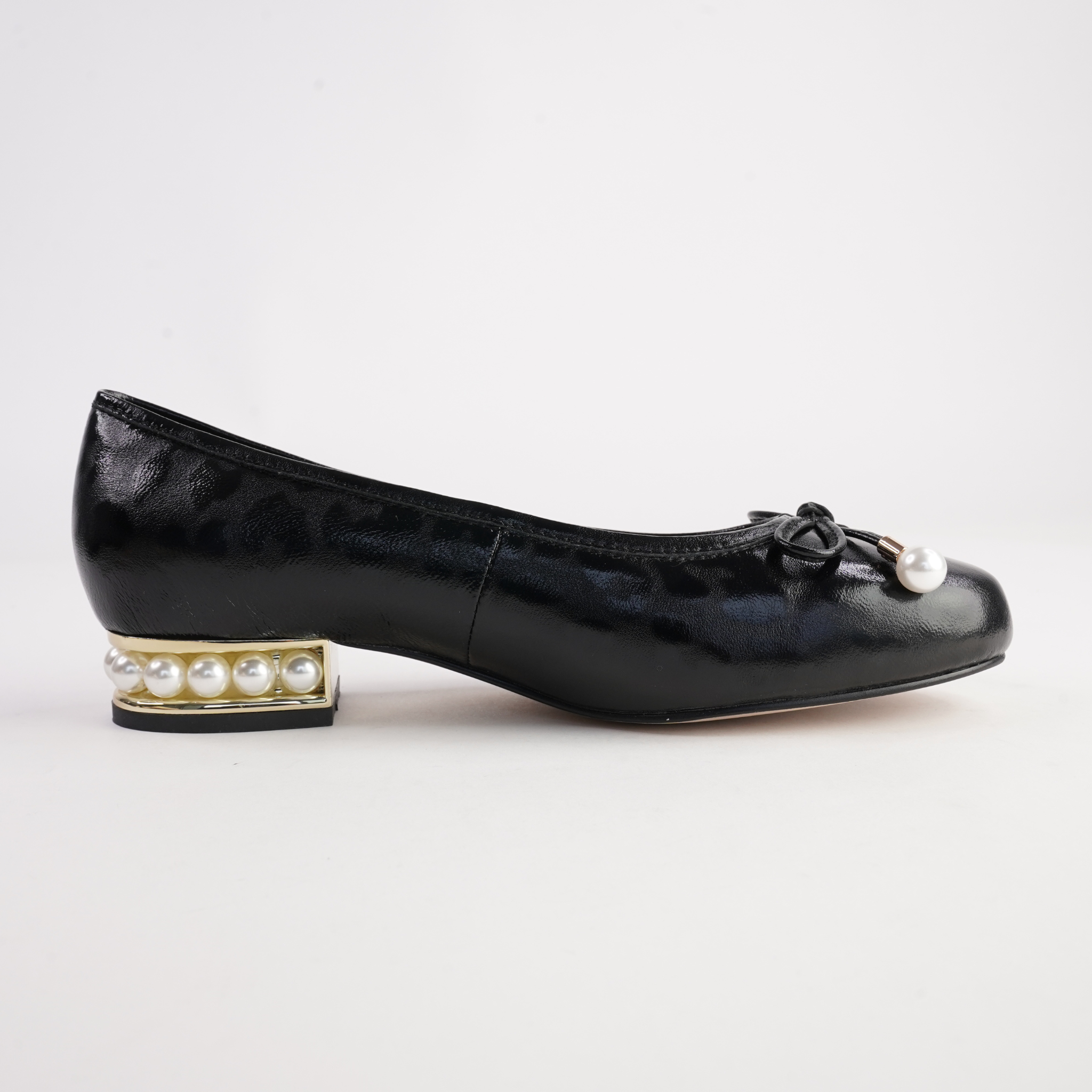 • Detail: Bow with pearl accents & pearl feature heel