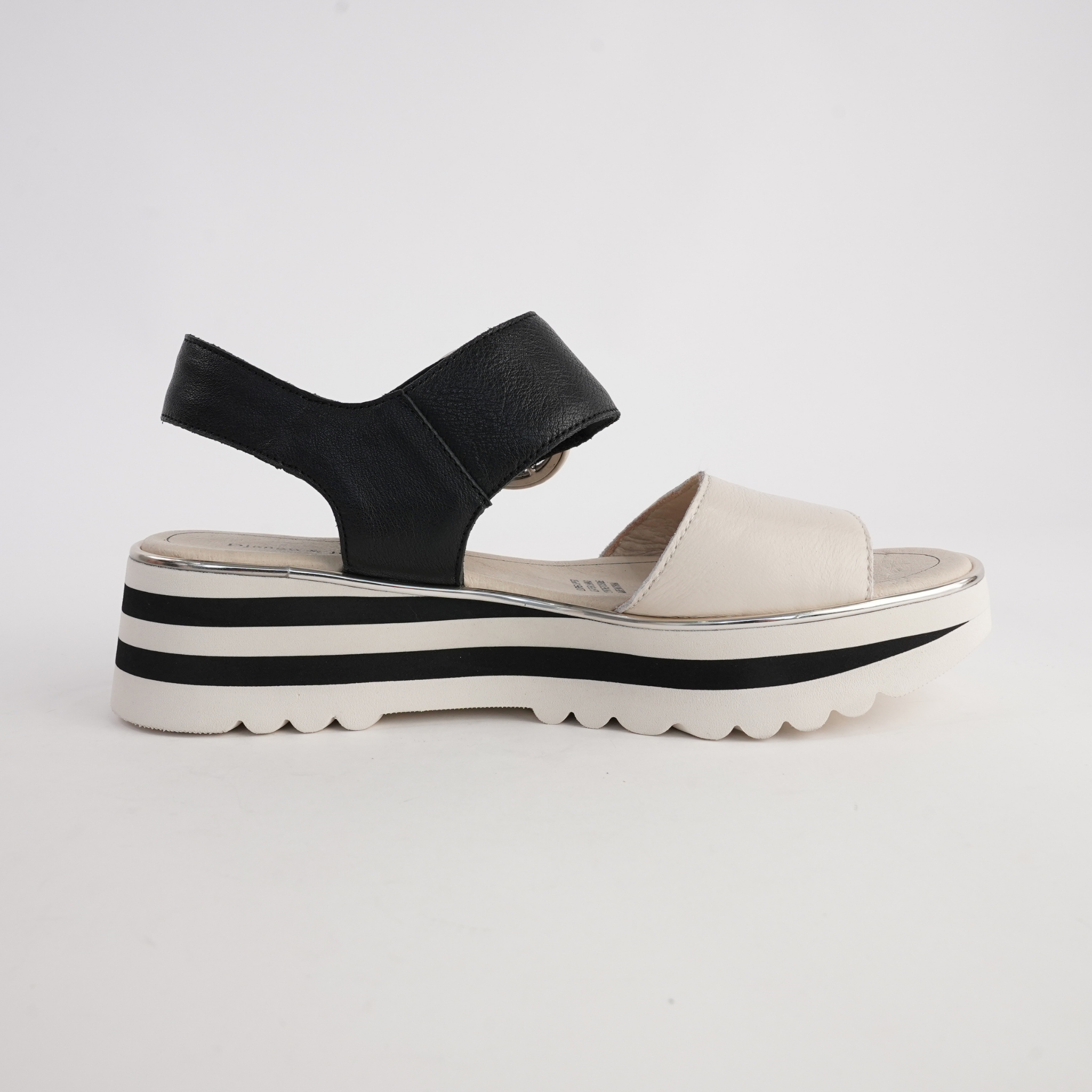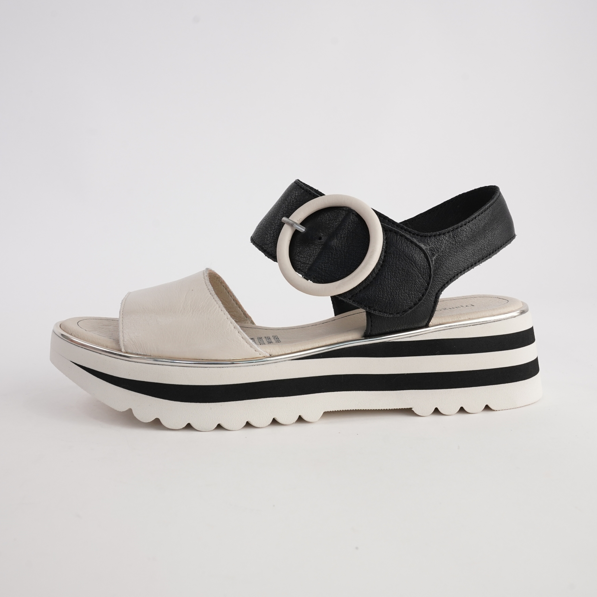 Bold, modern, and effortlessly chic – the Harlows Sandals by Django & Juliette are the ultimate statement piece for your warm-weather wardrobe. Crafted in contrasting milk and black leather, these sandals feature a striking oversized circular buckle for a contemporary edge. The striped flatform sole adds playful sophistication while ensuring all-day comfort and stability. Perfect for elevating casual outfits or pairing with summer dresses, Harlows brings standout style with a relaxed, wearable feel.