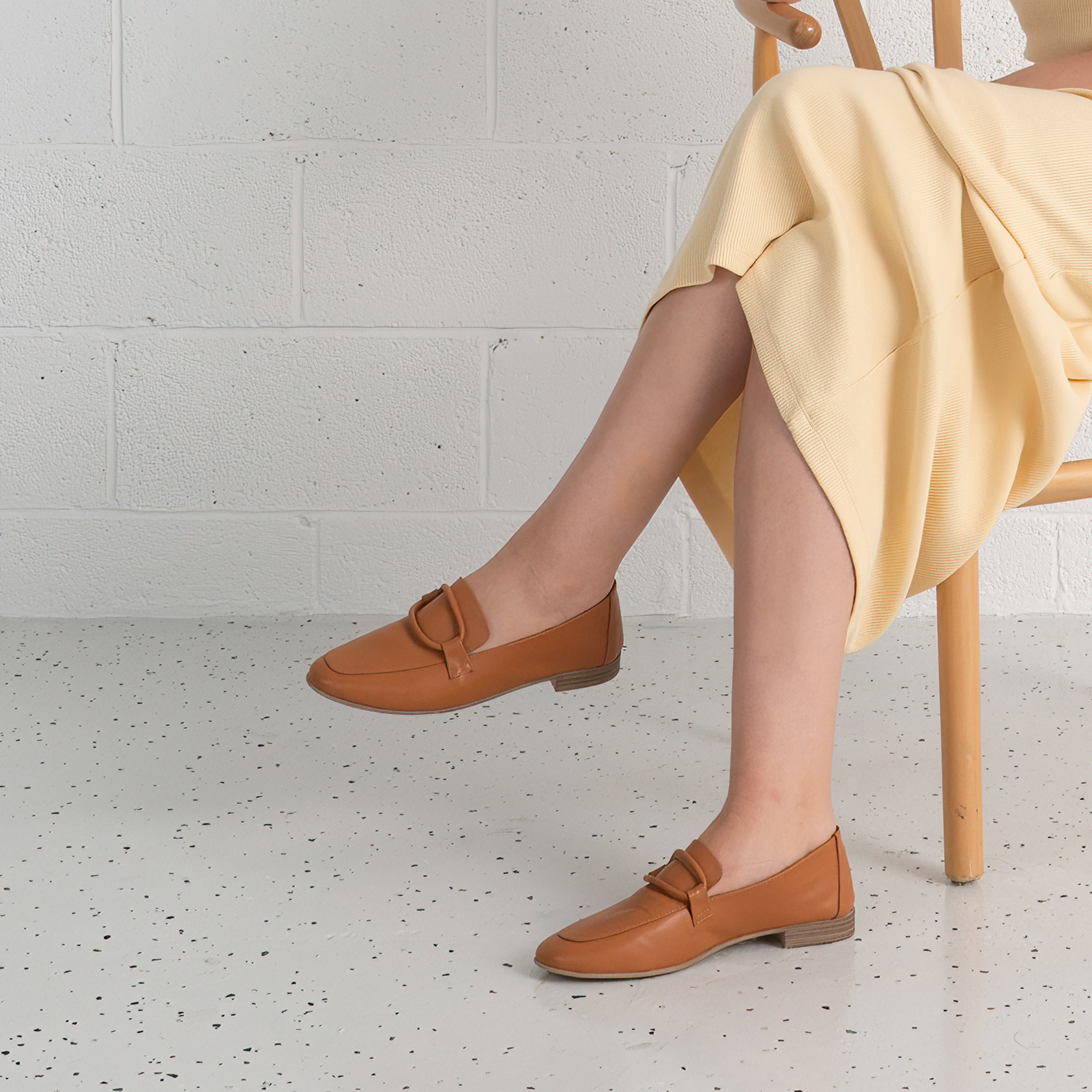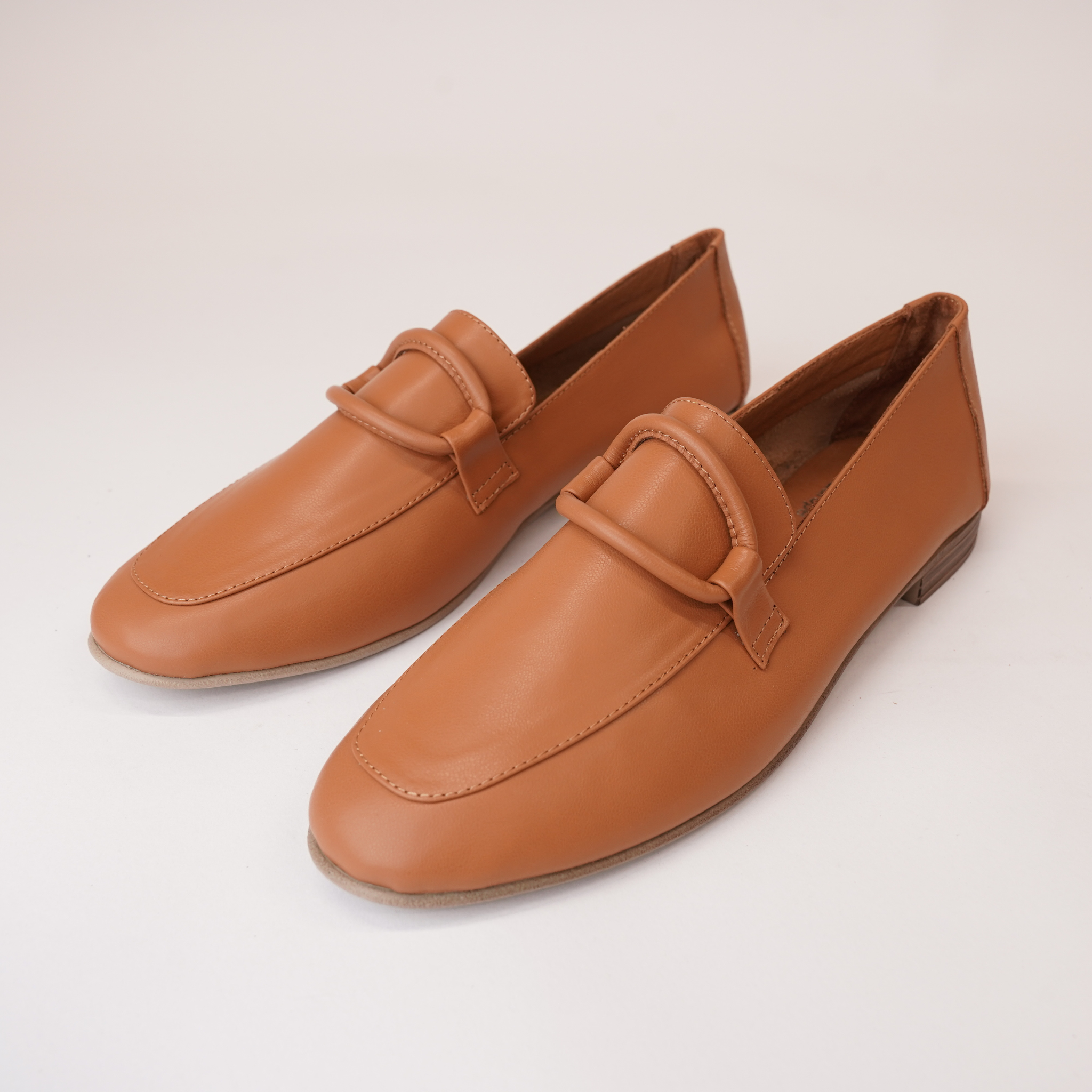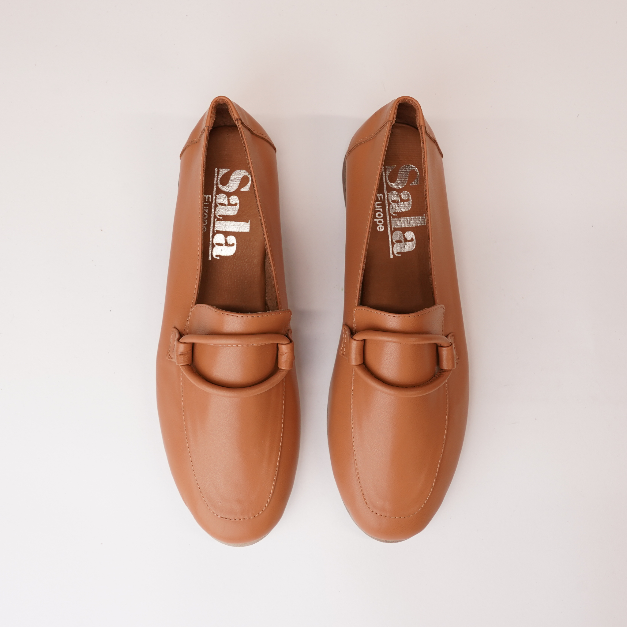 The Joanne Coconut Leather Loafers by Sala combine elegance and comfort. Crafted from premium tan leather, they feature a classic slip-on design with a chic loop detail. A soft leather lining, cushioned insole, and low stacked heel ensure all-day comfort. Versatile and stylish, these loafers pair effortlessly with casual or formal outfits.