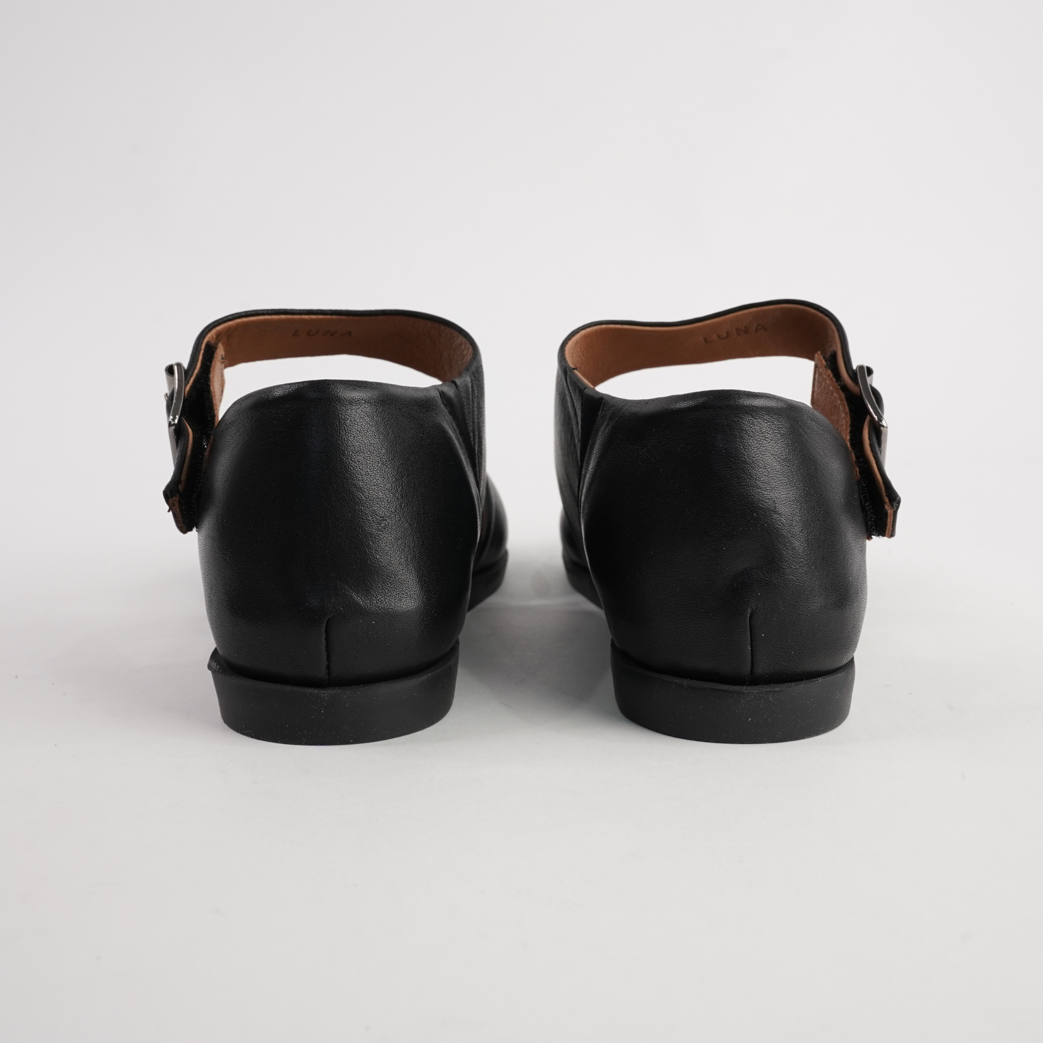 Simple, elegant, and effortlessly wearable — the Luna Sandals by Sala are a timeless addition to your warm-weather wardrobe. Crafted from soft black leather, they feature a minimalist single-strap design with a supportive enclosed heel and adjustable gold buckle for a secure fit. Designed for comfort and versatility, Luna’s cushioned leather footbed and lightweight sole make them perfect for everyday wear — whether you’re dressing up linen separates or keeping it casual with denim.