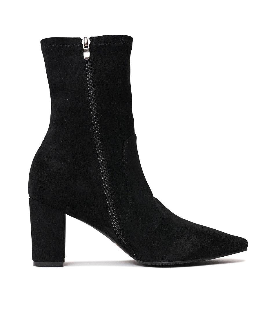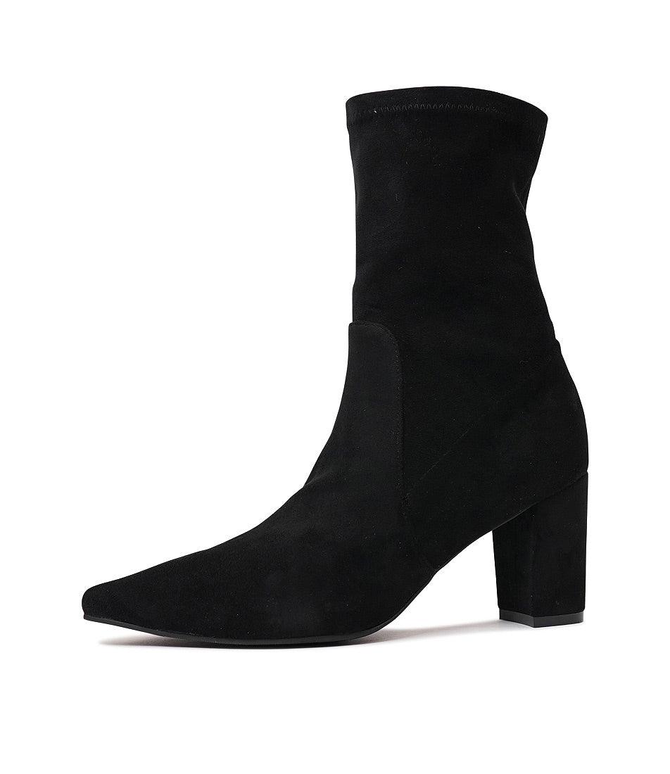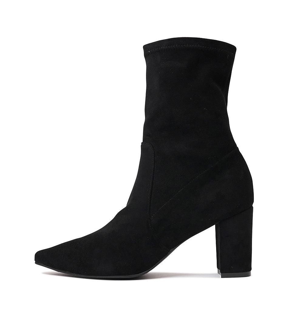Nider Black Stretch Microsuede Ankle Boots