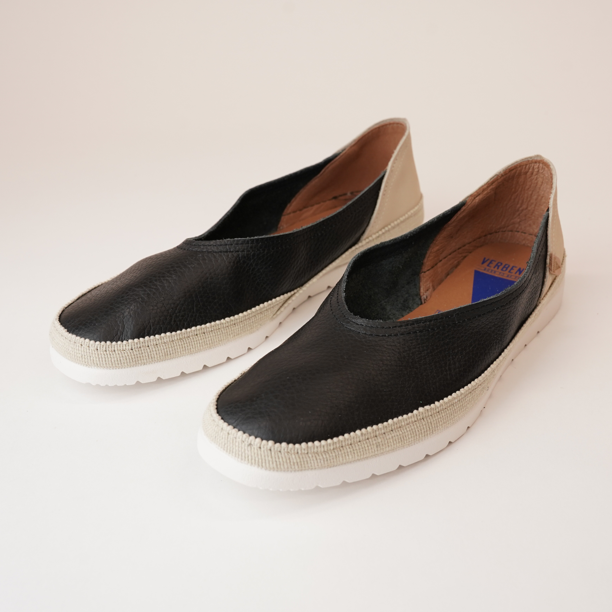 The Noelia Black Leather Espadrilles by Verbenas are the perfect blend of elegance and comfort. Crafted from premium black leather, these slip-on espadrilles feature a classic design with a modern touch. The jute-wrapped sole adds a traditional espadrille feel, while the cushioned insole ensures long-lasting comfort. With a flexible rubber outsole for added durability, these espadrilles are ideal for everyday wear, offering a sleek, versatile style that pairs effortlessly with any casual outfit.